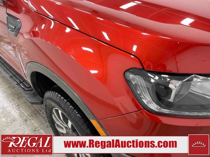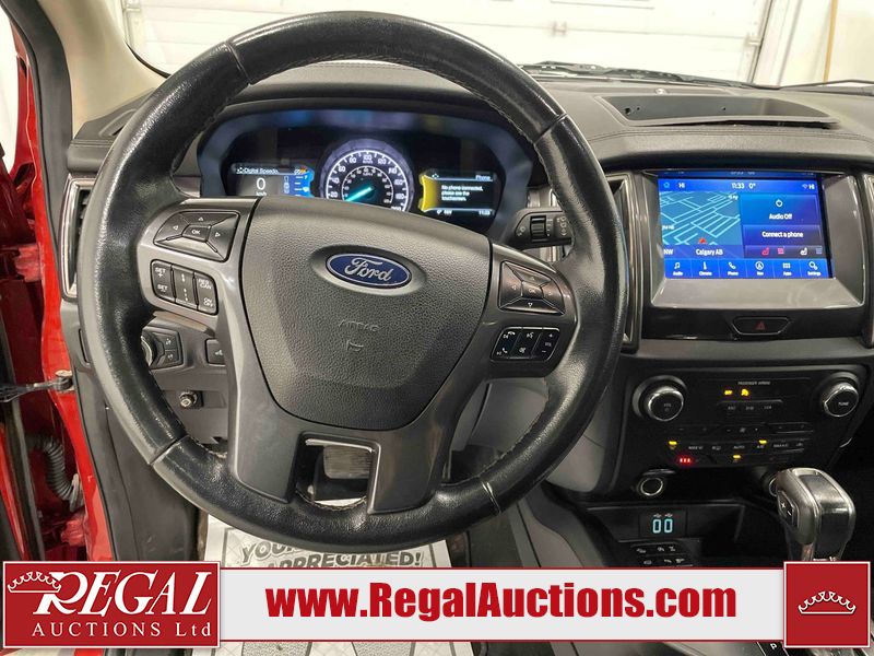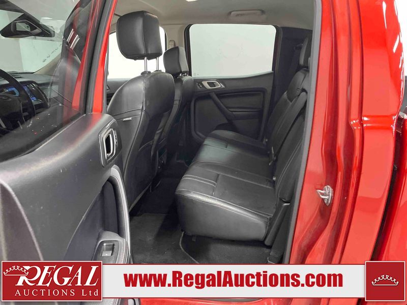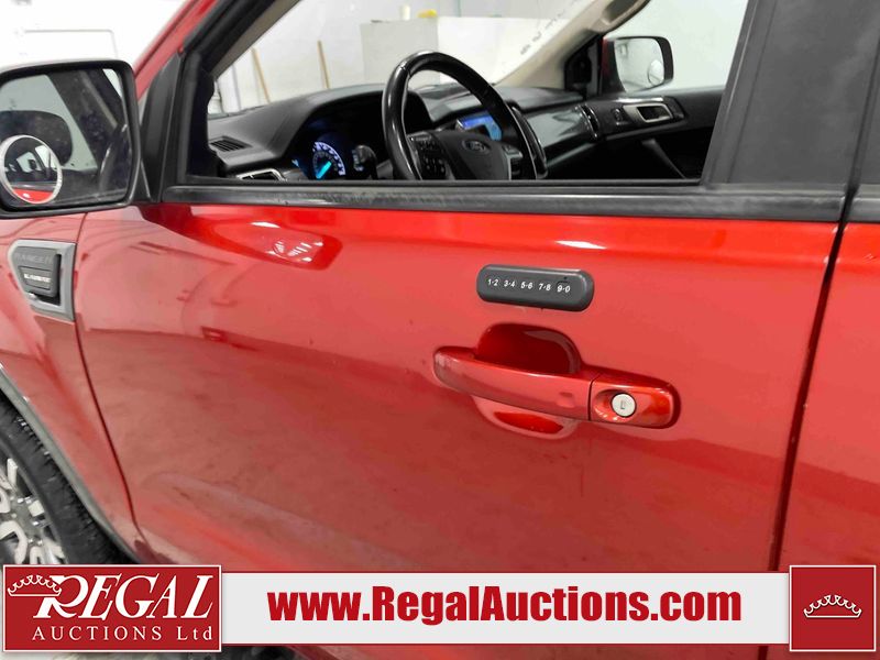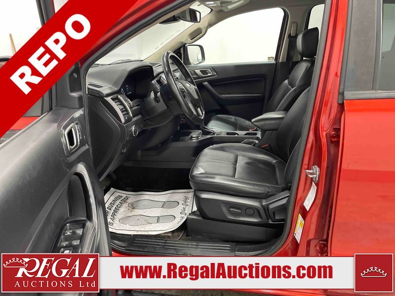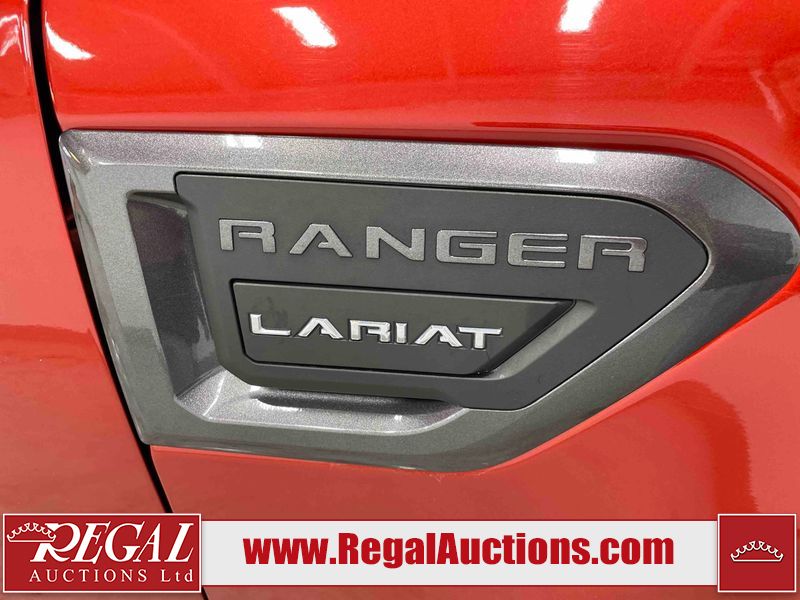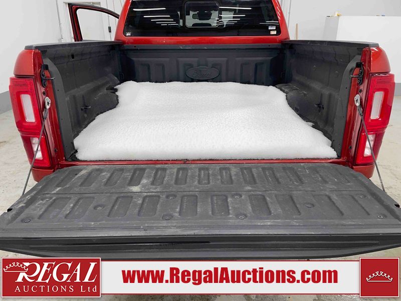 This 2019 FORD RANGER LARIAT SUPERCREW SWB 4WD 2.3L is powered by a 4 cylinder gasoline engine and an automatic transmission. It is equipped with four wheel drive. The truck has seats for 5 people. The truck has low mileage for its age. LARIAT is a very popular trim level. The vehicle has high value options including leather upholstery, power seats, heated seats, navigation, and a backup camera. The body looks to be in rough condition overall. There are a fair amount of chips on the front bumper. There are noteworthy scratches on the tail gate. There are scratches on the front bumper, hood, roof, left front fender, left front door, left rear door, left rear fender, rear bumper, right rear fender, right rear door, right front door, and right front fender. There is paint peeling on the front bumper and tail gate. There are minor chips on the grille, hood, roof, left front fender, left front door, left rear door, left rear fender, rear bumper, tail gate, right rear fender, right rear door, right front door, and right front fender. There is dent damage on the left rear fender and right rear fender. There is very minor dent damage in a few areas around the body. There is adhesive on the left rear, right rear and right front doors. The interior looks to be in rough condition overall. The dashboard is broken. The driver's seat, passenger seat, and rear seats are worn. The carpet is dirty. The roof liner is dirty. The plastic tray in the dashboard is lifting and broken. The windshield is cracked. All of the tires have lots of tread remaining.