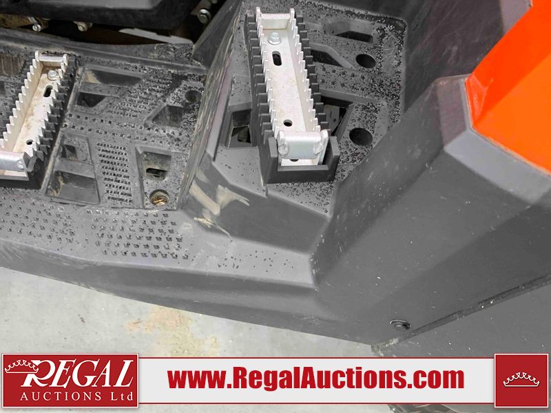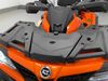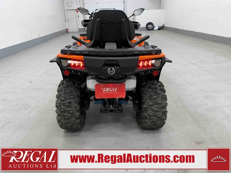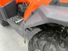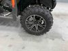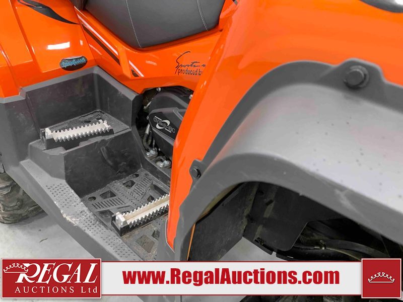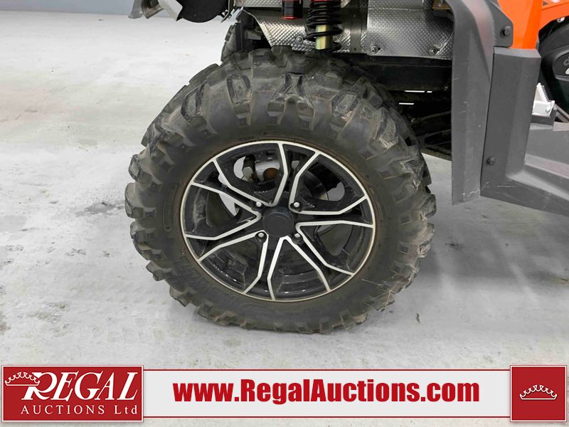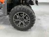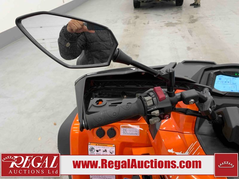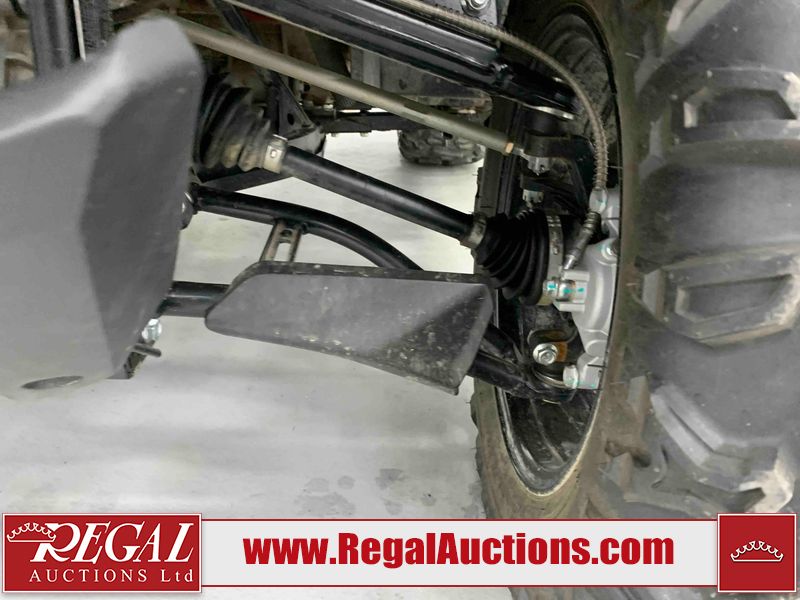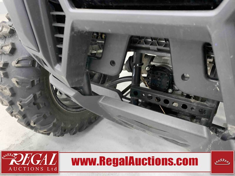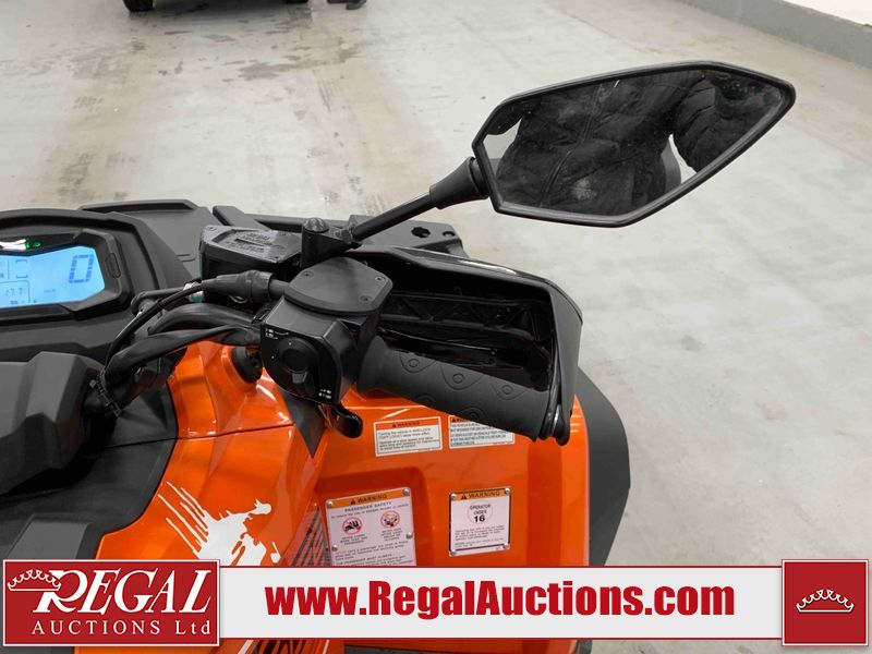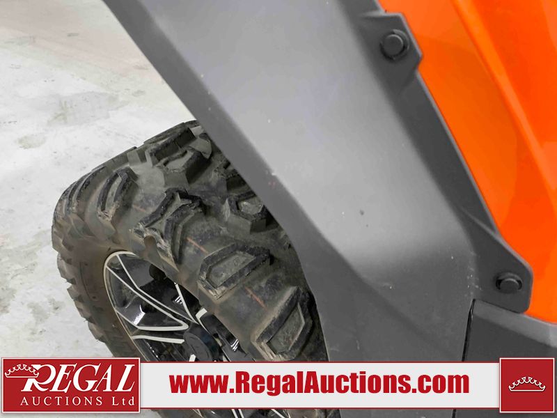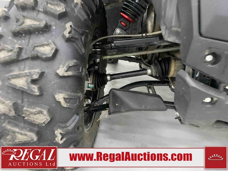 This ATV is a 2022 CFMoto Cforce 800 model. The odometer shows 286 km and 17 engine hours. The seat has scuffs. The crash bar is chipped. All plastics are showing scratches and scuffs. The left front fender is gouged. The rear compartment handle is broken. Some decals are peeling. This unit starts and runs without a boost. This unit is powered by a 800 cc V twin four stroke liquid cooled engine and a automatic transmission with a shaft final drive. The tires are mounted to all rims and appear to be in good enough condition for use. This unit is equipped with a 2WD/4WD selector.