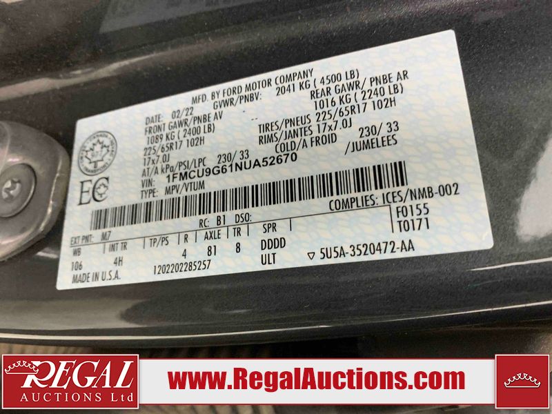 This 2022 FORD ESCAPE SE 4D UTILITY AWD 1.5L is powered by a turbocharged 3 cylinder gasoline engine and an automatic transmission. It is equipped with four wheel drive. The SUV has seats for 5 people. The SUV has high mileage for its age. The vehicle has high value options including a backup camera. The body looks to be in fair condition overall. The front bumper is cracked. The grille is cracked. There are incidental chips on the hood, left front fender, and right front door. There are very minor scratches in many areas around the body. There is very minor dent damage in many areas around the body. There are very minor chips in many areas around the body. The interior looks to be in fair condition overall. The passenger seat, rear seats, and doors are stained. The carpet is dirty. The windshield is chipped. The driver's side front tire is nearly bald and should be replaced. The other tires are worn.