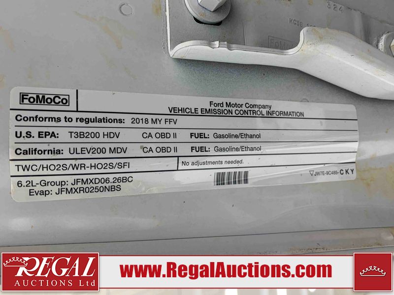 This 2018 FORD F-250 SD XLT CREW CAB 4WD is powered by a 6.2L V8 gasoline engine and an automatic transmission. It is equipped with four-wheel drive. The truck has seats for 6 people. The mileage is average considering the truck's age. The vehicle has high-value options including power seats and a backup camera. The Check Engine light is on. The body looks to be in good condition overall. There is moderate dent damage on the right rear fender and right front door. There are minimal chips on the front bumper. There is slight dent damage on the left rear door. There are very minor chips in some areas around the body. There are very minor scratches in some areas around the body. The interior looks to be in good condition overall. There are cigarette burns on the driver's seat. There are slight stained on the rear seats. The windshield looks to be in good condition. All of the tires have lots of tread remaining. This truck is being sold by an automotive broker. The vehicle will be sold with the following declarations: Out of Province - ON (See Footnote 1). Footnotes: 1) The vehicle's last registered jurisdiction is Ontario. The purchaser must have the vehicle undergo and pass an Out of Province inspection before it can be registered in Alberta. Regal Auctions Ltd. makes no guarantee or warranty, either express or implied, with respect to the data provided in this report. The information has been provided from the consignor and from sources generally believed to be reliable, however the accuracy of this information cannot be guaranteed by Regal Auctions.
