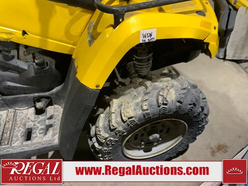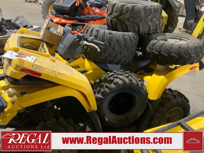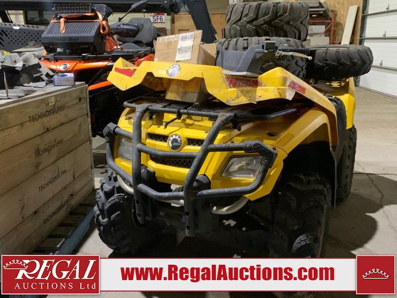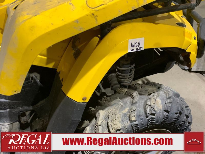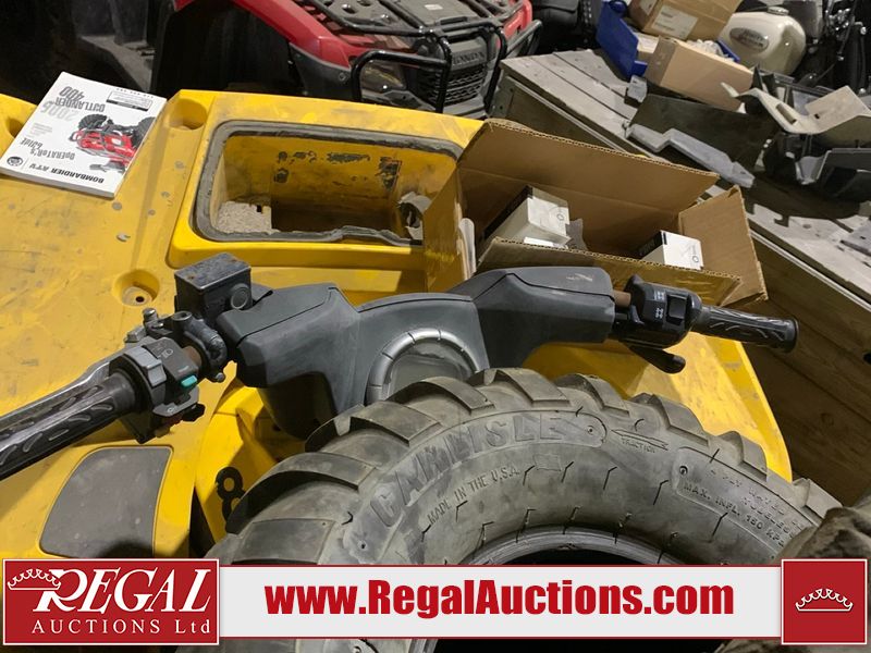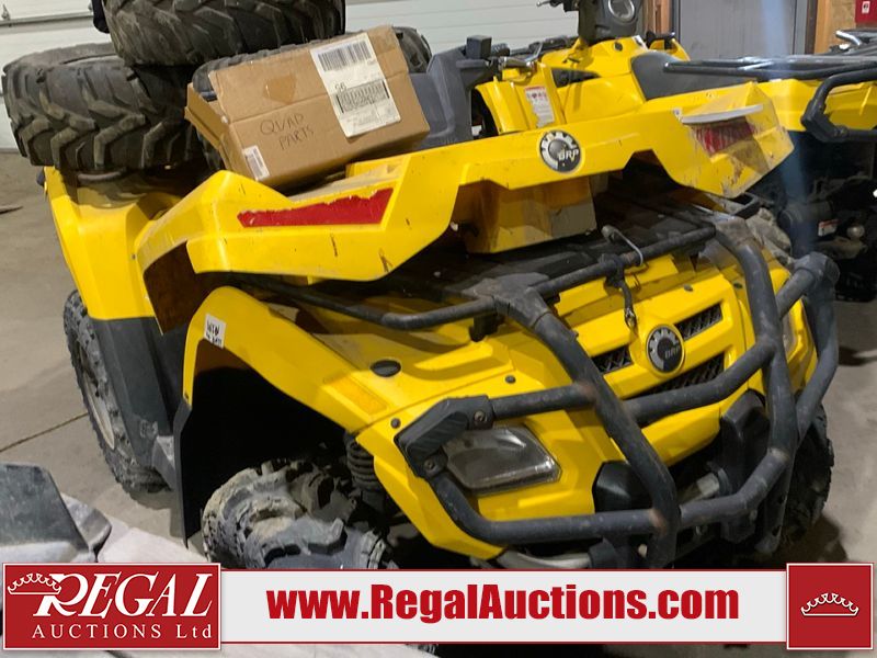 This ATV is a 2006 Can-am Bombardier Outlander 400. The odometer and engine hours cannot be confirmed. This unit is missing the vin sticker, and will require an assigned vin. This unit does not have keys. This unit is dirty. Most panels show chips, scratches and scuffs. Both front and rear crash bars are showing surface rust. The front crash bar plastic trim is separating. The right plastic trim is melted. Some decals are peeling. It is powered by 400 CC single cylinder four stroke liquid cooled engine with a continuously variable transmission with a shaft final drive. The tires appeared to be in good enough condition for use. The unit is missing the battery. It is equipped with a 4wd/2wd selector, ball hitch, and cargo rack. There is an extra set of tires on rims, 3 rims. Miscellaneous parts, spark plugs, oil filter, gasket, and hardware. It is equipped with four wheel drive. The vehicle has mechanical problems. The engine doesn't start and the vehicle is not drivable. It will have to be towed. (See Footnote 1) This atv is being sold by the fleet department of a corporation or government body. The vehicle will be sold with the following declarations: Fleet Vehicle (See Footnote 2). Footnotes: 1) We've identified some mechanical problems with the vehicle. However, the vehicle has not undergone a mechanical inspection and our findings are not to be considered a complete evaluation of the vehicle's mechanical condition. Review our Buyer Protection Policy to see how Regal Auctions protects you from undisclosed mechanical problems. 2) This unit is being sold by a corporation or government body. Regal Auctions Ltd. makes no guarantee or warranty, either express or implied, with respect to the data provided in this report. The information has been provided from the consignor and from sources generally believed to be reliable, however the accuracy of this information cannot be guaranteed by Regal Auctions.