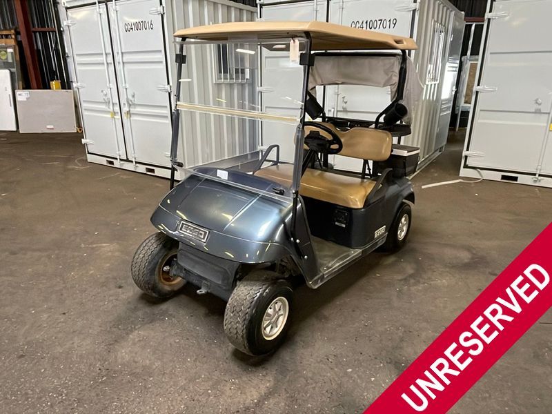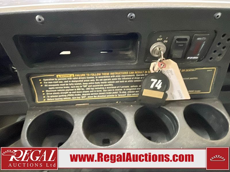 This unit is a 2011 EZ-GO TXTE 48V model club car. Its maximum payload capacity is 800 LBS. The interior is dirty. The leather is fading. Exterior plastics are showing scratches and scuffs. This unit starts and runs. This unit is powered by six 8 Volt batteries. The tires are mounted to steel rims and appear to be in good enough condition for use.