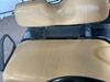 This unit is a 2011 EZ-GO TXTE 48V model club car. Its maximum payload capacity is 800 LBS. The interior is dirty. The leather is fading. Exterior plastics are showing scratches and scuffs. The rear plastics have peeling paint. This unit starts and runs. This unit is powered by six 8 Volt batteries. The tires are mounted to steel rims and appear to be in good enough condition for use.