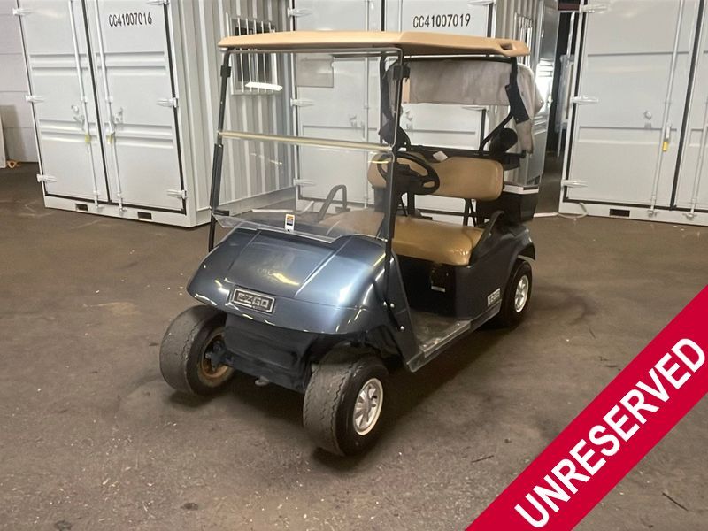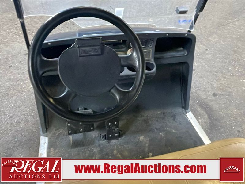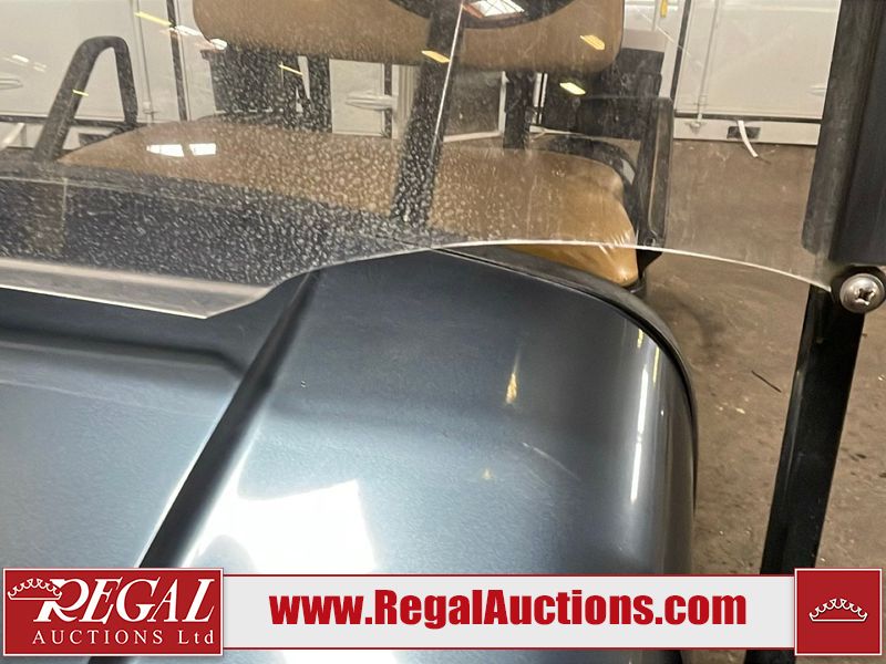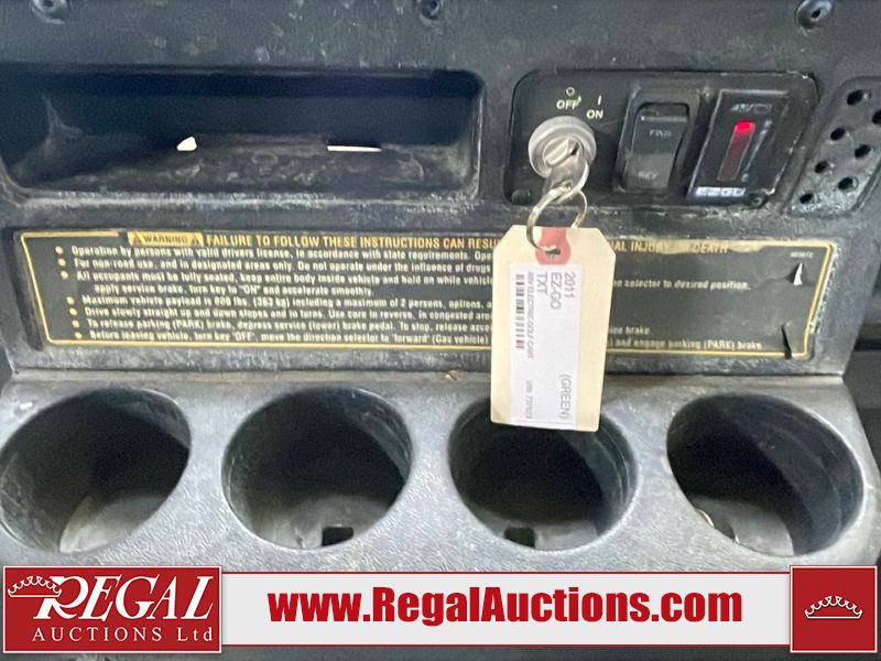 This unit is a 2011 EZ-GO TXTE 48V model club car. Its maximum payload capacity is 800 LBS. The interior is dirty. The leather is fading. The seat is cracking. Exterior plastics are showing scratches and scuffs. The windscreen is broken. This unit starts and runs. This unit is powered by six 8 Volt batteries. The tires are mounted to steel rims and appear to be in good enough condition for use.