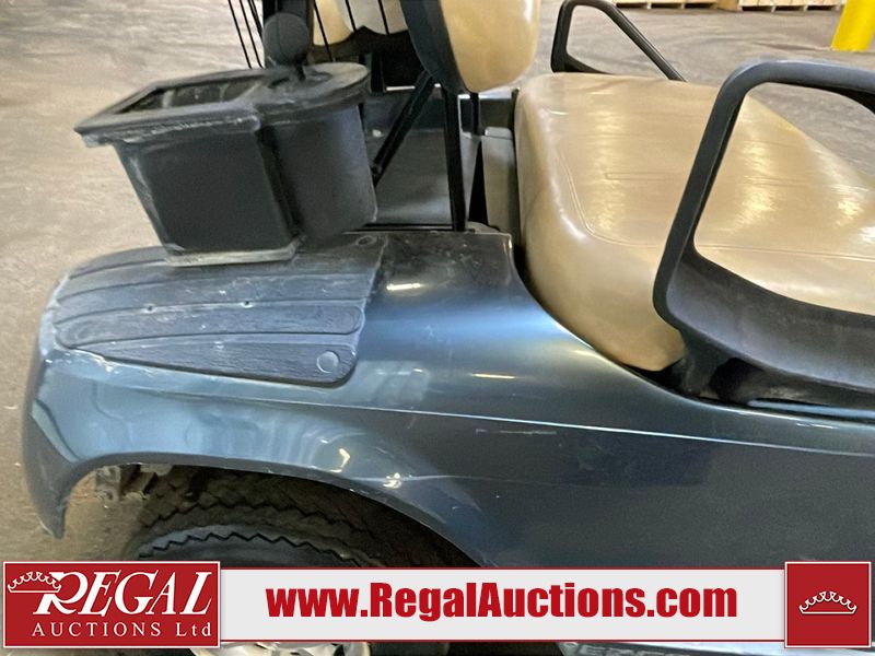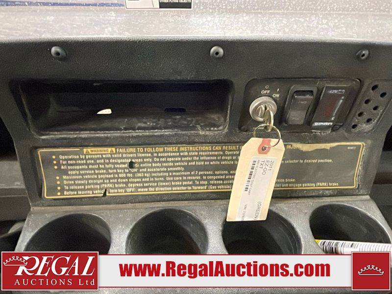 This unit is a 2011 EZ-GO TXTE 48V model club car. Its maximum payload capacity is 800 LBS. The interior is dirty. The leather is fading. Exterior plastics are showing scratches and scuffs. This unit starts and runs. This unit is powered by six 8 Volt batteries. The tires are mounted to steel rims and appear to be in good enough condition for use.