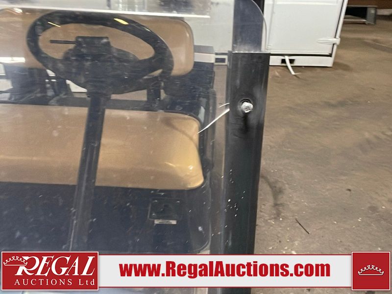This unit is a 2011 EZ-GO TXTE 48V model club car. Its maximum payload capacity is 800 LBS. The interior is dirty. The leather is fading. Exterior plastics are showing scratches and scuffs. The windscreen is cracked. This unit starts and runs. This unit is powered by six 8 Volt batteries. The tires are mounted to steel rims and appear to be in good enough condition for use.