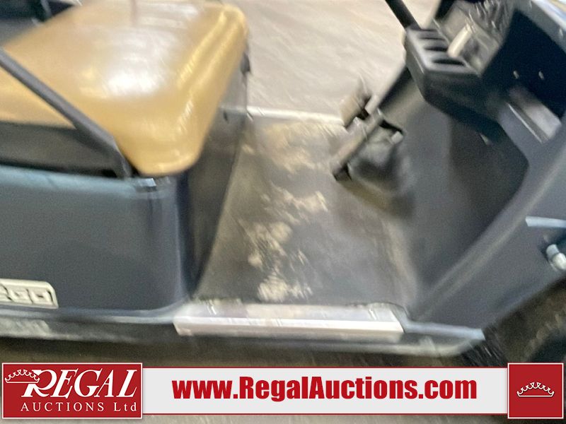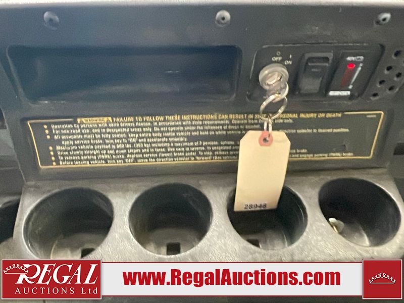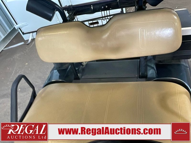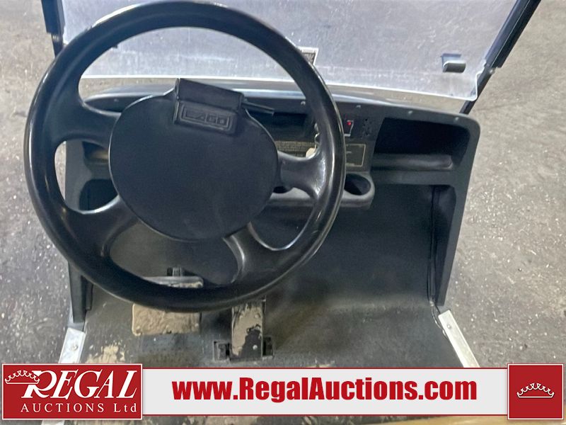 This unit is a 2011 EZ-GO TXTE 48V model club car. Its maximum payload capacity is 800 LBS. The interior is dirty. The leather is fading. The seat is cracking. Exterior plastics are showing scratches and scuffs. This unit starts and runs. This unit is powered by six 8 Volt batteries. The tires are mounted to steel rims and appear to be in good enough condition for use.