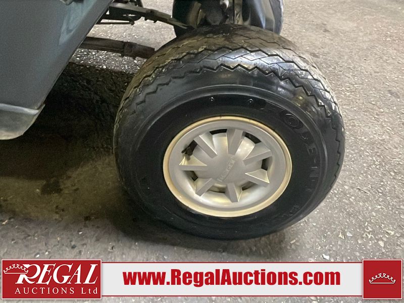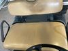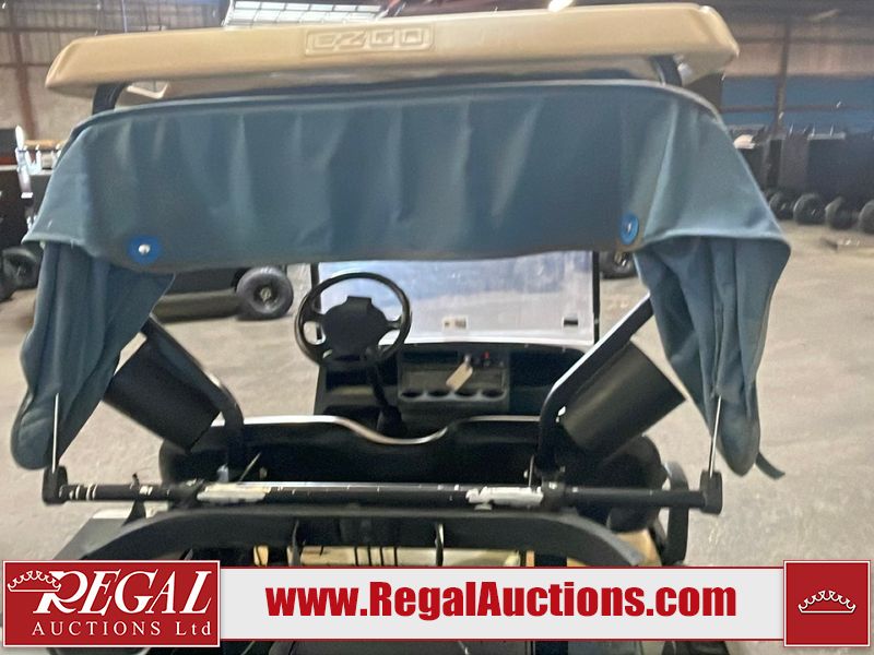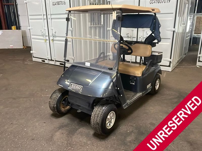 This unit is a 2011 EZ-GO TXTE 48V model club car. Its maximum payload capacity is 800 LBS. The interior is dirty. The leather is fading. The seat is torn. Exterior plastics are showing scratches and scuffs. The windscreen is broken. This unit starts and runs. This unit is powered by six 8 Volt batteries. The tires are mounted to steel rims and appear to be in good enough condition for use.