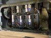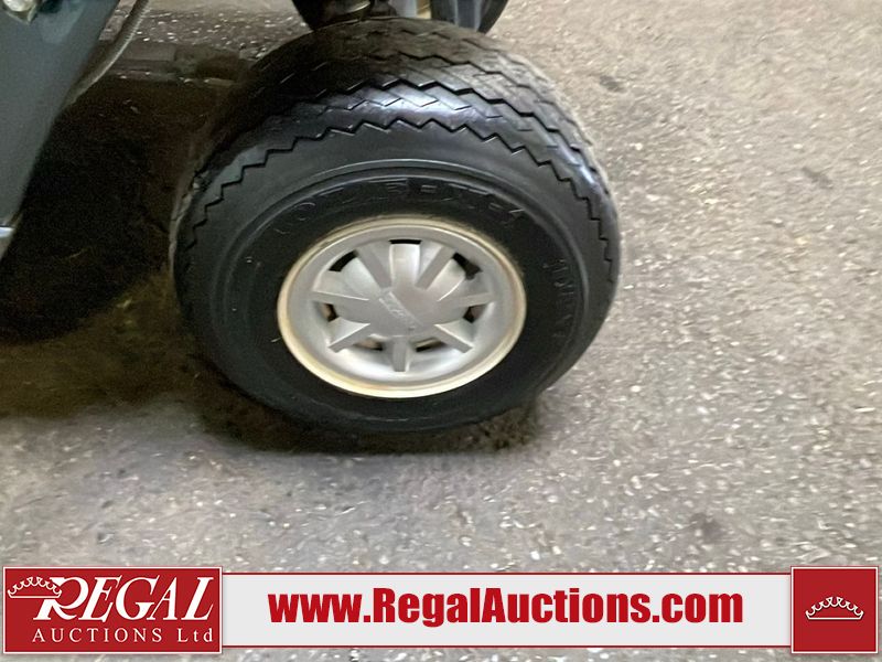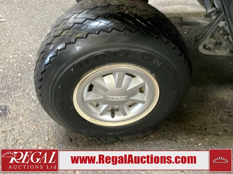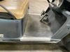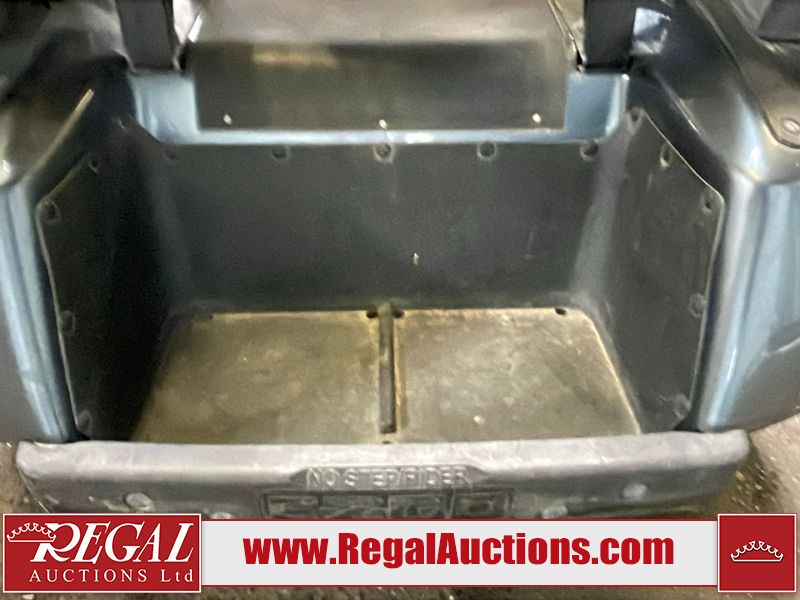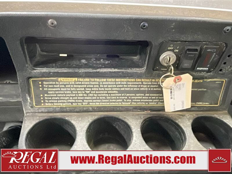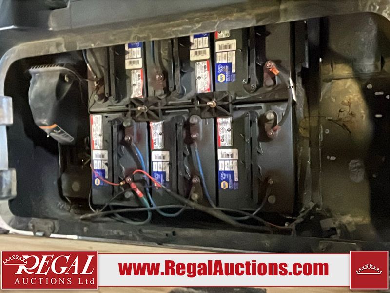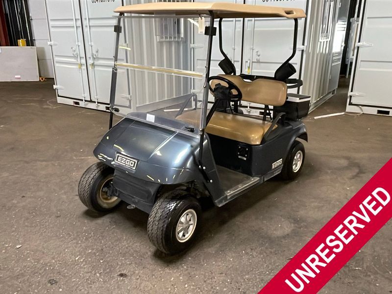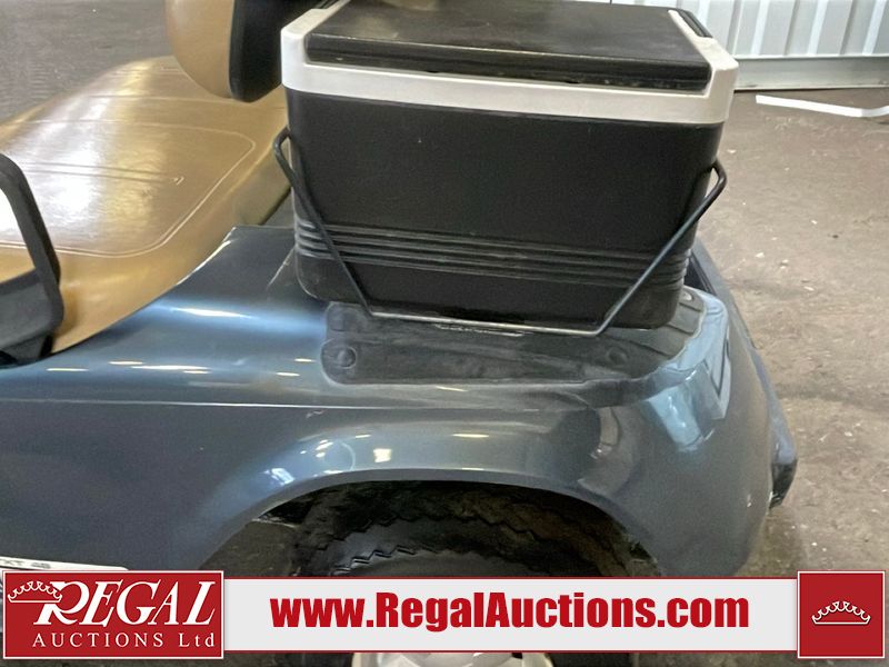 This unit is a 2011 EZ-GO TXTE 48V model club car. Its maximum payload capacity is 800 LBS. The interior is dirty. The leather is fading. The seat has a cigarette burn. Exterior plastics are showing scratches and scuffs. This unit is missing its rear cover. This unit starts and runs. This unit is powered by six 8 Volt batteries. The tires are mounted to steel rims and appear to be in good enough condition for use.