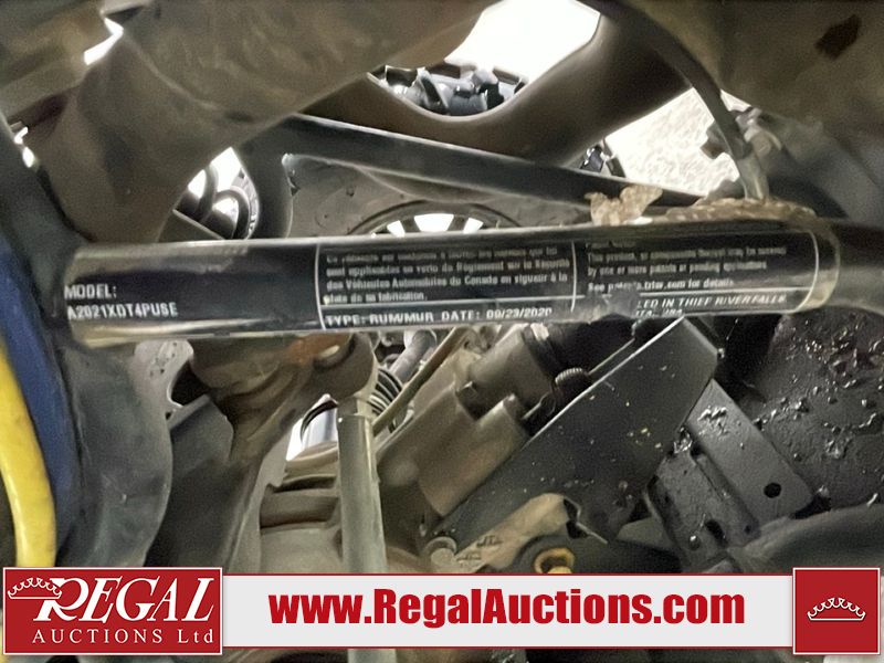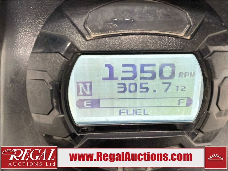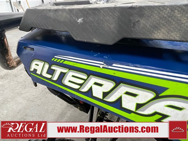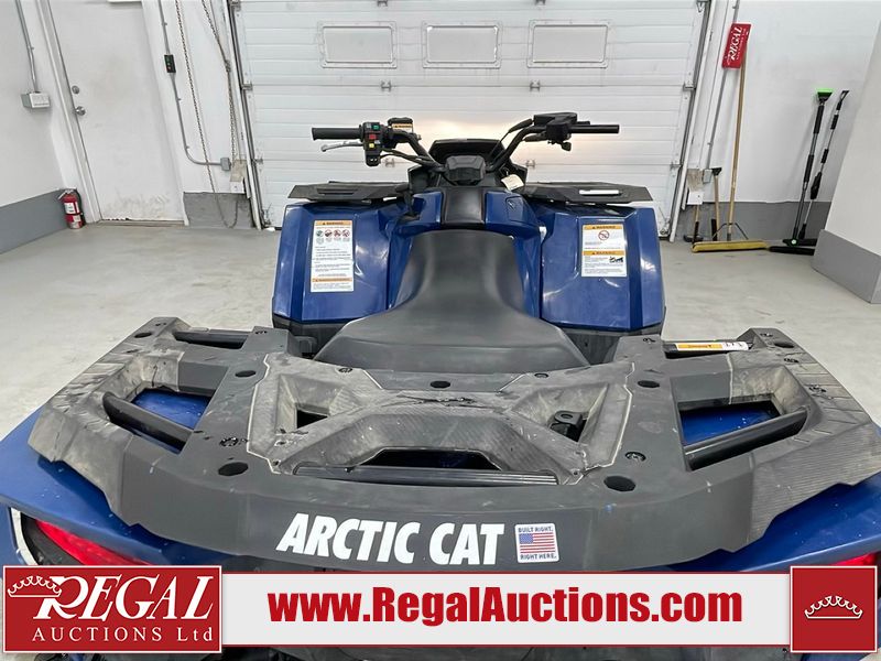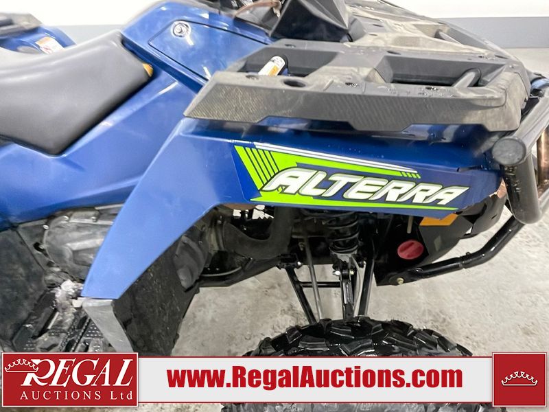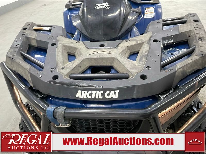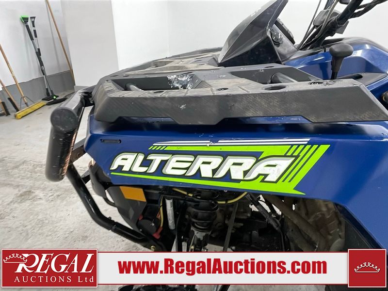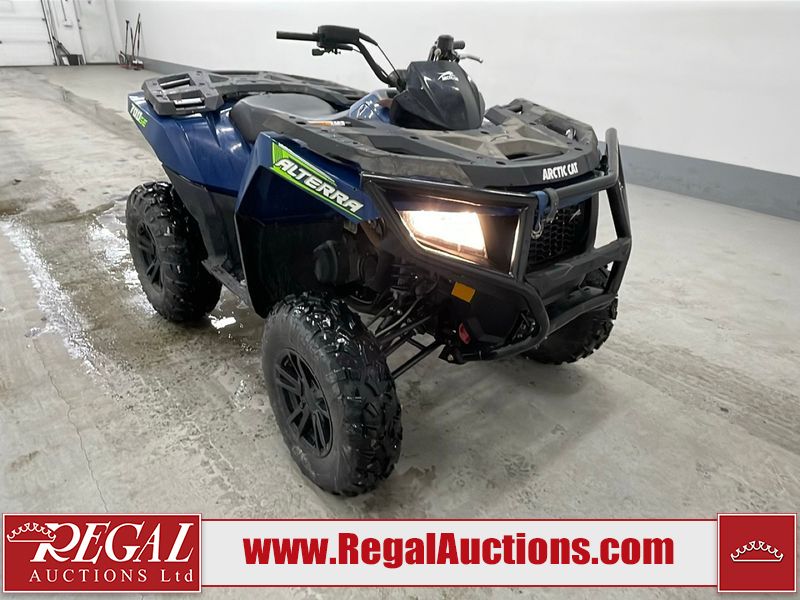 This Atv is a 2021 Arctic cat Alterra 700 SEAPS model. the odometer shows 305 km and 57 engine hours. The seat is peeling. The brush guard is chipped. The headlights have been remounted with zip ties. The rear plastics are misaligned. Some decals are peeling. The right side lower plastic is cracked. The right hand grip is missing. This unit starts and runs without a boost. This unit is powered by a 695cc single cylinder, four stroke liquid cooled engine and a continuously variable transmission with a shaft final drive. The tires are mounted to alloy rims and appear to be in good enough condition for use. This unit is equipped with a winch, and a 2WD/4WD selector.