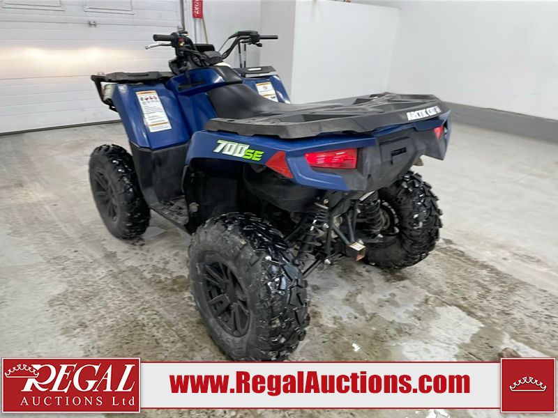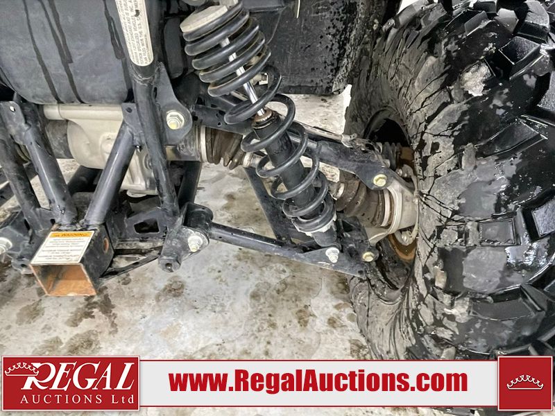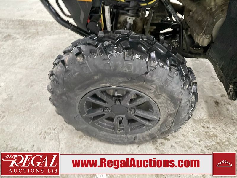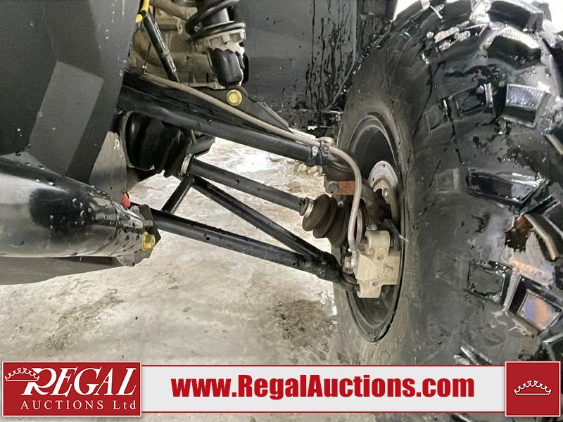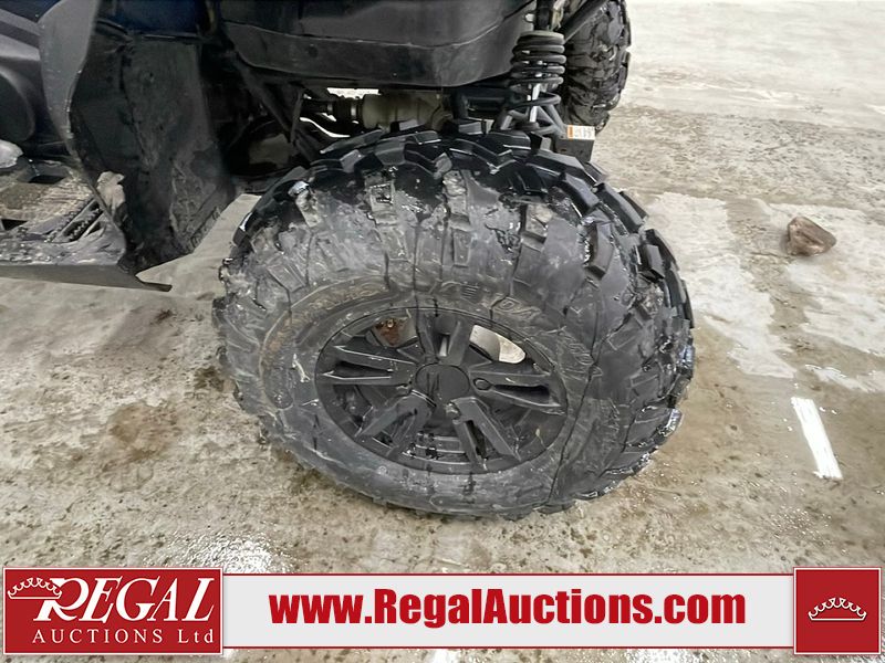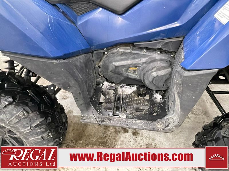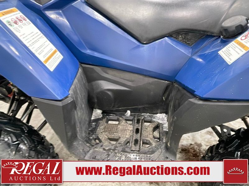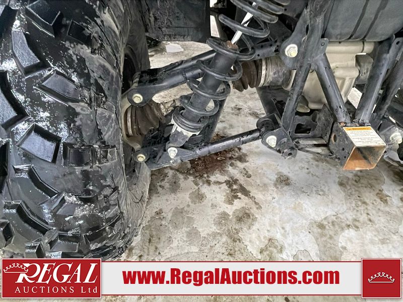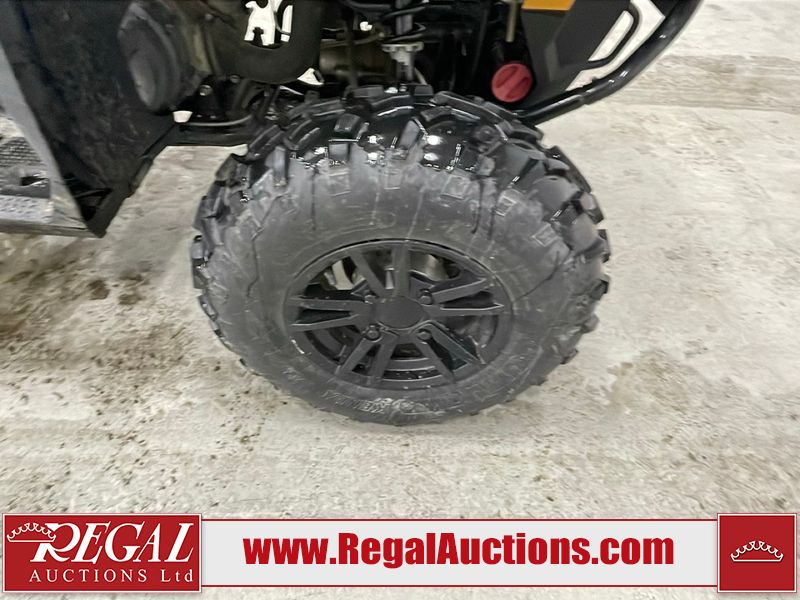 This Atv is a 2021 Arctic cat Alterra 700 SEAPS model. the odometer shows 305 km and 57 engine hours. The seat is peeling. The brush guard is chipped. The headlights have been remounted with zip ties. The rear plastics are misaligned. Some decals are peeling. The right side lower plastic is cracked. The right hand grip is missing. This unit starts and runs without a boost. This unit is powered by a 695cc single cylinder, four stroke liquid cooled engine and a continuously variable transmission with a shaft final drive. The tires are mounted to alloy rims and appear to be in good enough condition for use. This unit is equipped with a winch, and a 2WD/4WD selector.