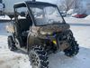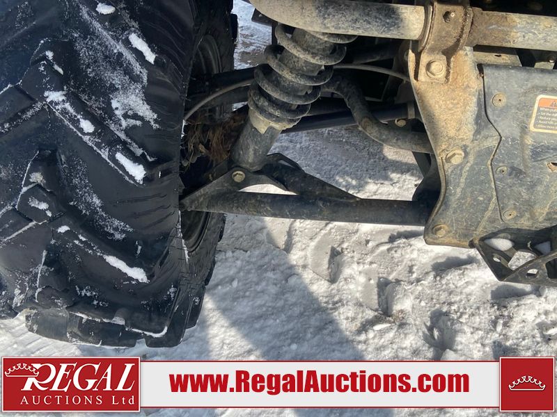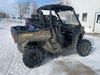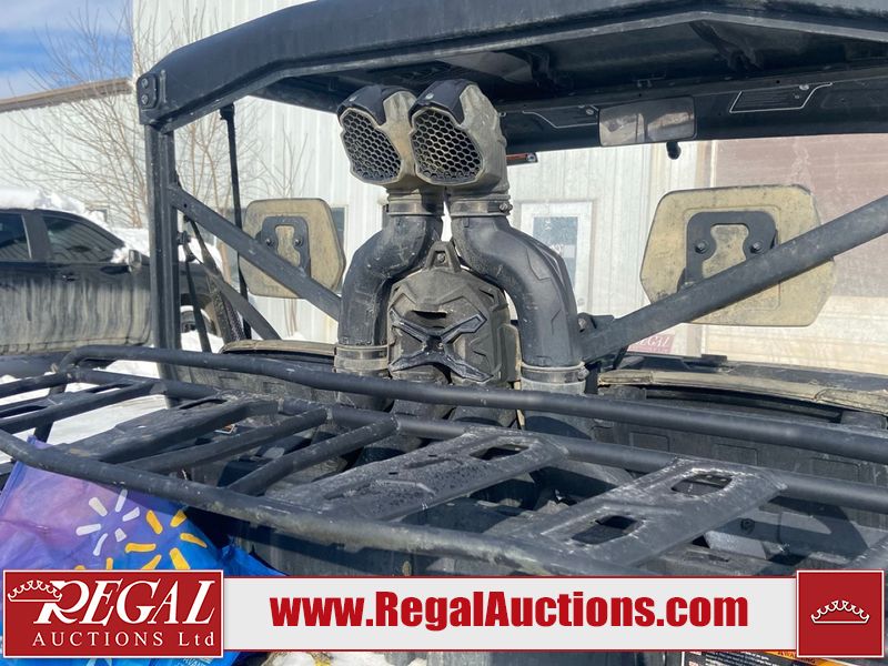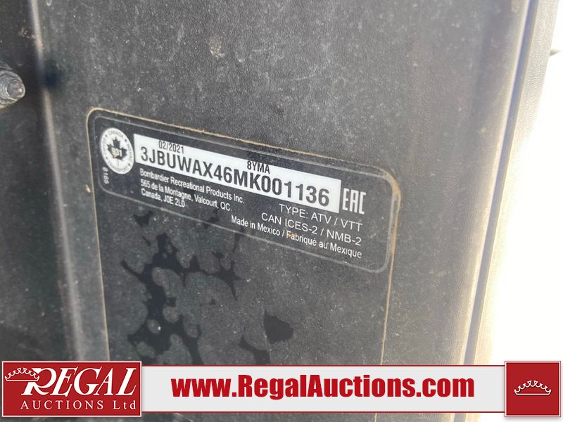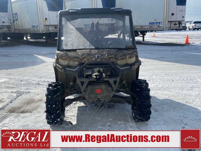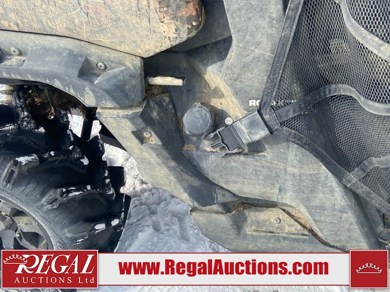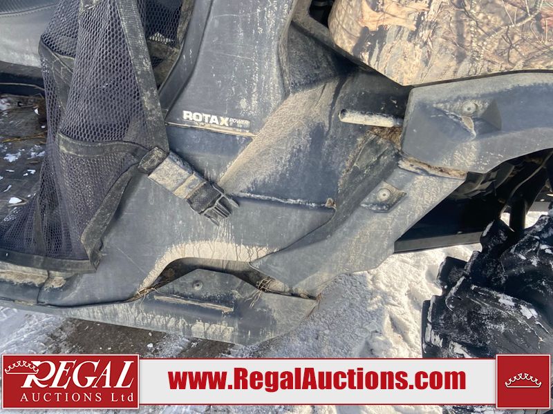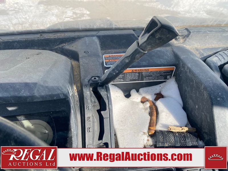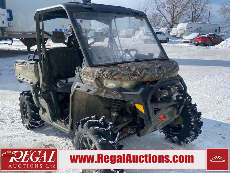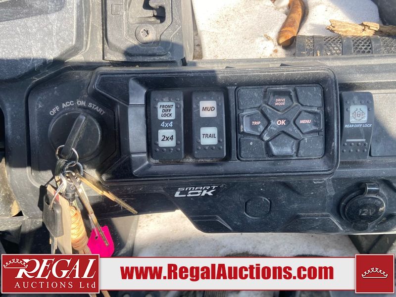 This ATV is a 2021 Can-Am defender X MRHD10 PRO DPS CAMO model. The odometer show 2,228 km and 155 hours. The interior is dirty. This unit is equipped with a CB radio. The plastics have scratches. This unit starts and runs with a boost. The battery is dead. This unit is powered by a 1000cc liquid cooled between 1.0L two cylinder engine and a continuously variable transmission with a shaft final drive. The tires are mounted to alloy rims and appeared to be good enough for use. This unit is equipped with a front winch, and a 2WD/4WD selector.