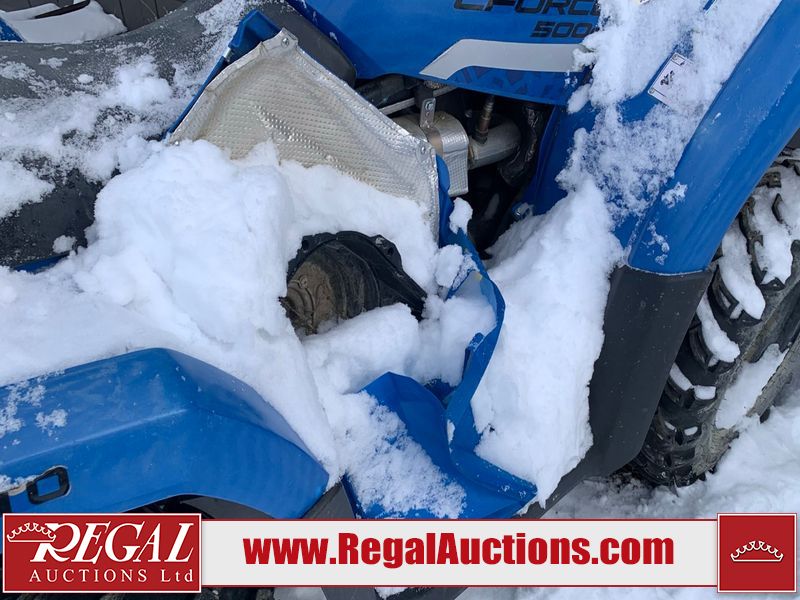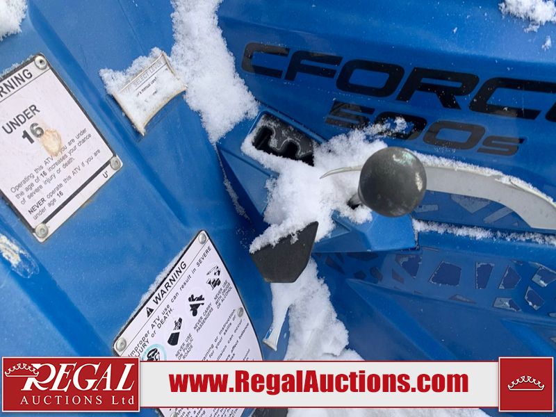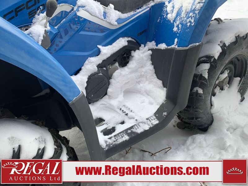 This unit is a 2021 CF Moto CF force 500 S model. This unit does not power on with a booster pack, the odometer cannot be confirmed. The plastics have scratches and scrapes. The side panels have been removed. The torque converter housing has been removed. The engine does not turn over. This unit gets no power when a booster pack is applied. The condition of the engine and drive liner unknown. The continuously variable clutch belt is missing. this unit is powered by a single cylinder 495 cc liquid engine and they continuously variable transmission with a shaft final drive. Steel rims are mounted, the tires appear to be good enough condition for use. The unit has a trailer hitch mounted.