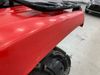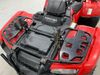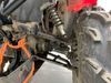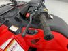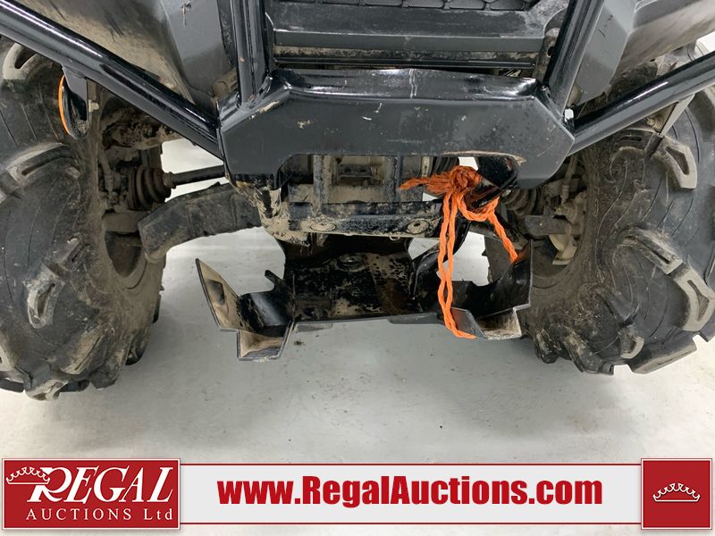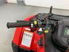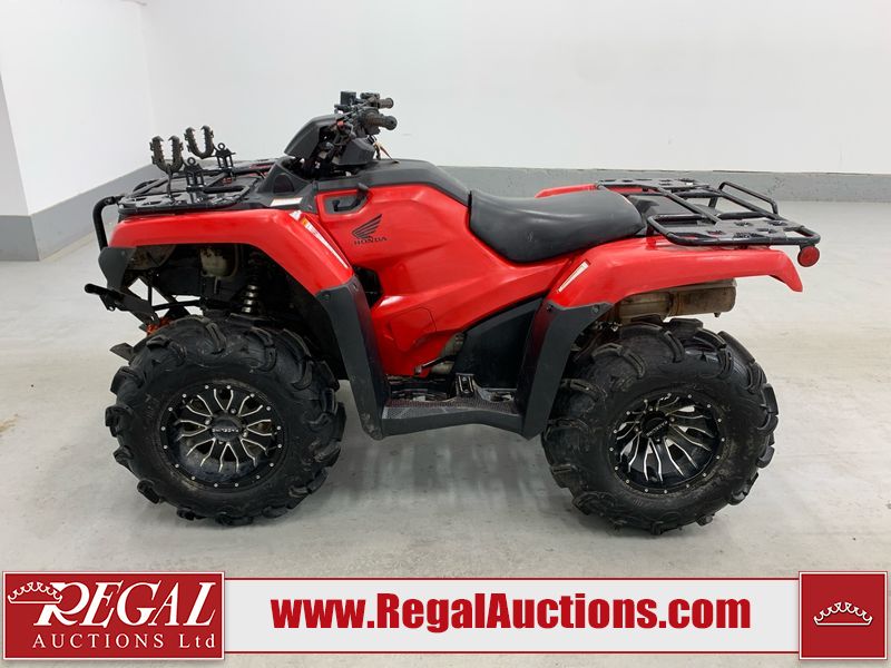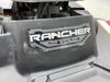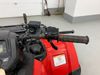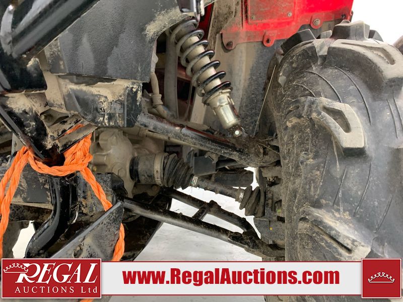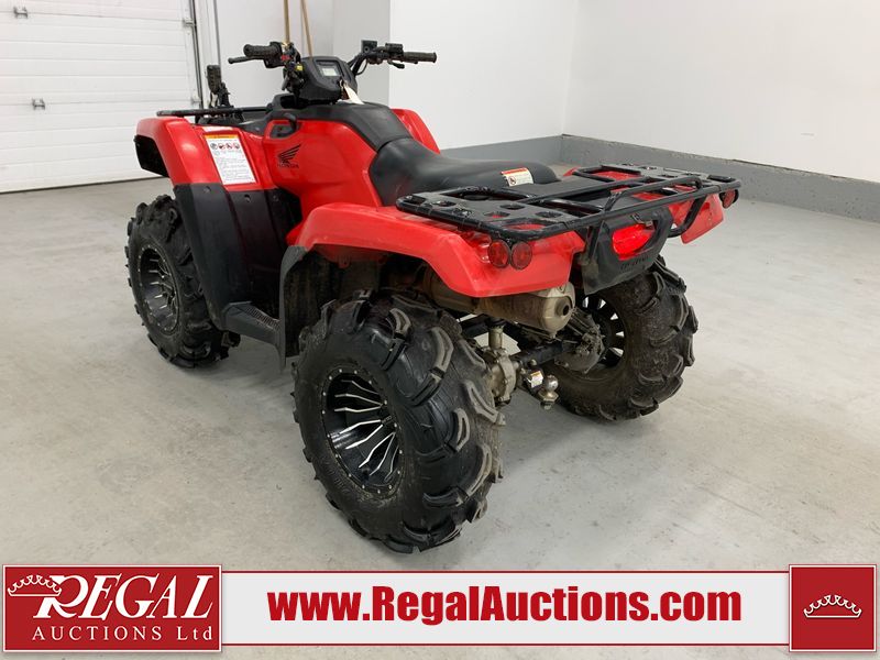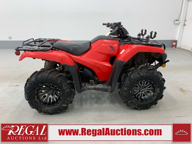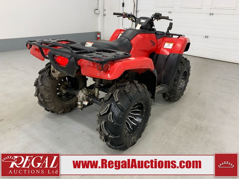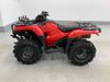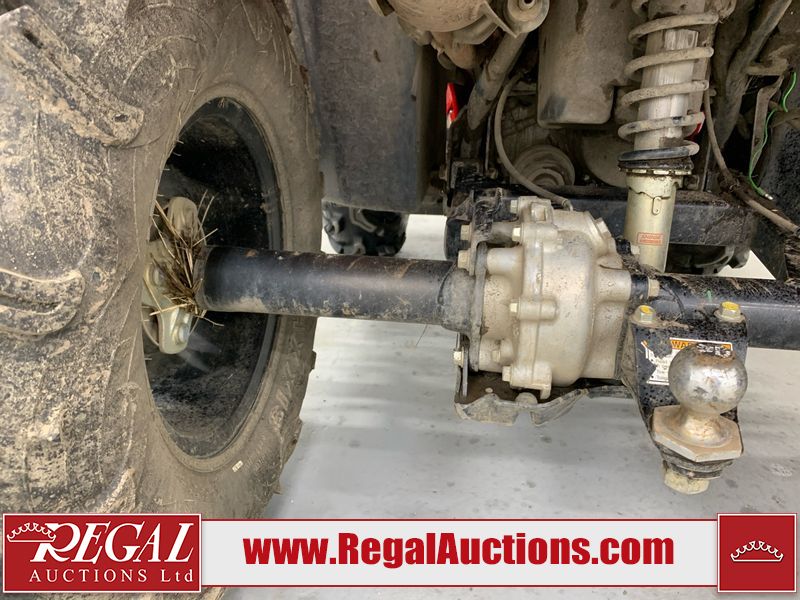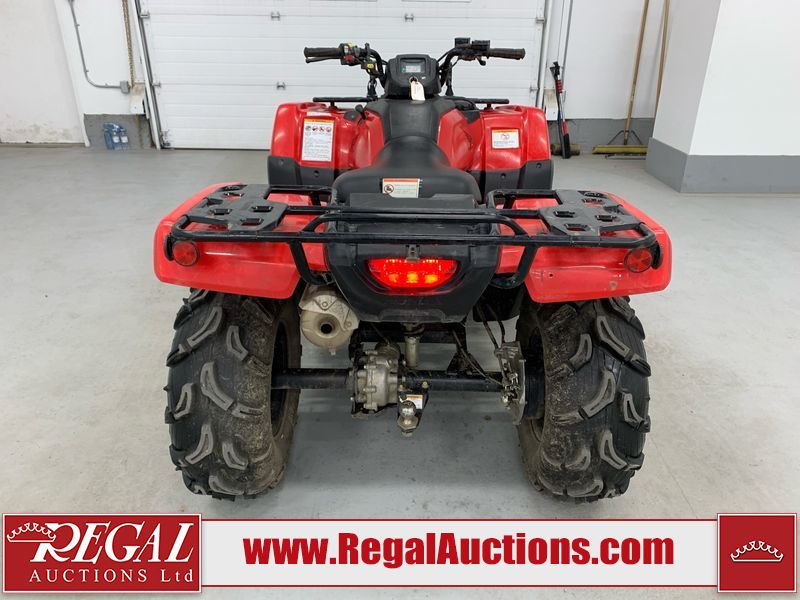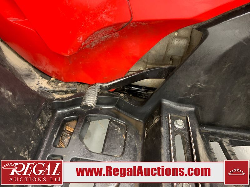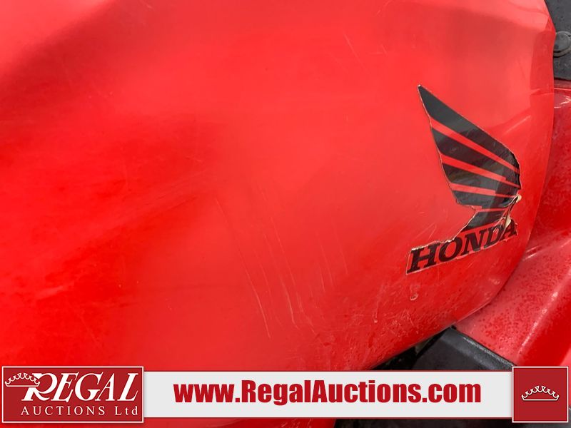 This ATV is a 2021 Honda TRX420FM1 Rancher model. The odometer shows 2,236 km and 219 hours. The operator seat is torn. The front crash bar is loose and missing bolts. The front skid plate is hanging. All plastics are showing scratches and scuffs. Alloy rims are mounted, the tires appear to be in good enough condition for use. The battery is missing. This unit is powered by a 420cc liquid cooled, single cylinder engine and a five speed manual transmission with reverse and a shaft final drive. The front winch is missing. This ATV is equipped with a 4WD/2WD selector knob.