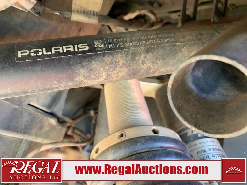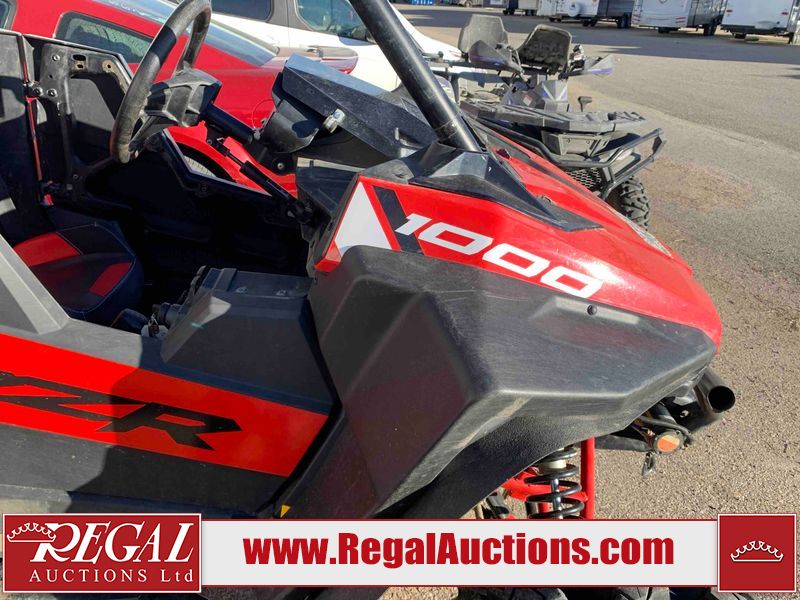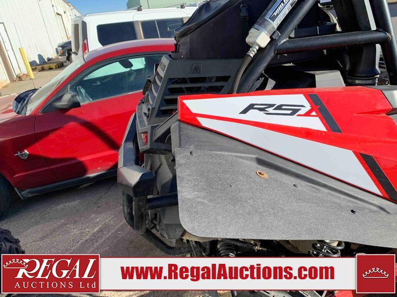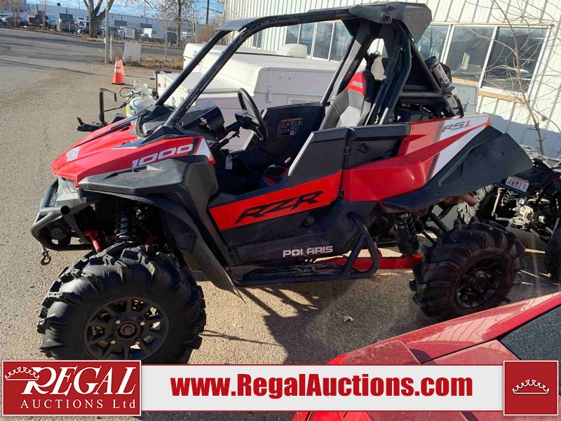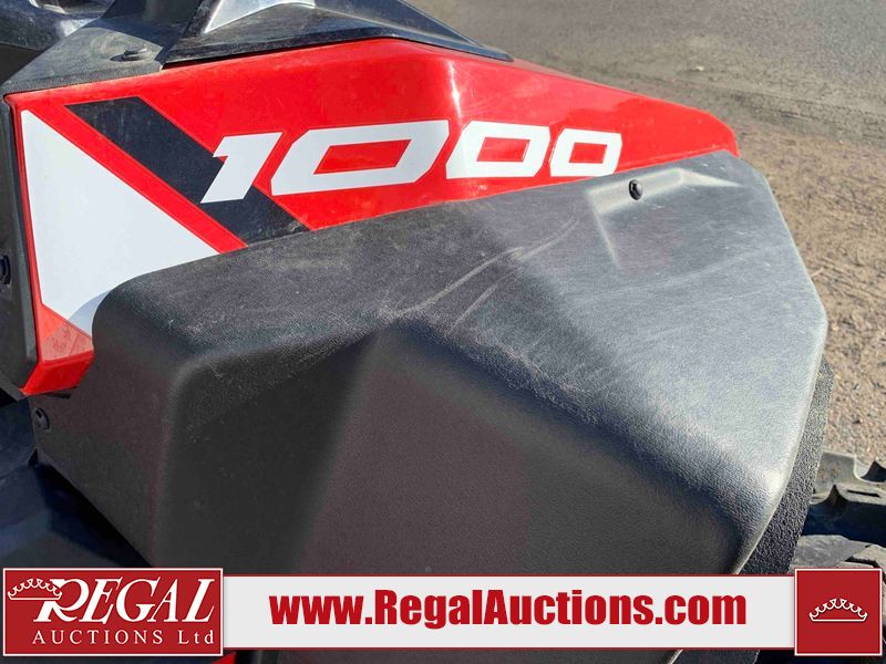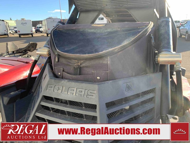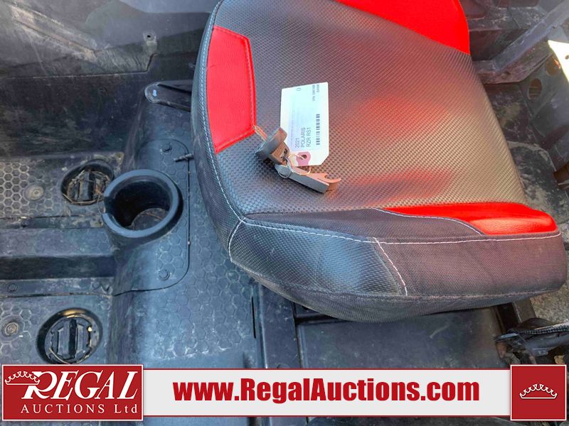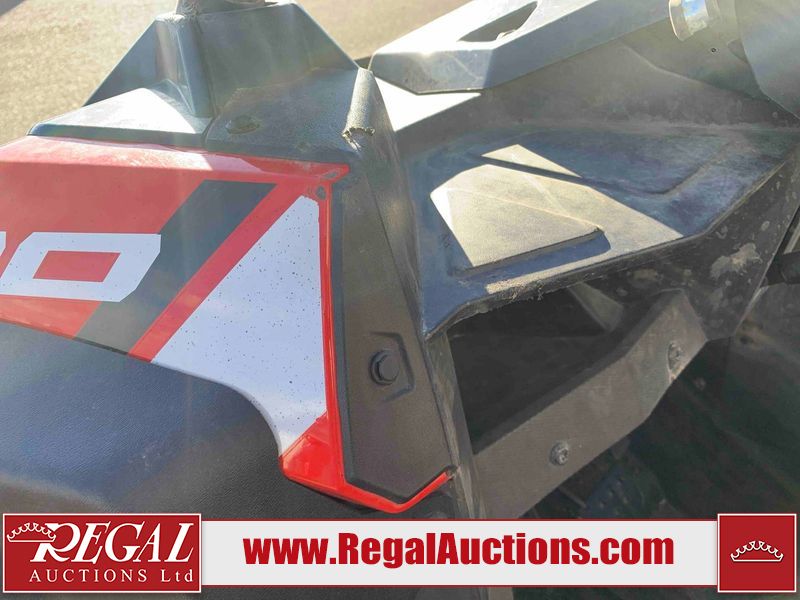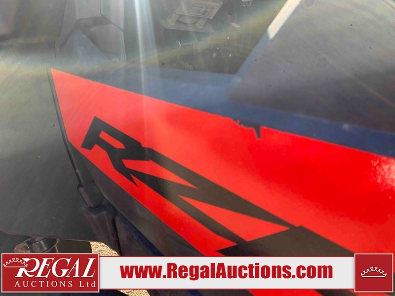 This ATV is a 2021 Polaris razor RS1 model. The odometer shows 1783 km and 133 engine hours. The interior is dirty. Not all damages can be determined. The dash has scrapes. The Front crash bar has peeling paint. The front end is showing chips. The left front, and rear fender has scratches and scuffs. The left rear fender protector is missing plastic rivets. The rear crash Bar has scuffs. The right rear, and right front fenders have scuffs. Some decals are appealing. This unit starts and runs without a boost. This unit is powered by a 999cc V twin four stroke liquid cooled engine and a automatic transmission with a shaft final drive. The tires are mounted to alloy rims and appear to be in good enough condition for use. This unit is equipped with a winch, 2WD/4WD selector, and a rear tote bag.