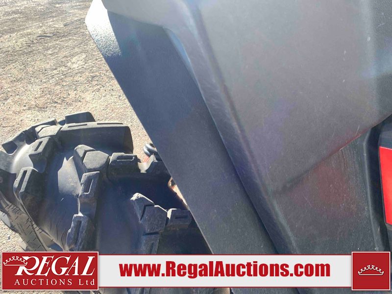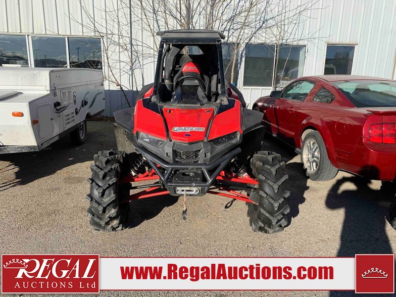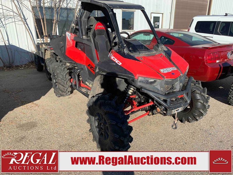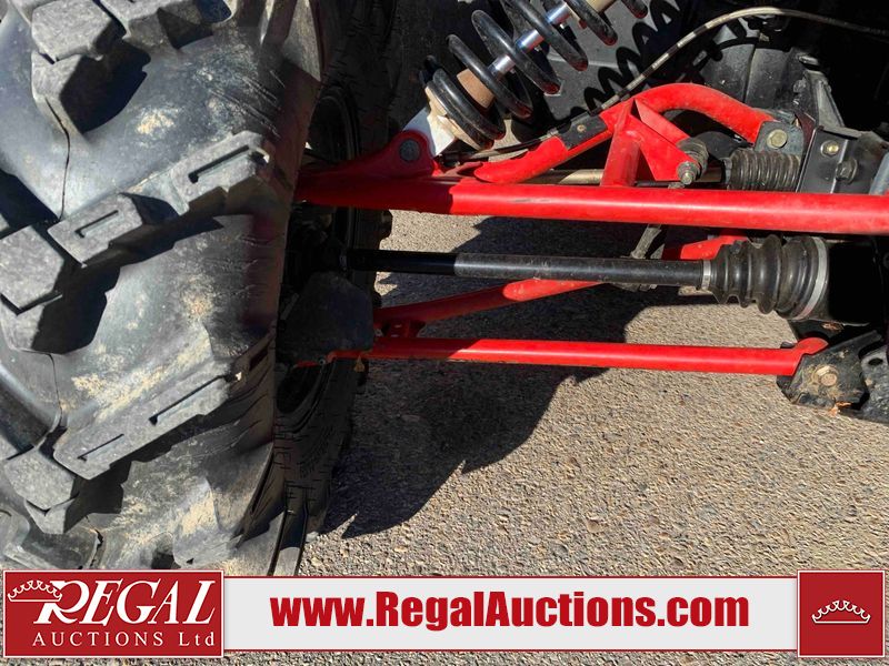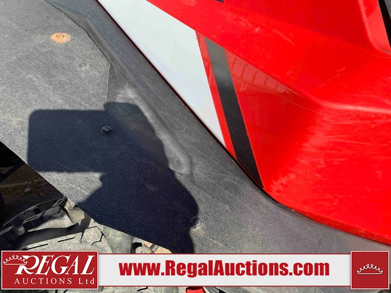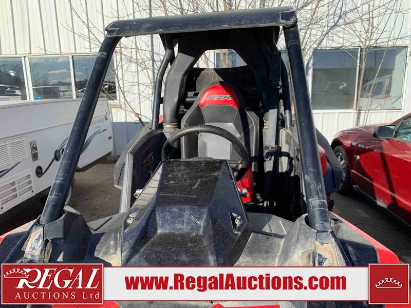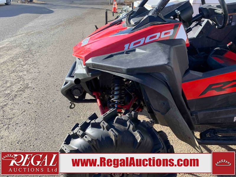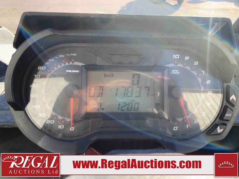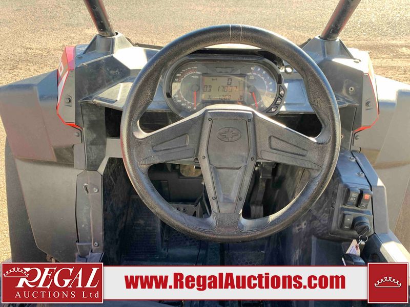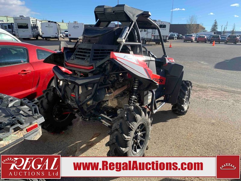 This ATV is a 2021 Polaris razor RS1 model. The odometer shows 1783 km and 133 engine hours. The interior is dirty. Not all damages can be determined. The dash has scrapes. The Front crash bar has peeling paint. The front end is showing chips. The left front, and rear fender has scratches and scuffs. The left rear fender protector is missing plastic rivets. The rear crash Bar has scuffs. The right rear, and right front fenders have scuffs. Some decals are appealing. This unit starts and runs without a boost. This unit is powered by a 999cc V twin four stroke liquid cooled engine and a automatic transmission with a shaft final drive. The tires are mounted to alloy rims and appear to be in good enough condition for use. This unit is equipped with a winch, 2WD/4WD selector, and a rear tote bag.