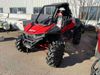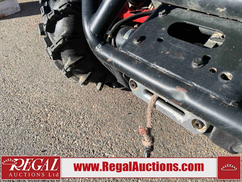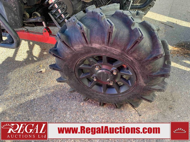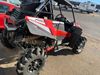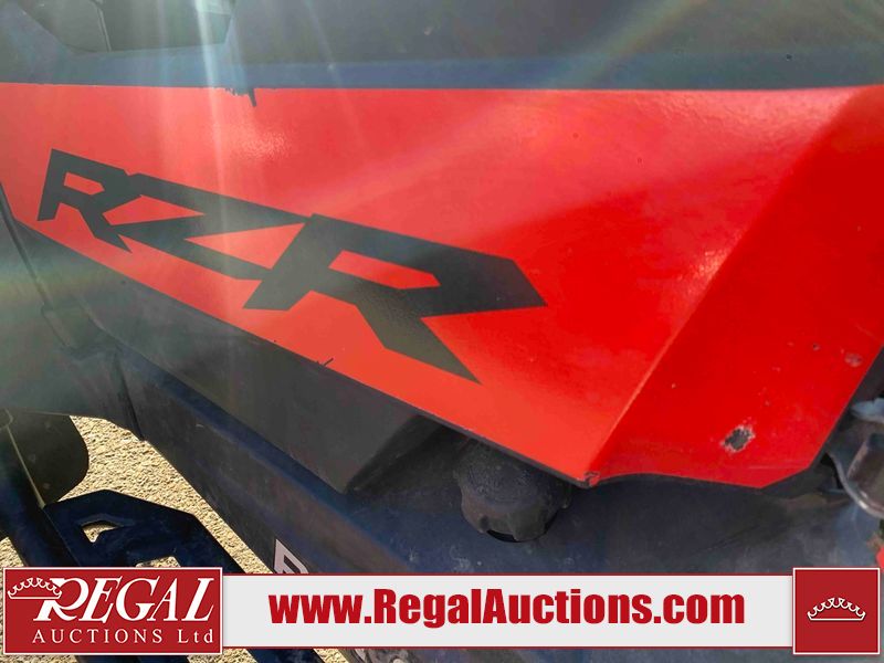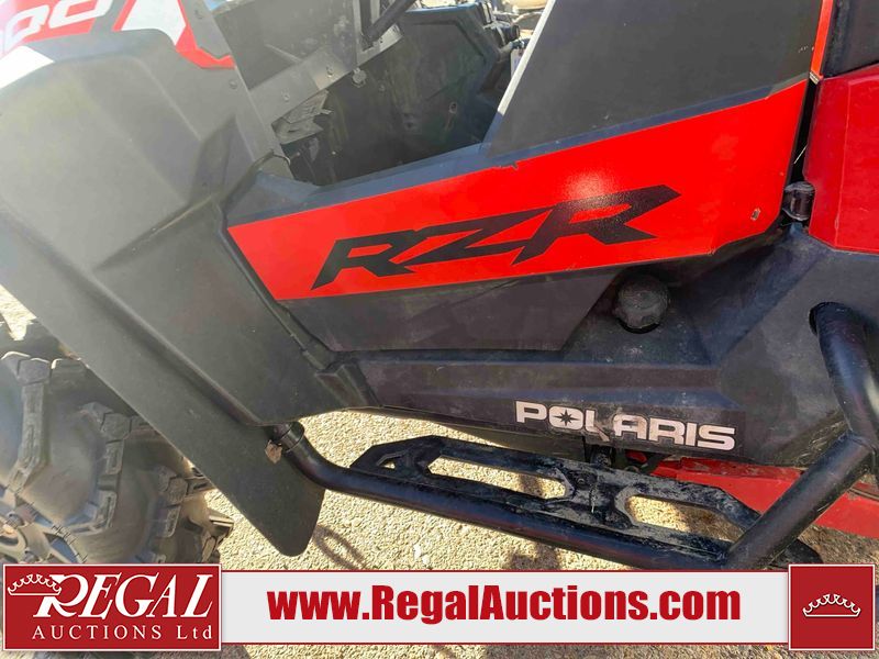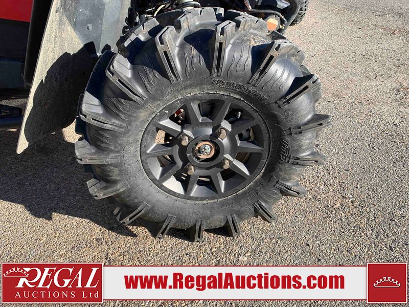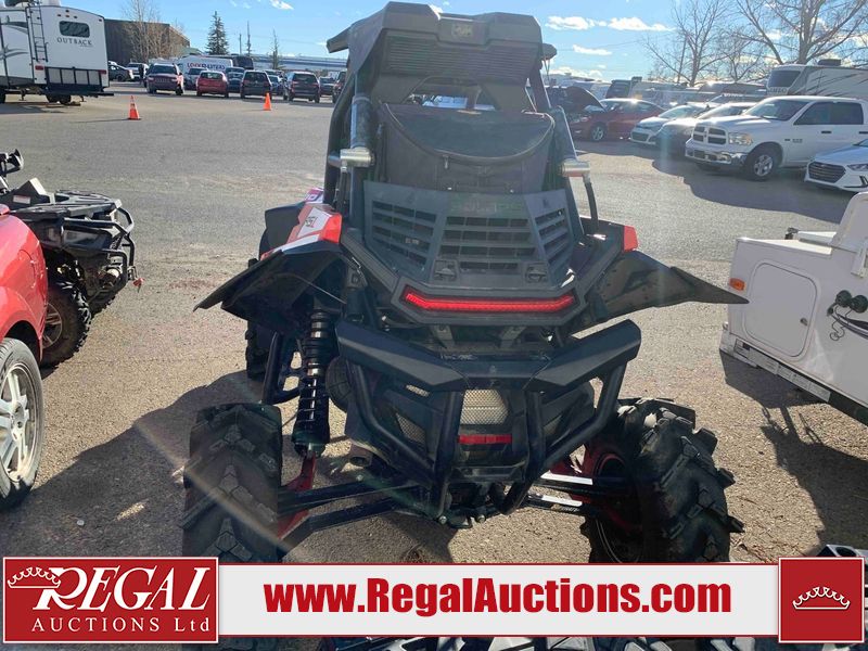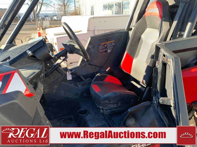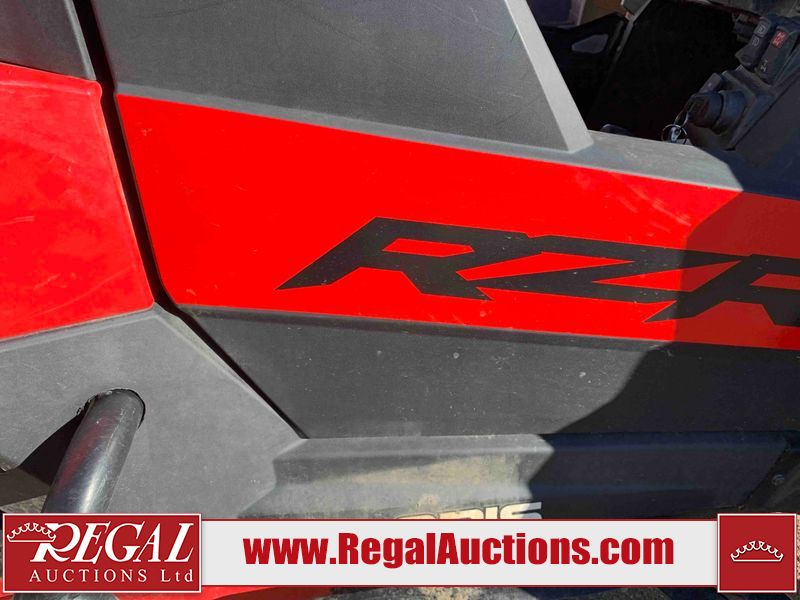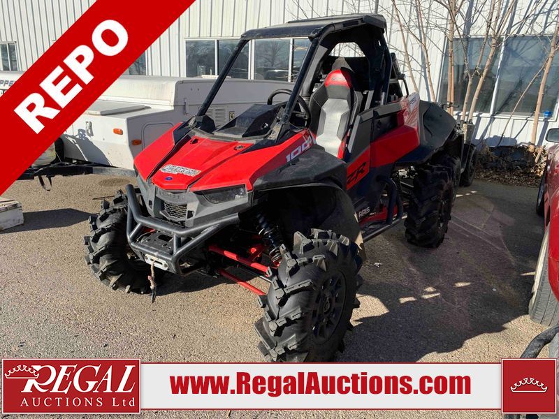 This ATV is a 2021 Polaris razor RS1 model. The odometer shows 1783 km and 133 engine hours. The interior is dirty. Not all damages can be determined. The dash has scrapes. The Front crash bar has peeling paint. The front end is showing chips. The left front, and rear fender has scratches and scuffs. The left rear fender protector is missing plastic rivets. The rear crash Bar has scuffs. The right rear, and right front fenders have scuffs. Some decals are appealing. This unit starts and runs without a boost. This unit is powered by a 999cc V twin four stroke liquid cooled engine and a automatic transmission with a shaft final drive. The tires are mounted to alloy rims and appear to be in good enough condition for use. This unit is equipped with a winch, 2WD/4WD selector, and a rear tote bag.
