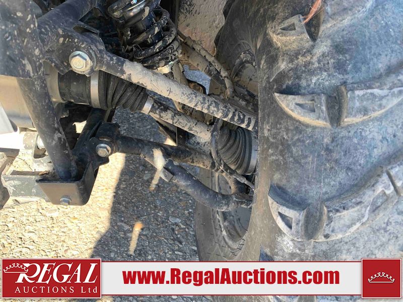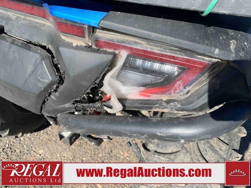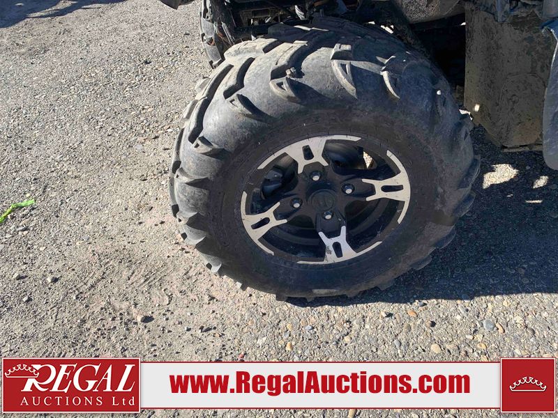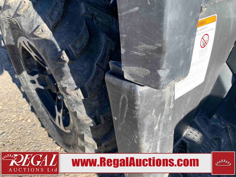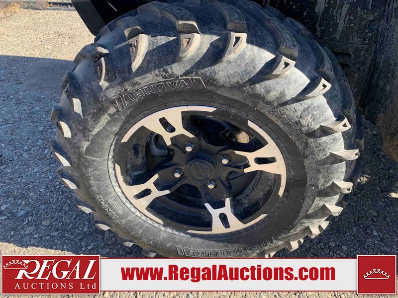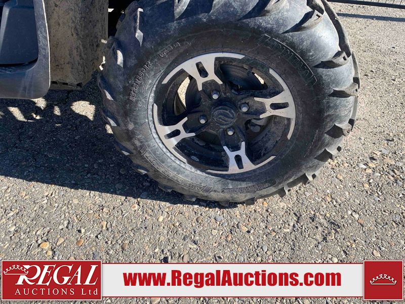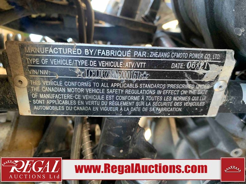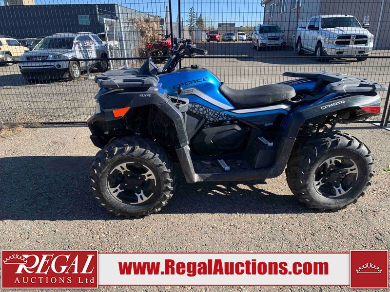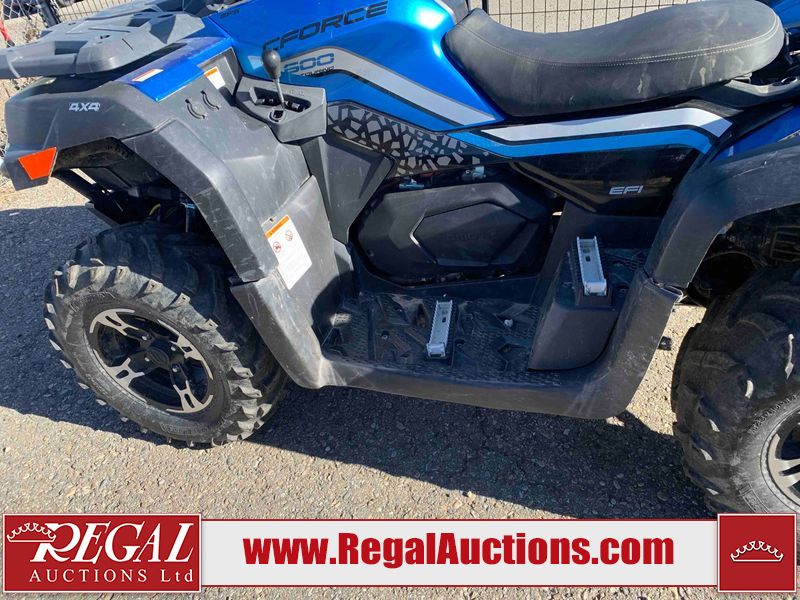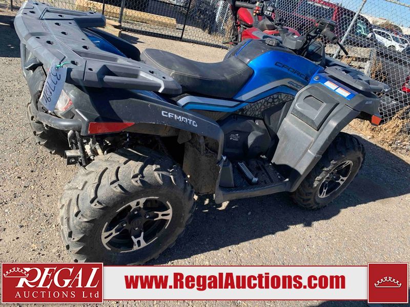 This ATV is a 2022 CF model C force 600 EPS touring model. The odometer cannot be confirmed. The seat is worn. The battery cover is missing. There are scratches and scuffs on all panels. The front crash bar is scuffed. Some decals are peeling. The left centre panel is cracked and misaligned. The rear crash bar is dented and has peeling paint. The rear plastics and write tail light appeared to have fire damage and have melted. The license plate mount is gouged. The right centre plastic is misaligned. This unit does not get power with external power applied. This unit is powered by a 580 cc single cylinder four stroke liquid cooled engine with a continuously variable transmission and shaft final drive. This unit will need to be told through the auction, its engine, transmission, and drive train cannot be confirmed. Diagnostics will need to be performed to determine its exact problems. The tires are mounted to alloy rims and appear to be in good enough condition for use. This unit is equipped with a winch, and a 2WD/4WD selector.