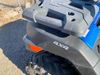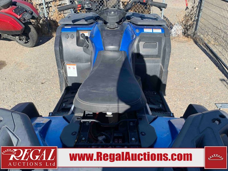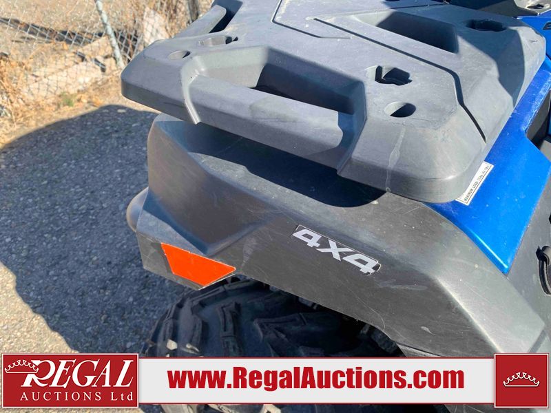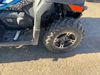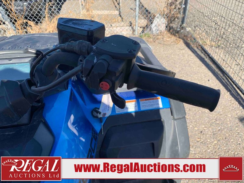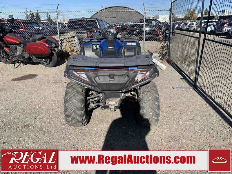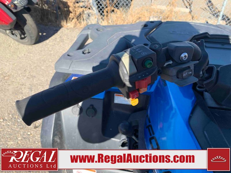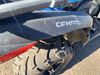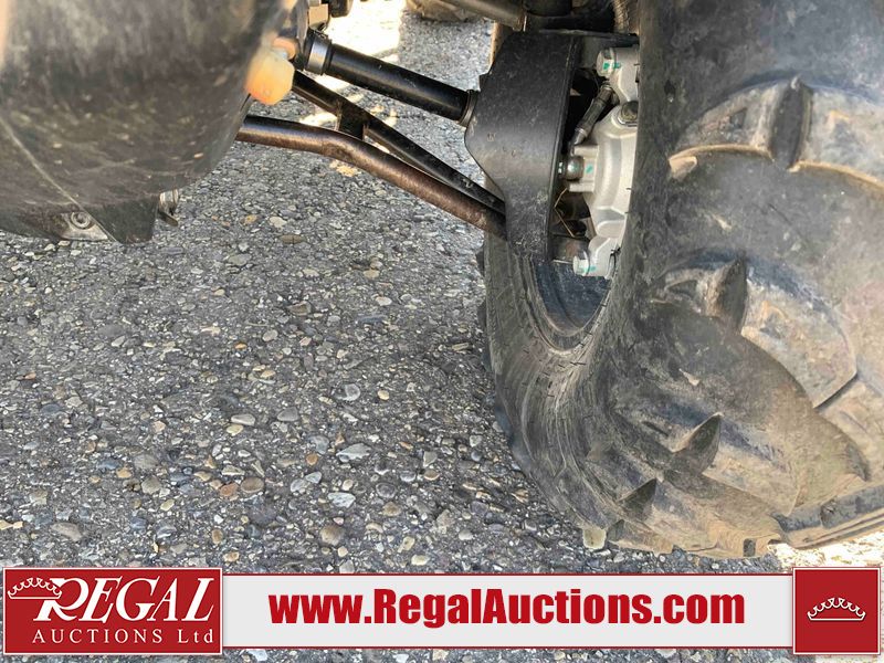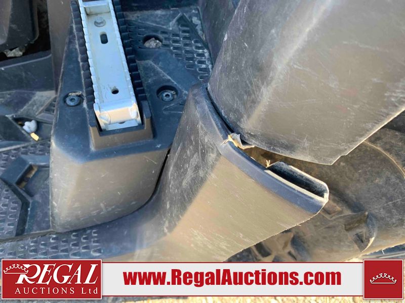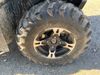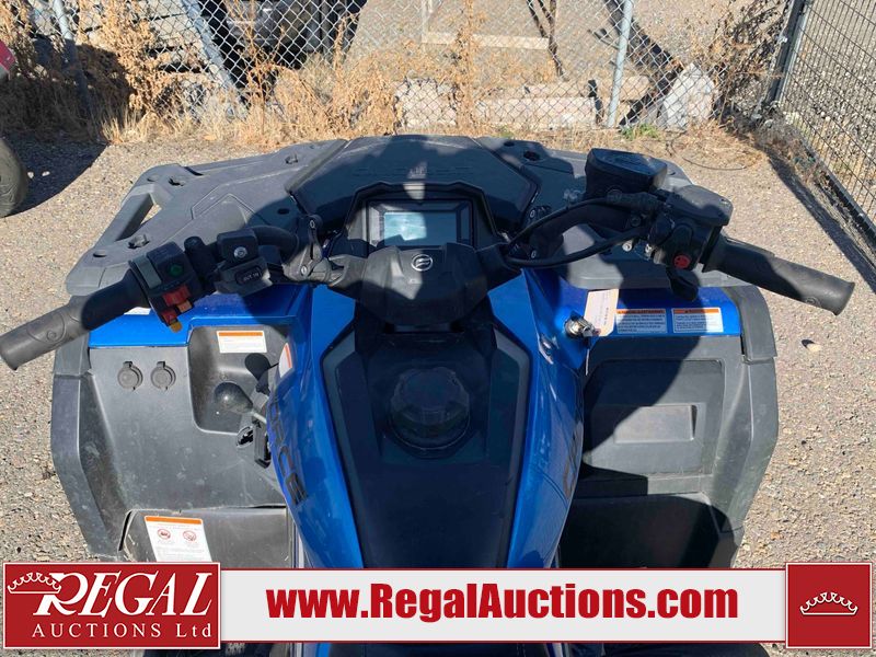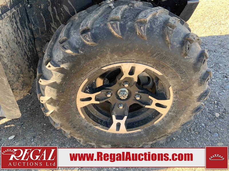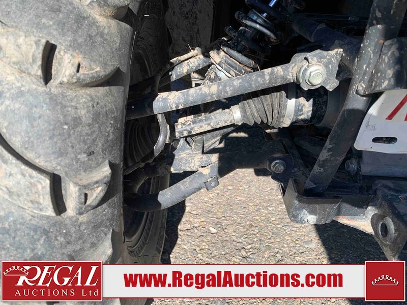 This ATV is a 2022 CF model C force 600 EPS touring model. The odometer cannot be confirmed. The seat is worn. The battery cover is missing. There are scratches and scuffs on all panels. The front crash bar is scuffed. Some decals are peeling. The left centre panel is cracked and misaligned. The rear crash bar is dented and has peeling paint. The rear plastics and write tail light appeared to have fire damage and have melted. The license plate mount is gouged. The right centre plastic is misaligned. This unit does not get power with external power applied. This unit is powered by a 580 cc single cylinder four stroke liquid cooled engine with a continuously variable transmission and shaft final drive. This unit will need to be told through the auction, its engine, transmission, and drive train cannot be confirmed. Diagnostics will need to be performed to determine its exact problems. The tires are mounted to alloy rims and appear to be in good enough condition for use. This unit is equipped with a winch, and a 2WD/4WD selector.