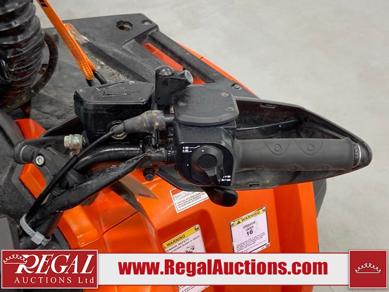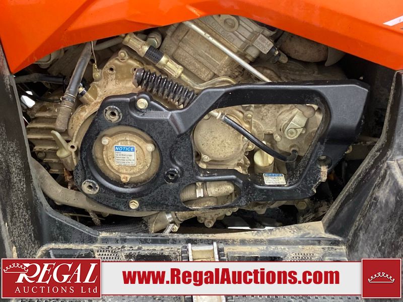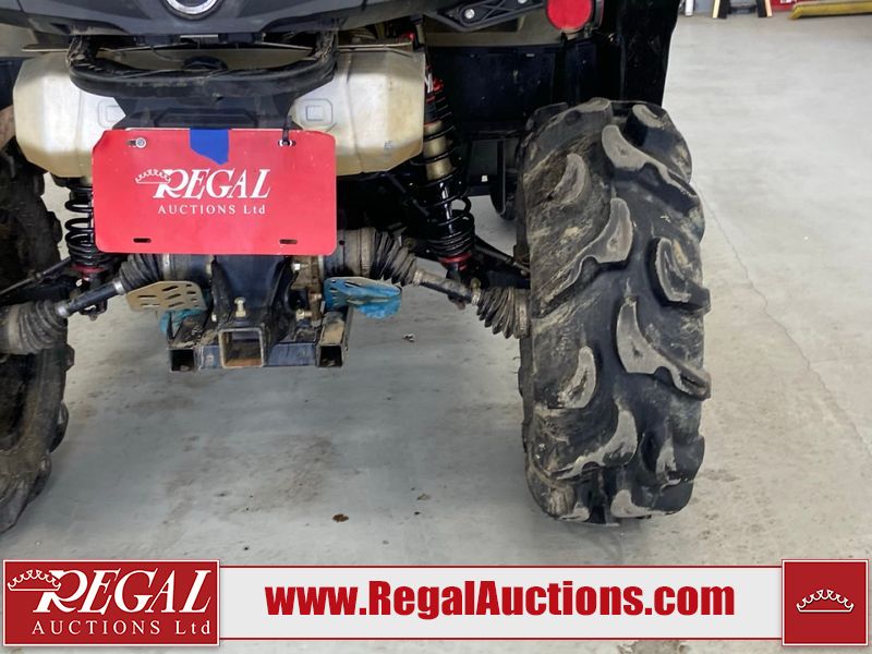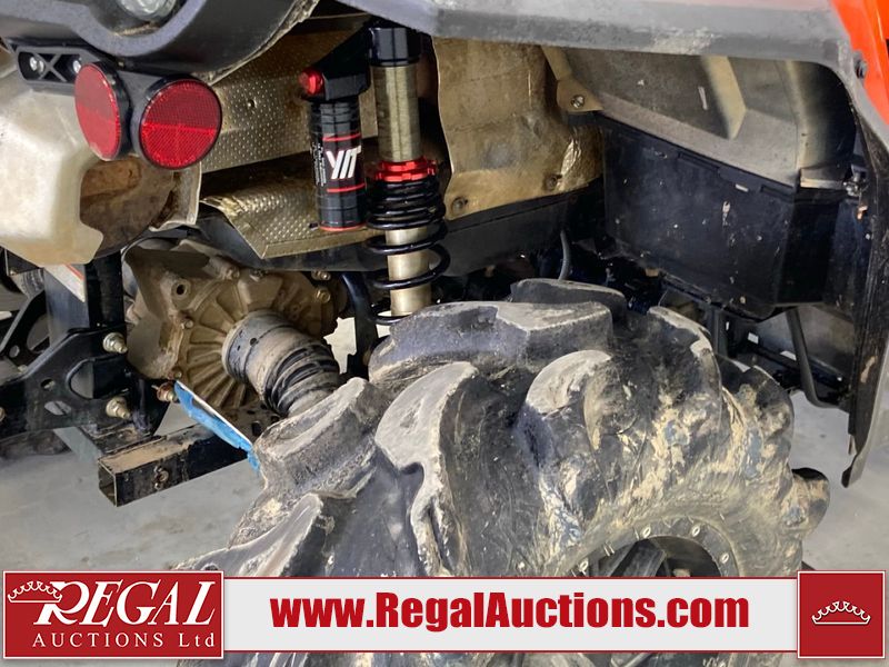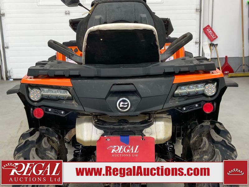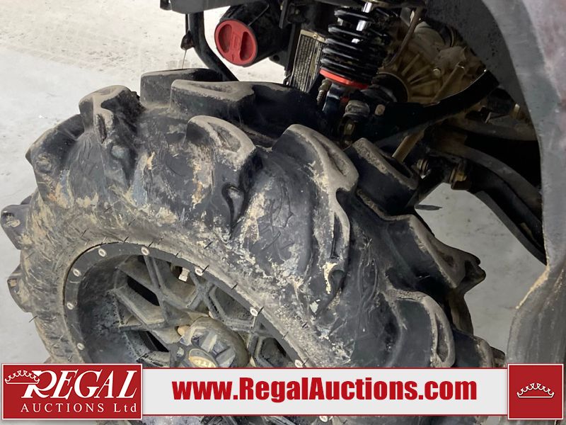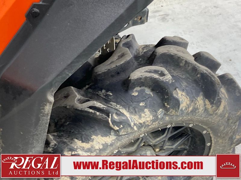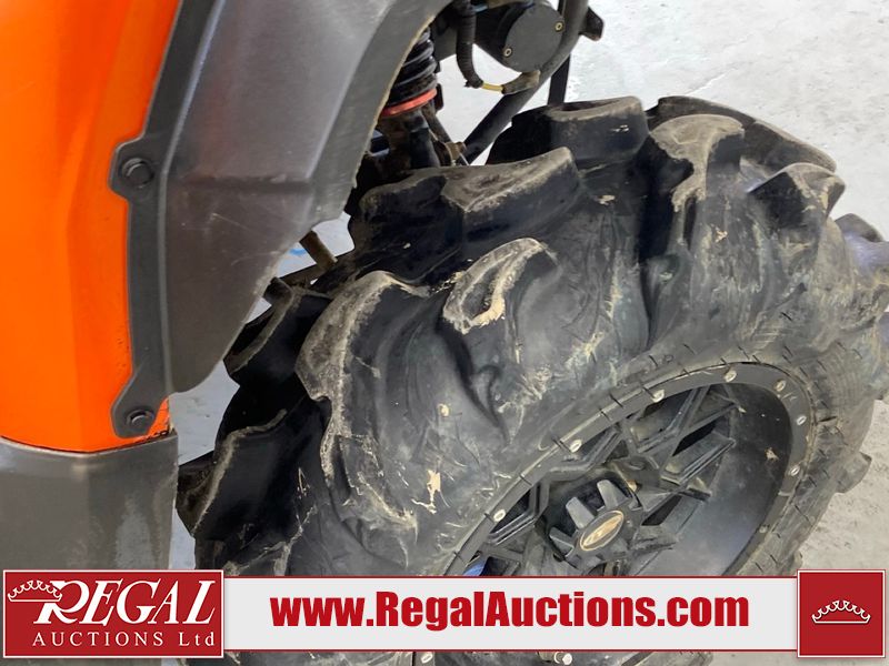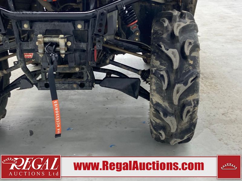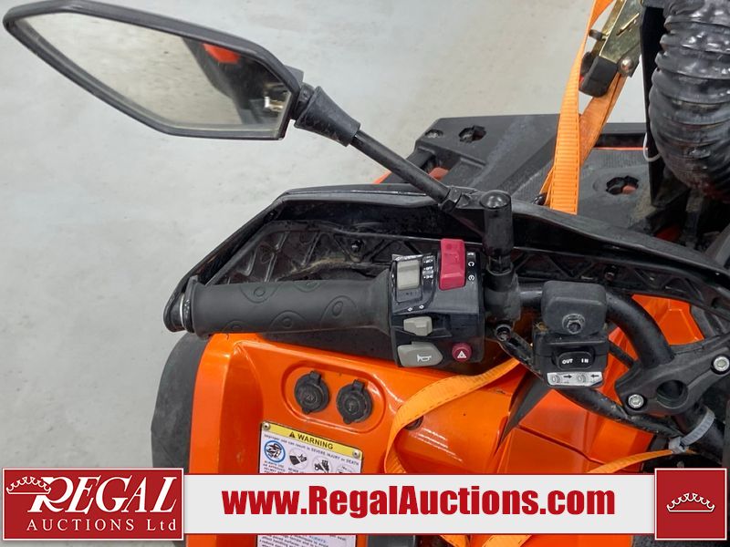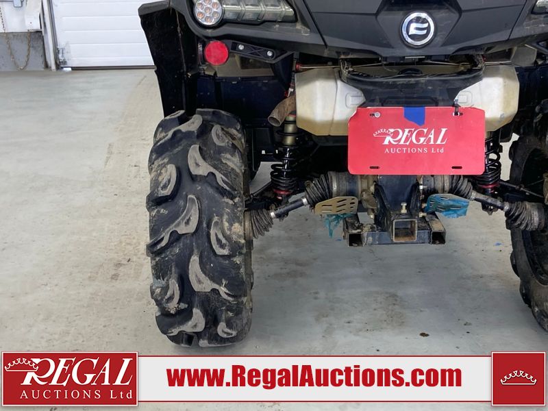 This ATV is a 2022 CF MOTO CFORCE 800XC EPS LX. The odometer reads 1111kms and 89.5 engine hours. The right side mirror is missing. The front and rear plastics and showing scuffs and scratches. This unit starts and runs without a boost. The transmission does not engage in reverse. It is powered by a 800 cc two cylinder four stroke engine with a continuously variable transmission with a shaft final drive. The tires appear to be in good condition for use. It is equipped with 4WD/2WD selector winch and hitch receiver.