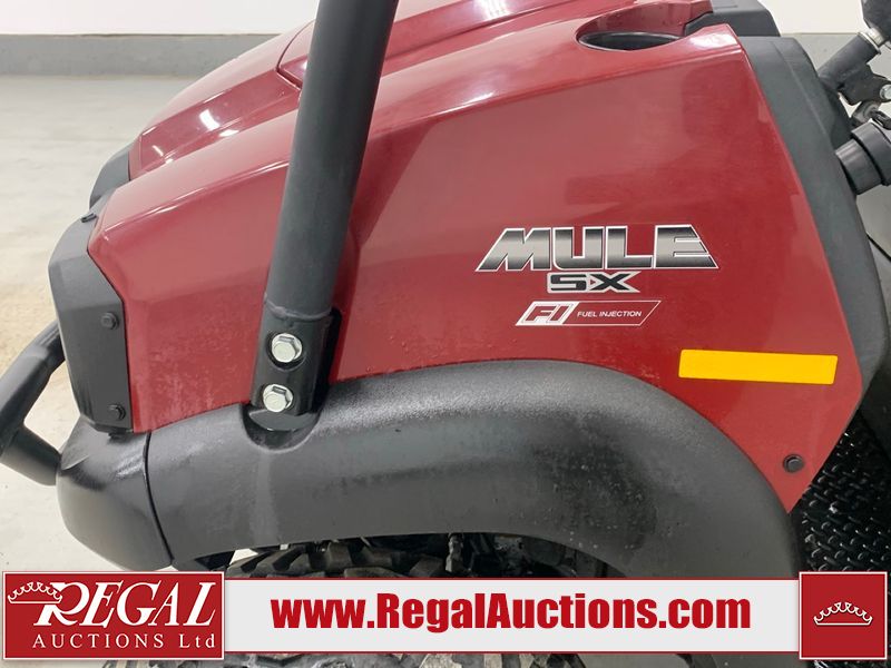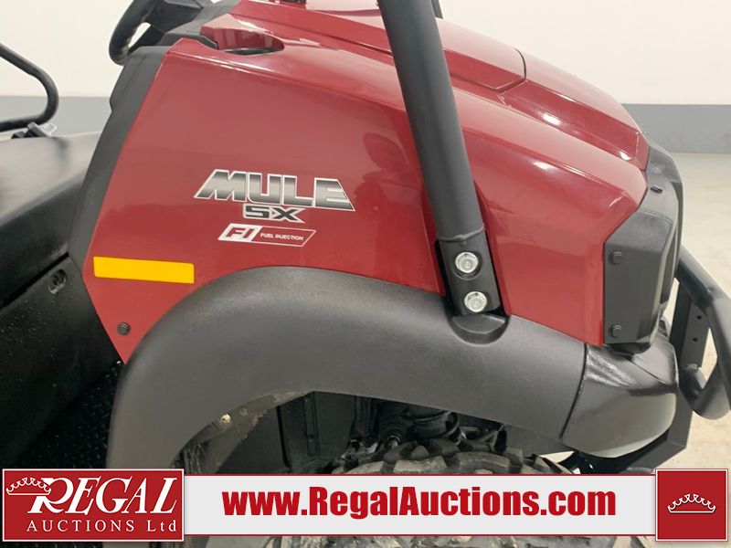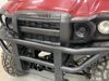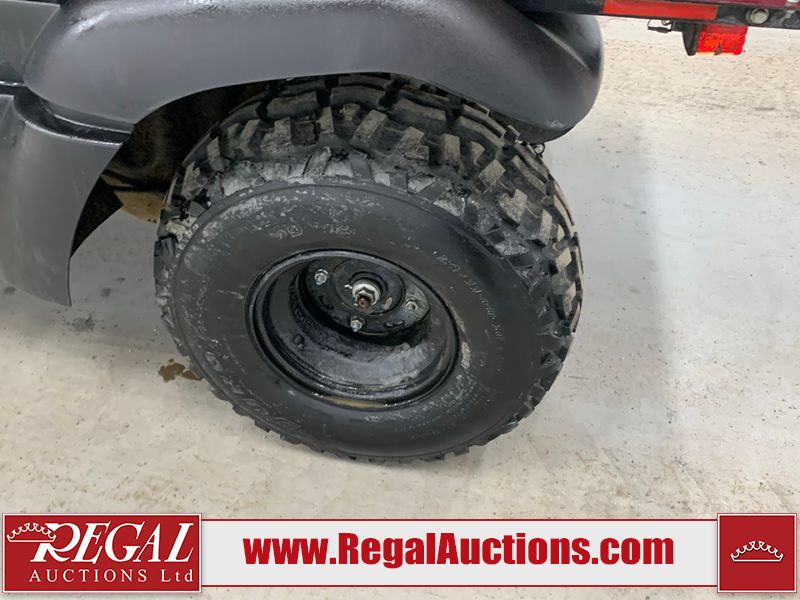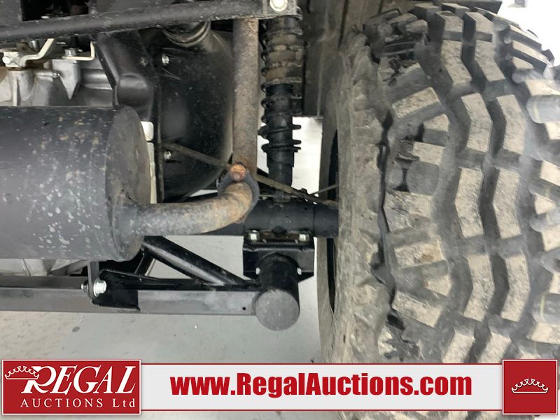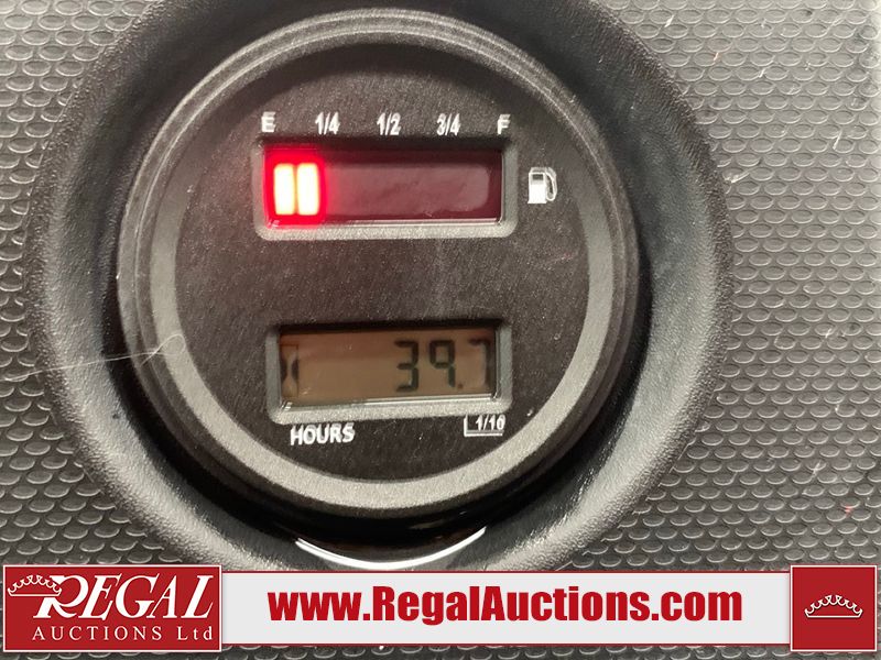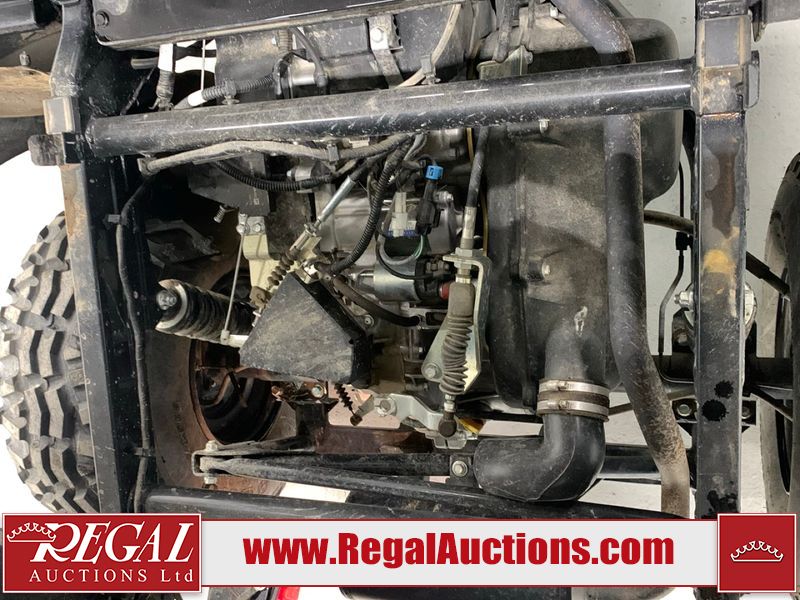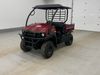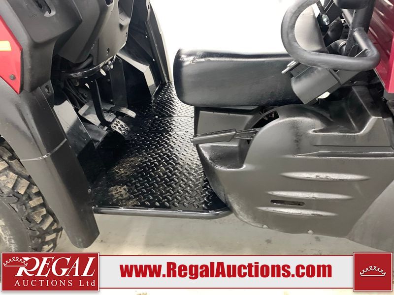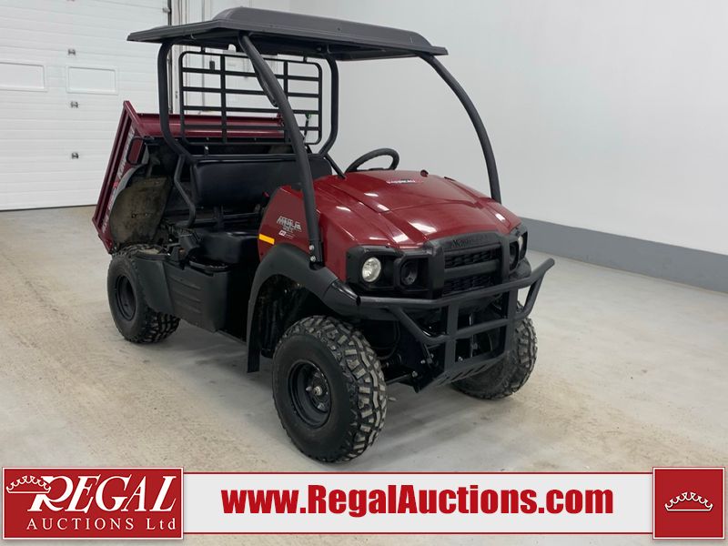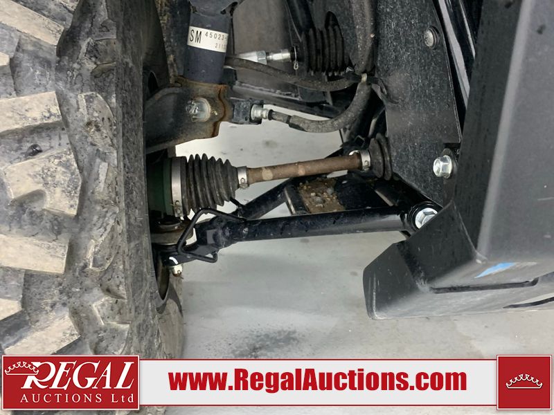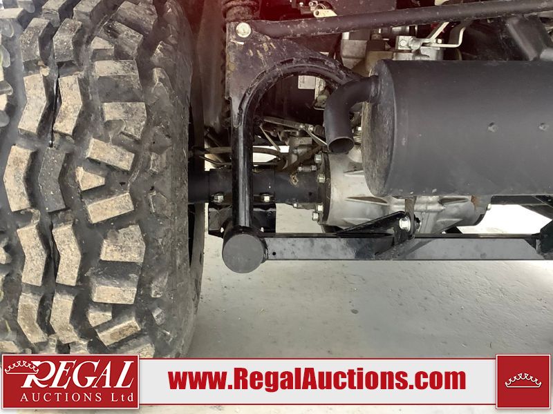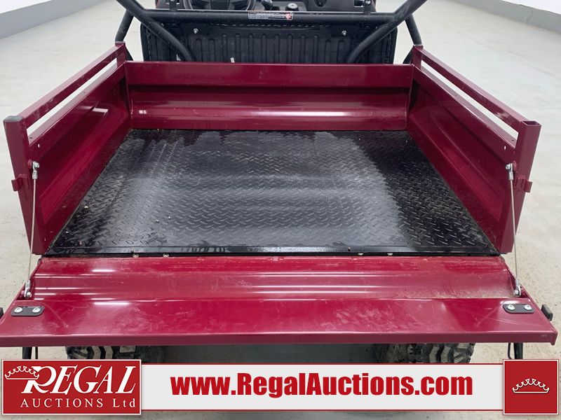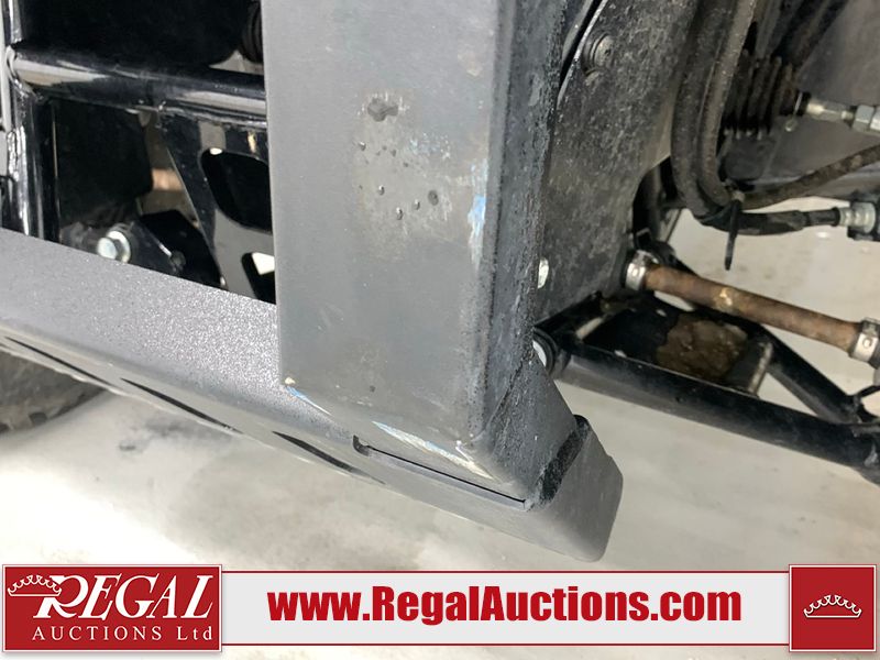 This ATV is a 2022 Kawasaki KF400P model side-by-side. The engine hours show 39 hours. The interior is clean. The leather is cracking in some areas of the seat. The crash bar is scratched. Some plastics are scuffed. Some decals are peeling. This unit starts and runs without a boost. This unit is powered by a 401cc single cylinder, four stroke Air cooled engine and a continuously variable transmission with a shaft final drive. The tires are mounted to alloy rims and appear to be in good enough condition for use. This unit is equipped with a differential lock, and a 2WD/4WD selector.