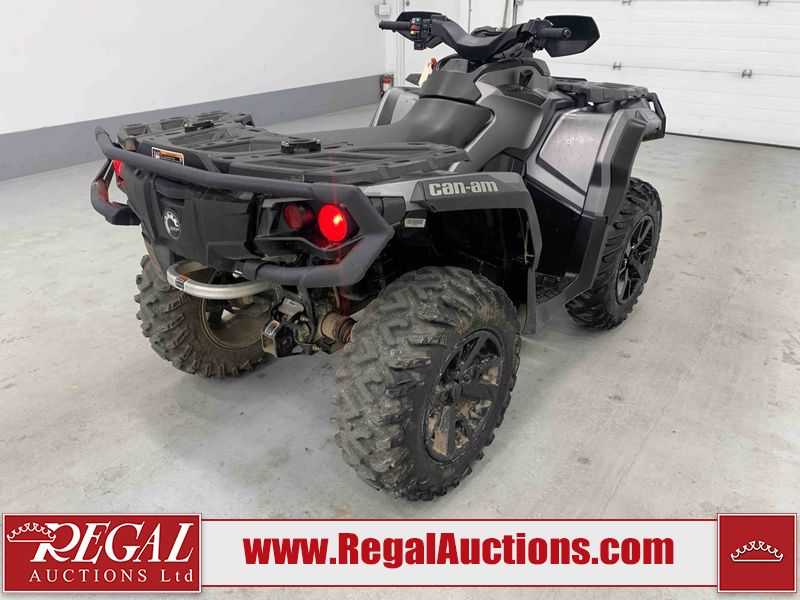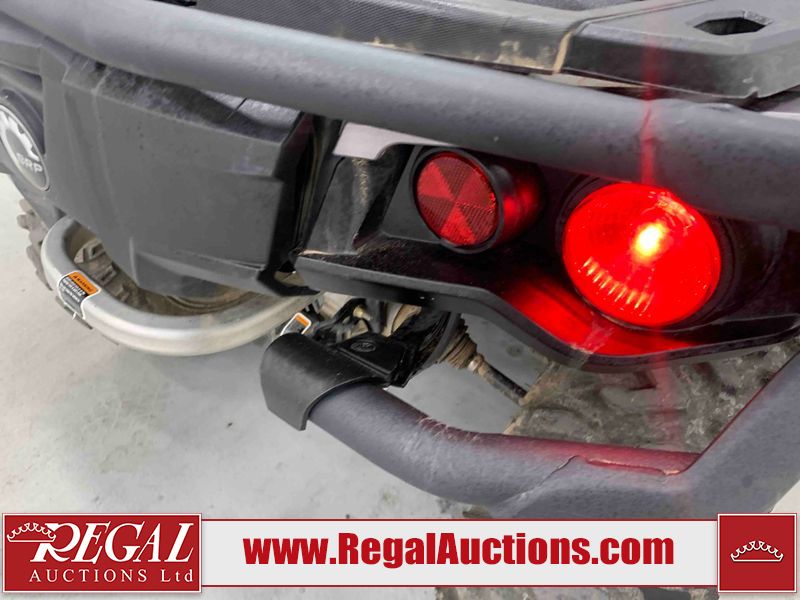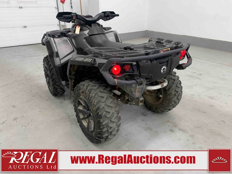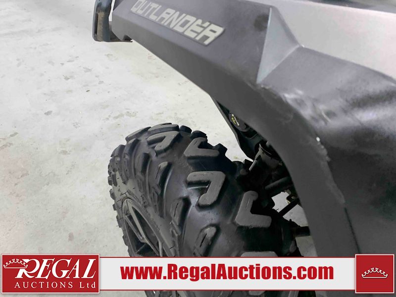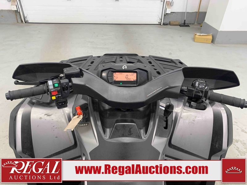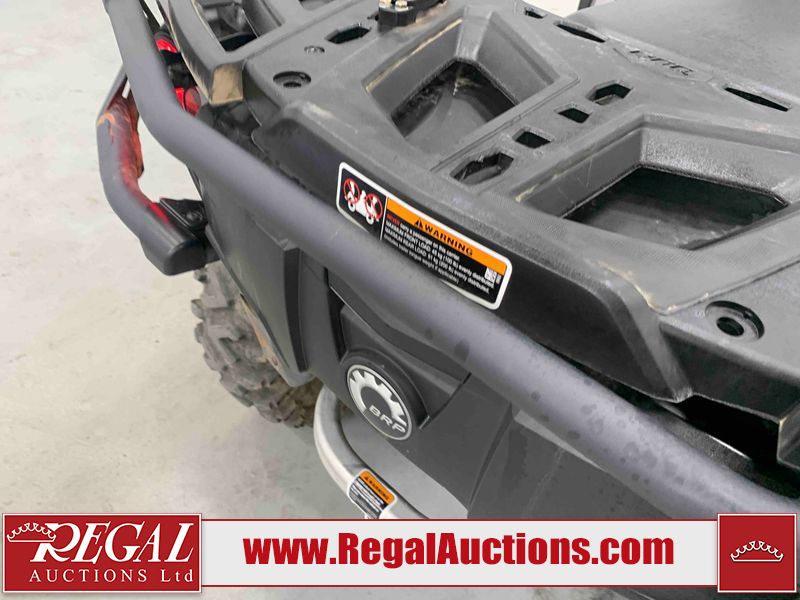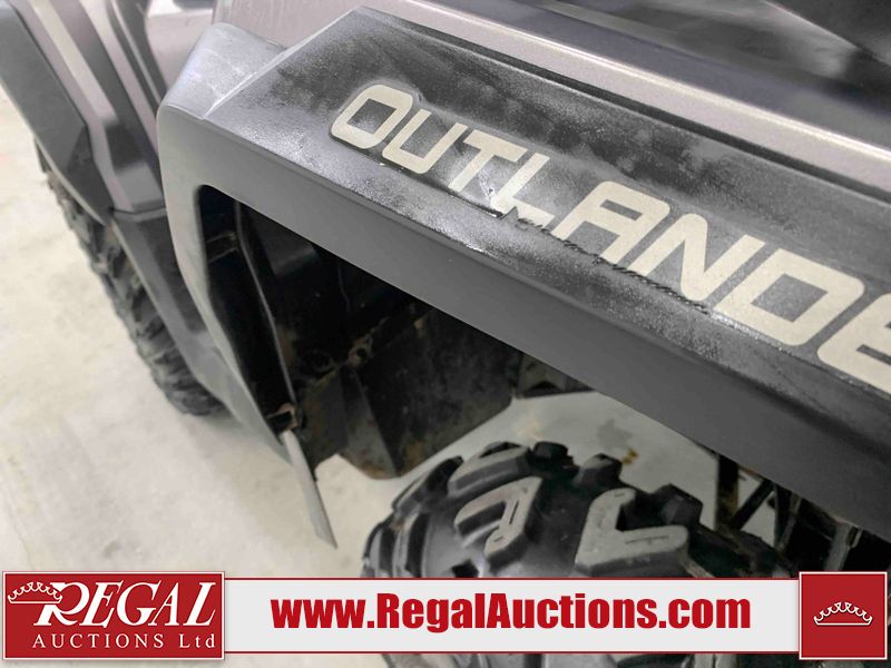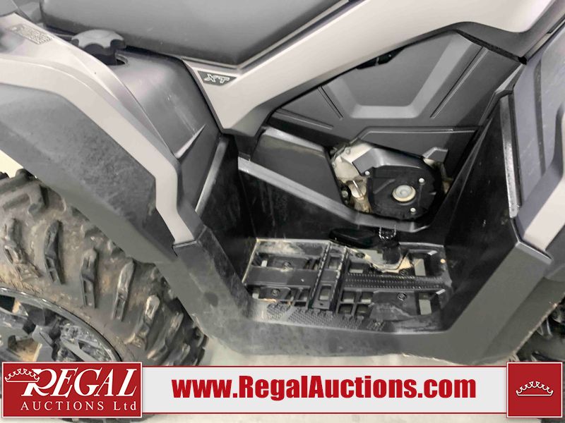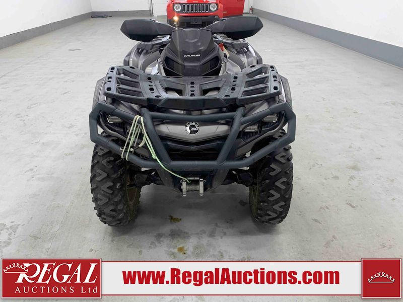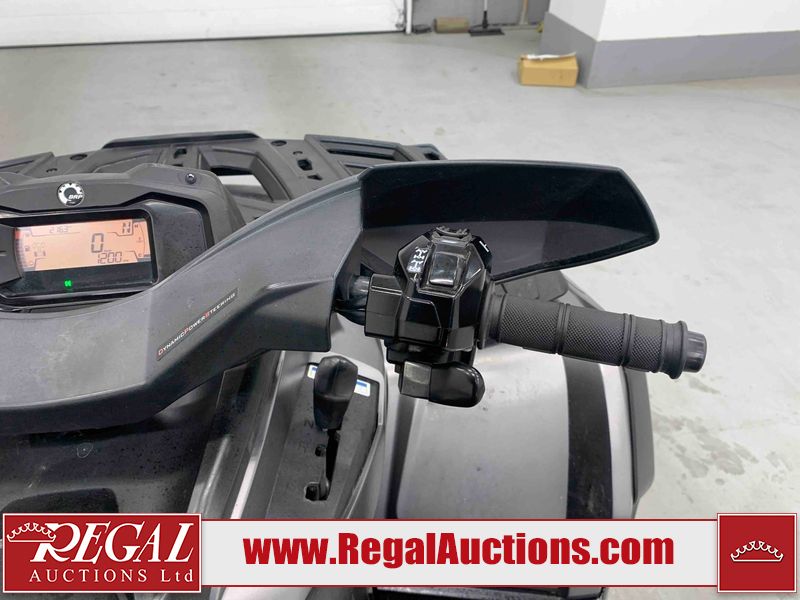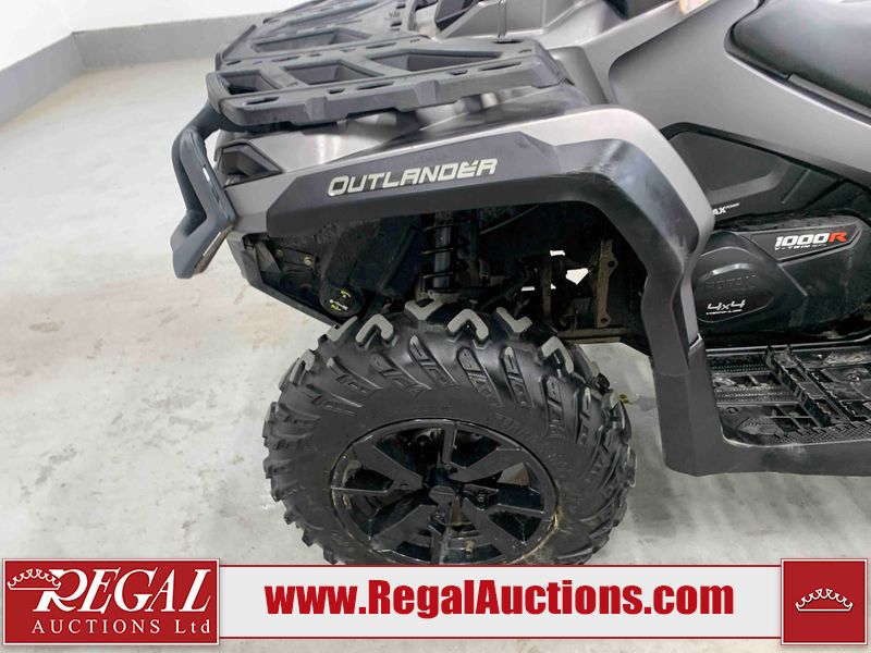 This ATV is a 2023 Can-Am outlander 1000 RXT model. The odometer reads certified 3524 kilometers and 216 engine hours. The seat has a minor tear. The front plastics are showing scratches and scuffs. The winch has been modified, the winch cable is missing. The left front fender has scuffs. The right rear fender is separating. The right rear CV axle boot is sweating. Some decals are peeling. This unit starts and runs without a boost. This unit is powered by a 976cc V twin liquid cooled engine and a continuously variable transmission with a shaft final drive. The tires are mounted to alloy rims and appear to being good enough condition for use. This unit is equipped with a 2WD/4WD selector, and a winch.