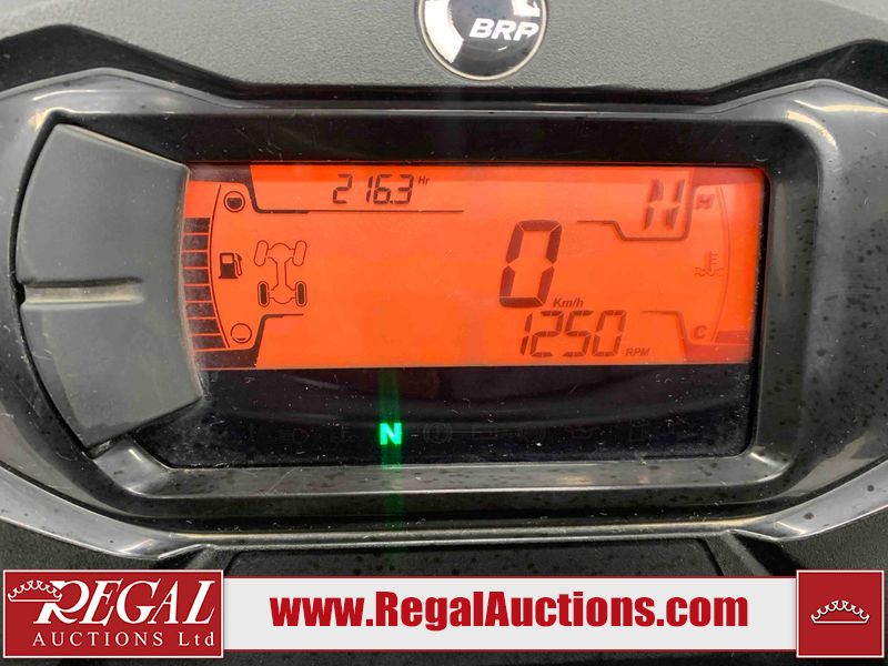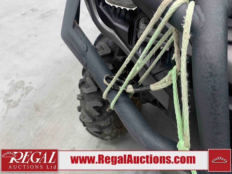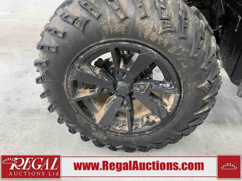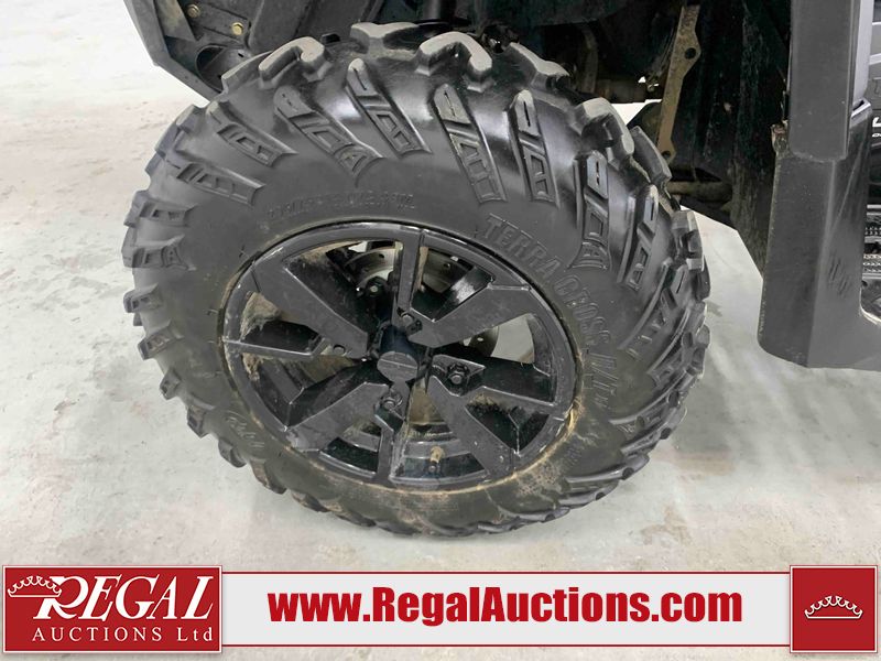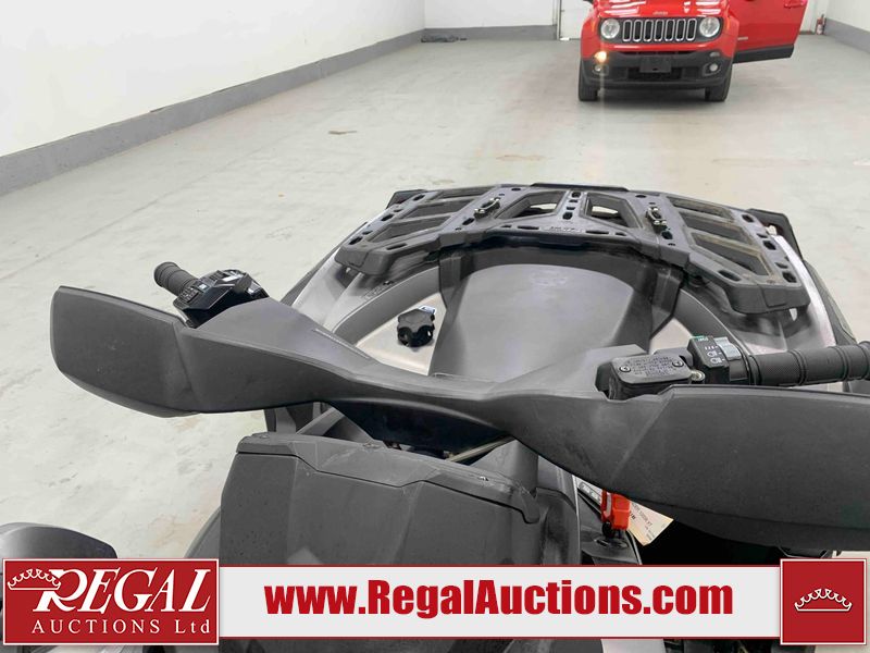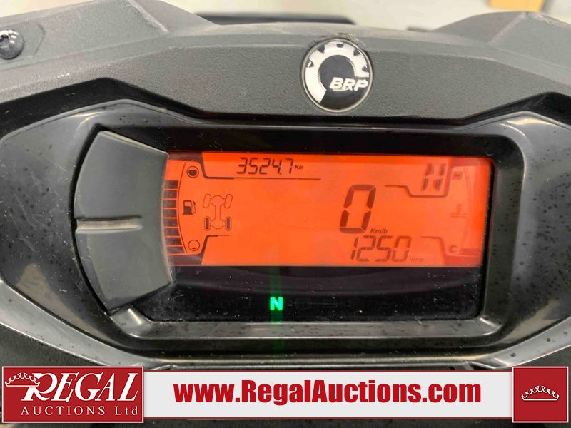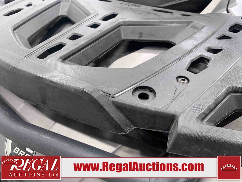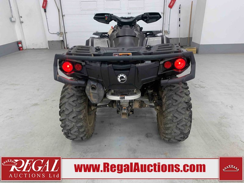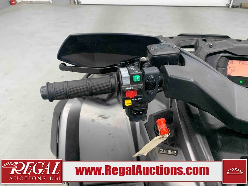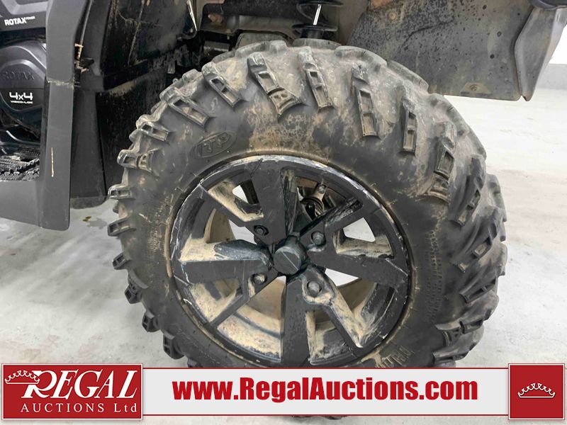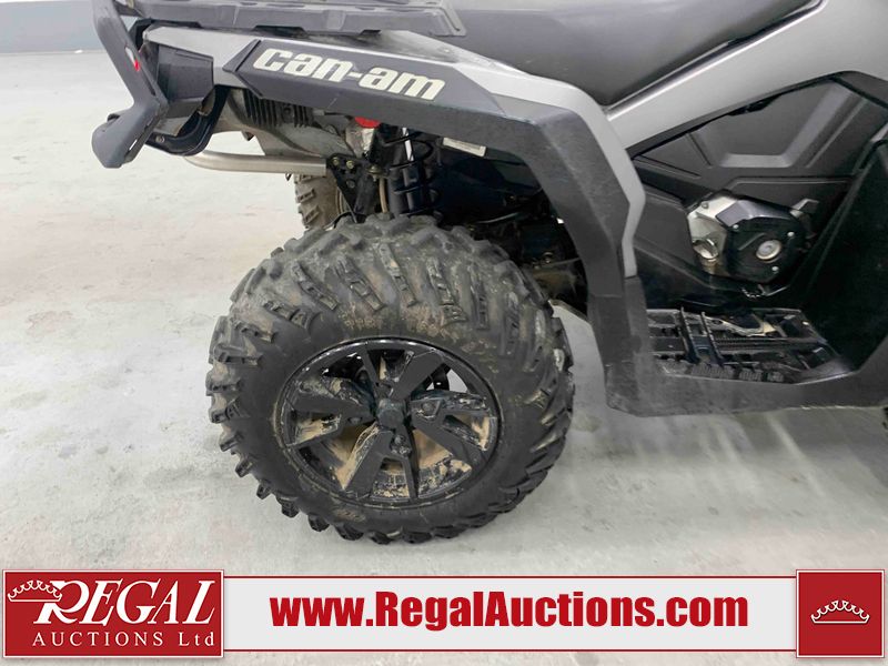 This ATV is a 2023 Can-Am outlander 1000 RXT model. The odometer reads certified 3524 kilometers and 216 engine hours. The seat has a minor tear. The front plastics are showing scratches and scuffs. The winch has been modified, the winch cable is missing. The left front fender has scuffs. The right rear fender is separating. The right rear CV axle boot is sweating. Some decals are peeling. This unit starts and runs without a boost. This unit is powered by a 976cc V twin liquid cooled engine and a continuously variable transmission with a shaft final drive. The tires are mounted to alloy rims and appear to being good enough condition for use. This unit is equipped with a 2WD/4WD selector, and a winch.