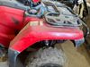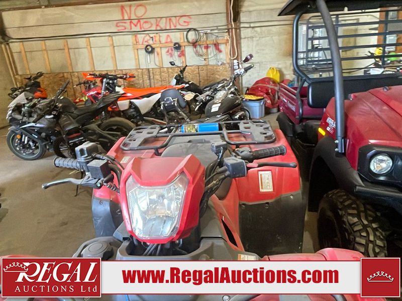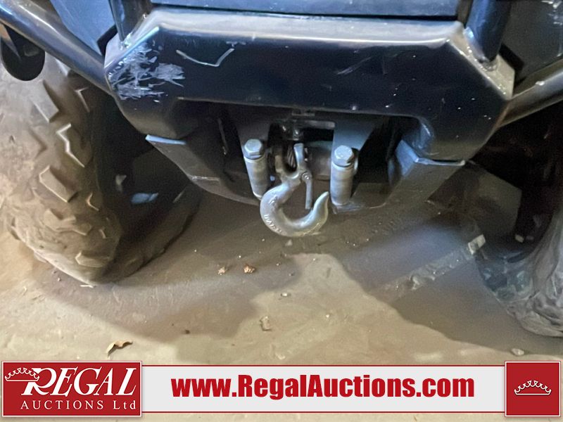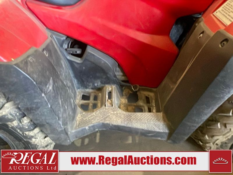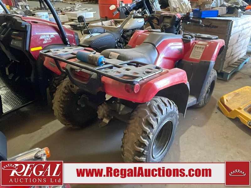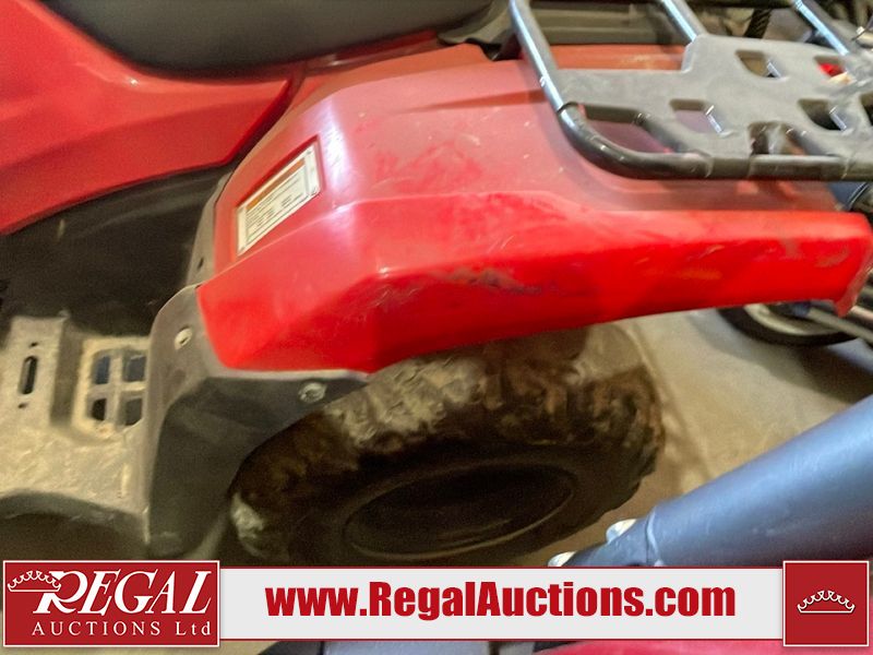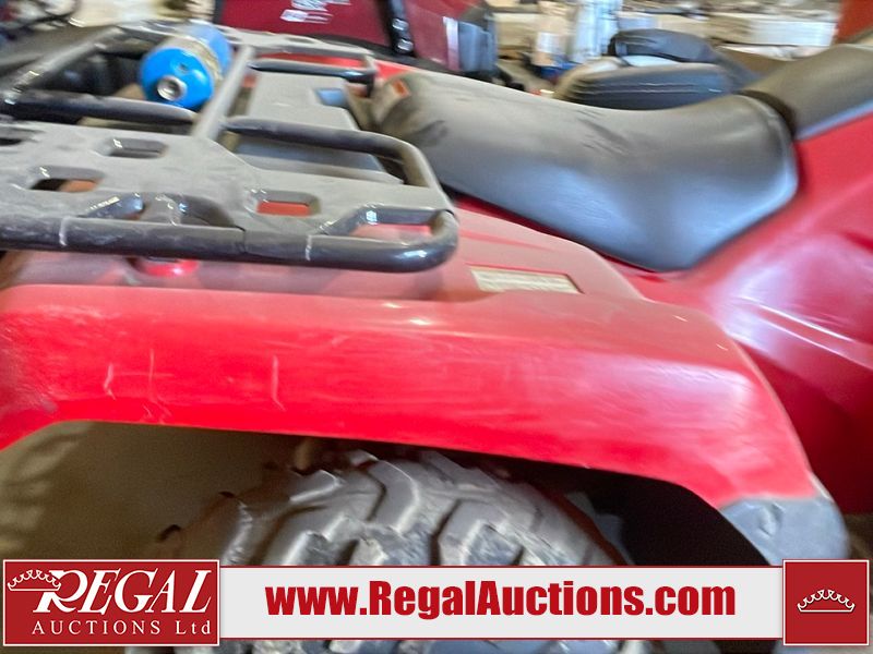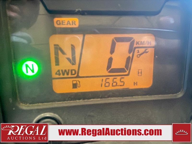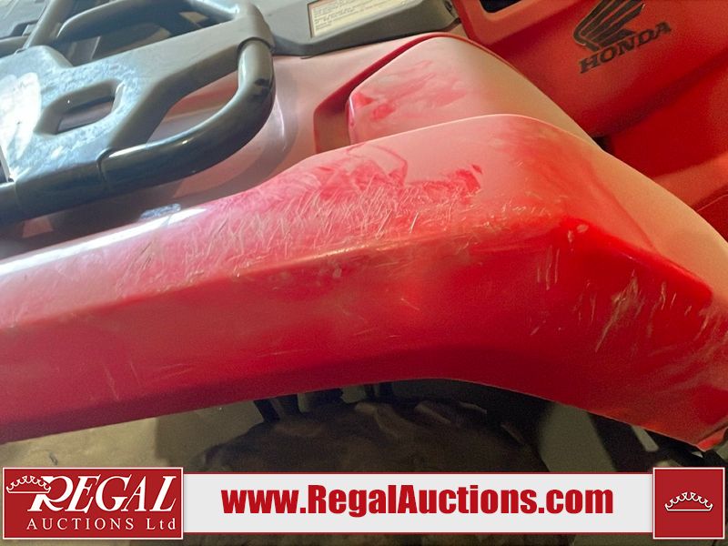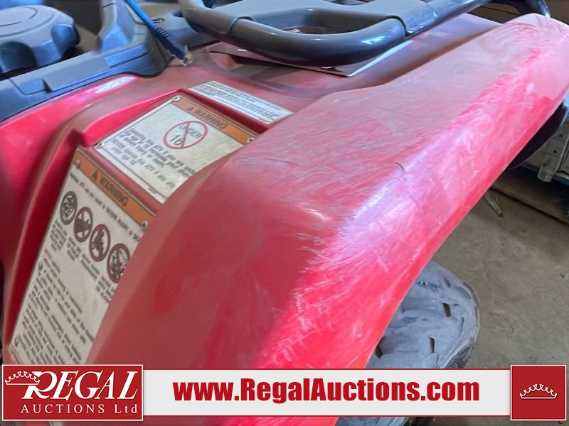 This ATV is a Honda TRX520 FM1 Foreman model. The odometer shows 2536 km and 166 and hours. This unit is dirty and will require a detail. Most plastics are showing scratches and scuffs. The crash bar has peeling paint. This unit starts and runs. This unit is powered by a 518cc single cylinder 4-stroke liquid cooled engine and a 5 speed manual transmission with a shaft final drive. The tires are mounted to alloy rims, the tires will need to be replaced. This unit is equipped with a 2WD/4WD selector, and a winch system.