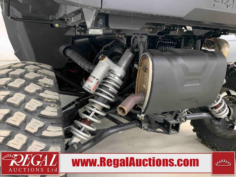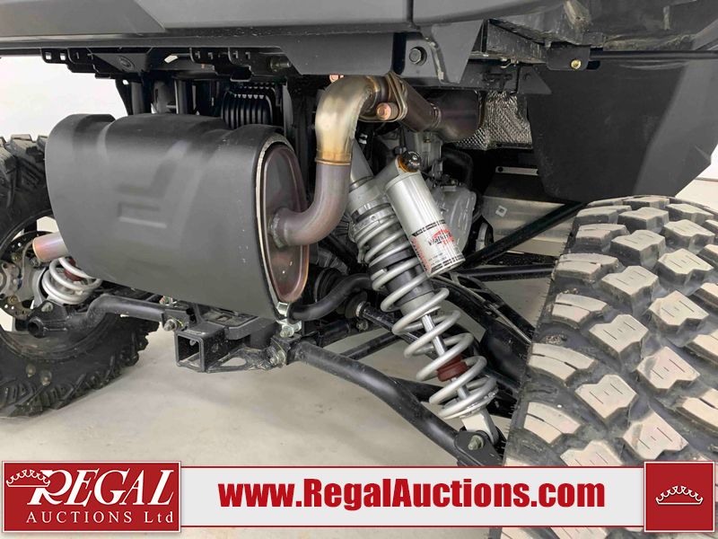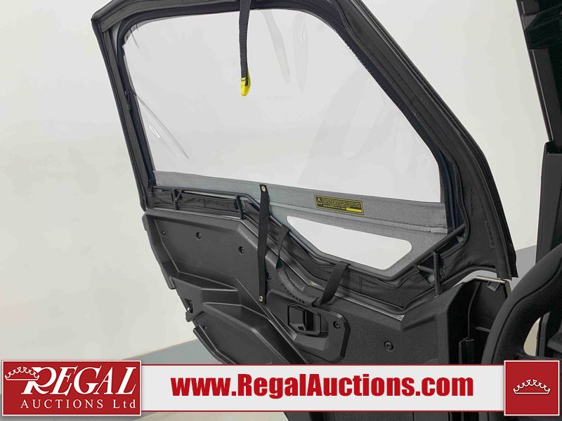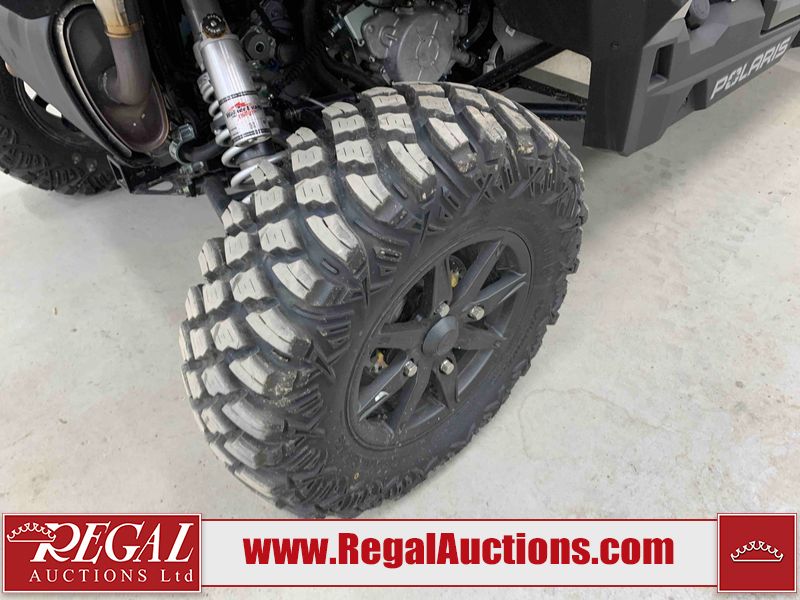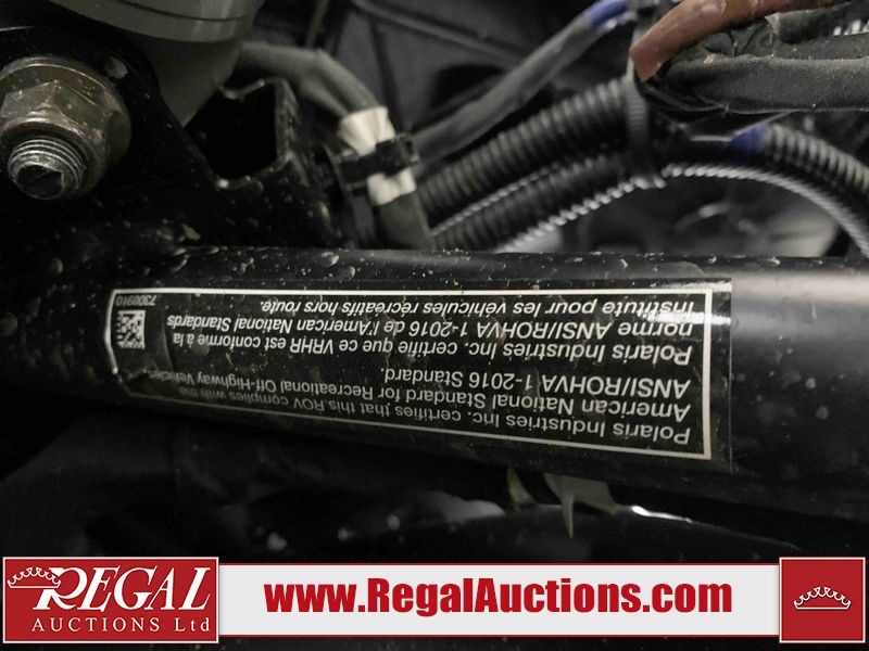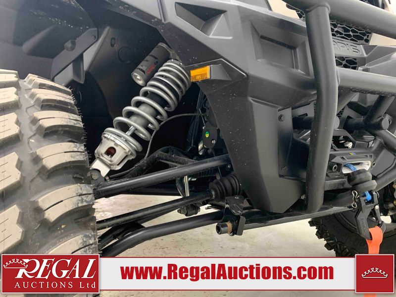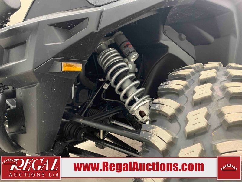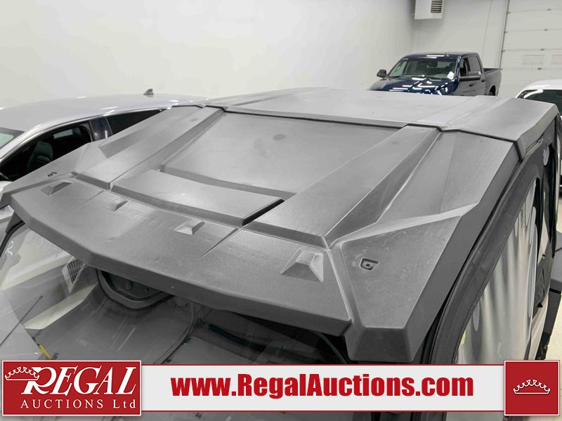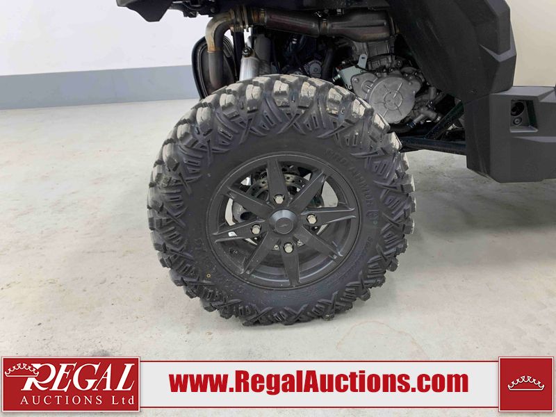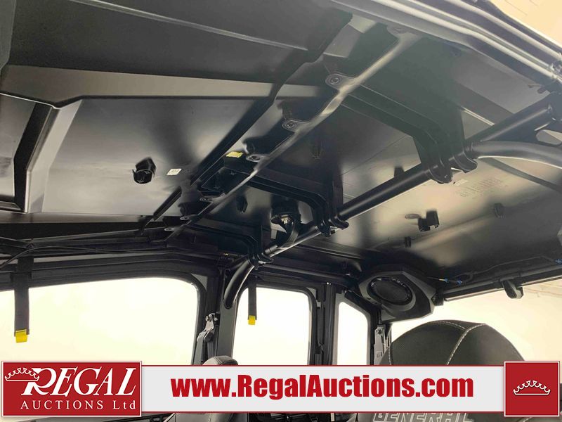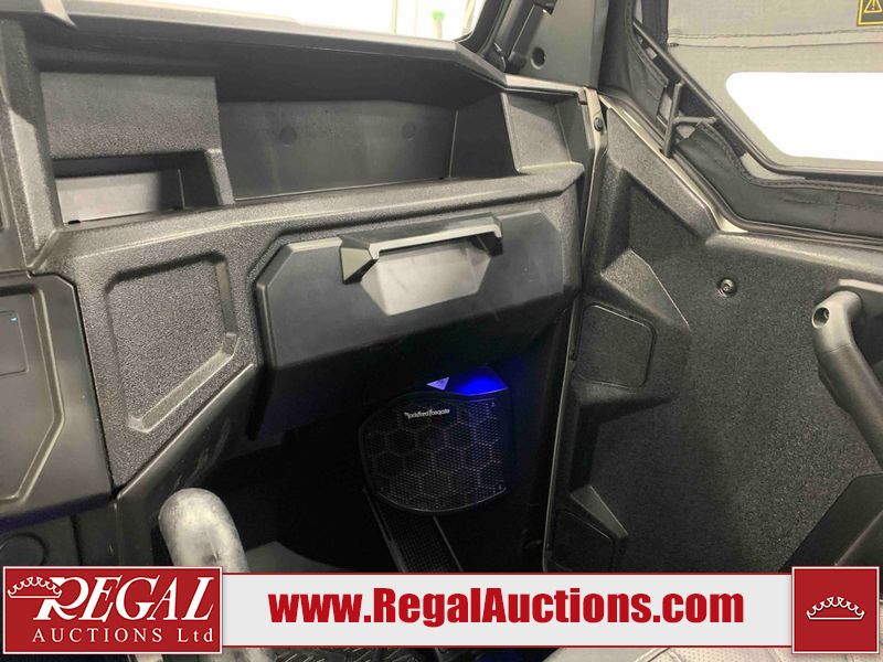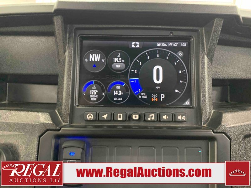 This ATV is a 2024 Polaris General XP 4 1000 Premium. The odometer reads 192 kms and 15 engine hours. The interior is clean. The exterior has minor chips and scratches. The plastic roof has some scuffs and scratches. This unit runs and start without a boost. This unit is powered by a 1000cc liquid cooled two cylinder four stroke engine and a continuously variable transmission with a shaft final drive. The tires have been mounted to alloy rims and appear to be in good enough condition for use. It is equipped with a 4x4 selector, media system, and a backup camera.