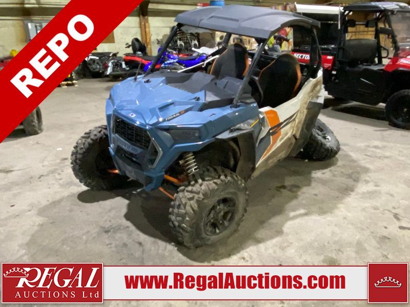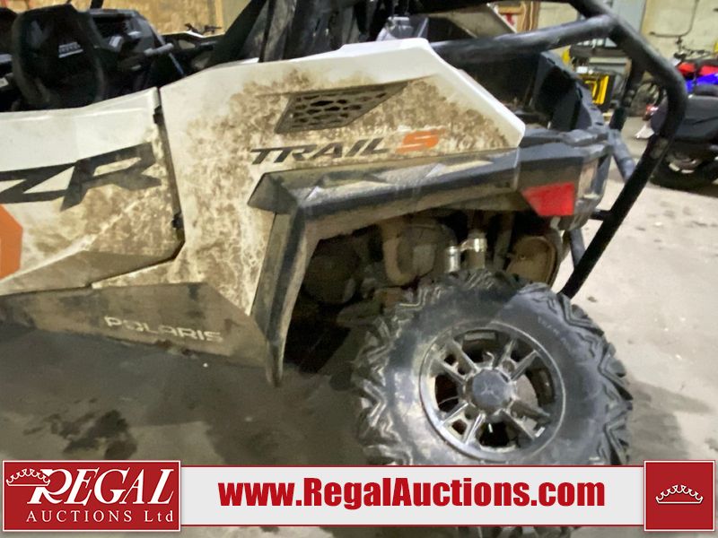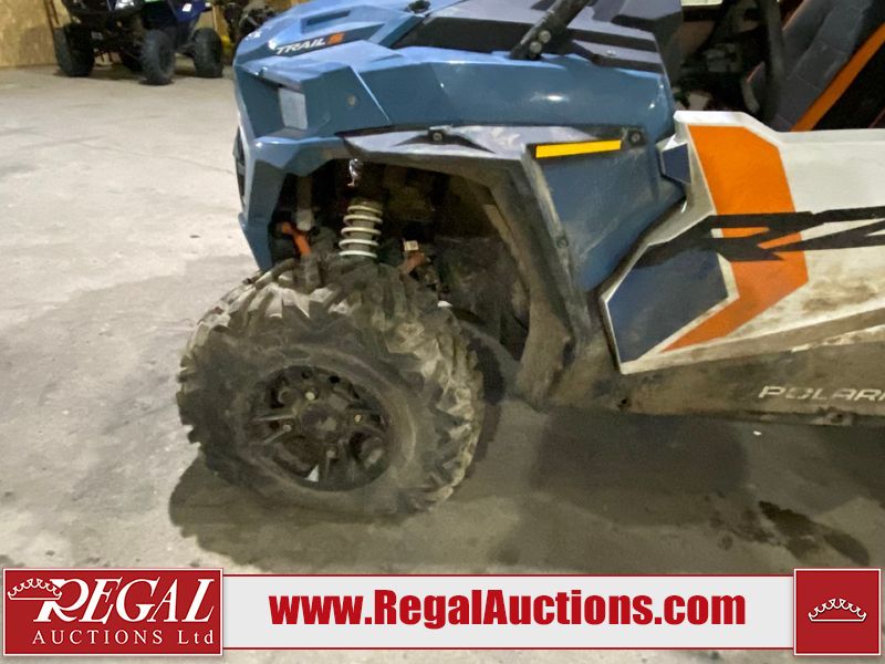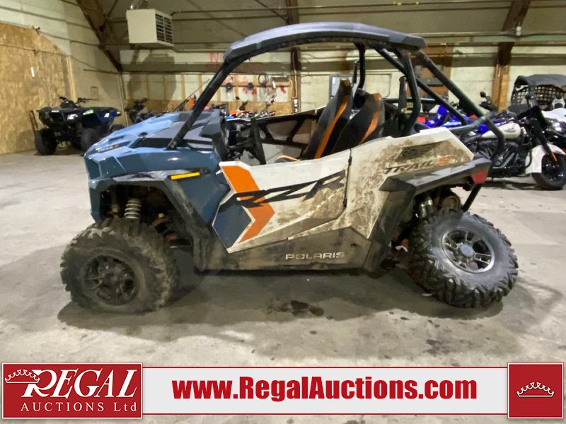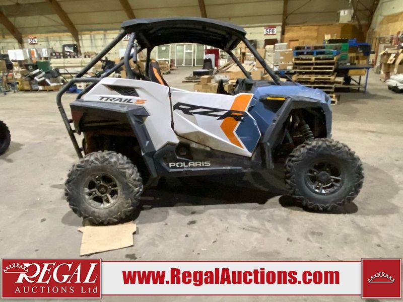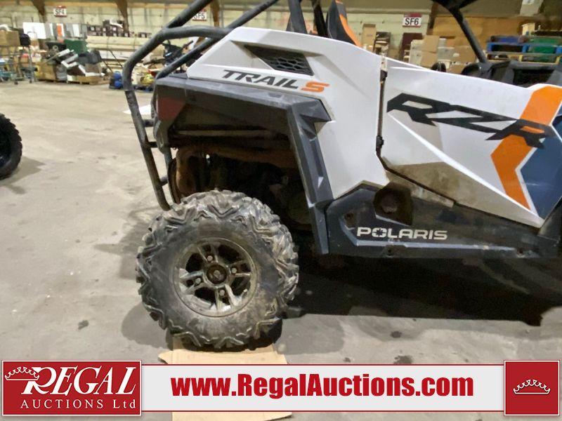 This unit is a 2024 Polaris RZR 900 TRAIL S SPORT. The odometer shows 426 kilometres and 31 engine hours. This unit will require a detail. This unit is covered in dust and dirt, not all damage's can be determined. This unit will have to be towed through the auction. The front driver tire is flat and driver rear tire is dismounted. The front and rear suspension is broken. This unit starts and runs without a boost. It is powered by a 875cc liquid cooled two cylinder, four stroke engine paired and a continuously variable transmission with a shaft final drive. The tires have been mounted to alloy rims. This unit is equipped with rear cargo rack, 2WD/4WD selector, lighting instruments, media system and navigation.