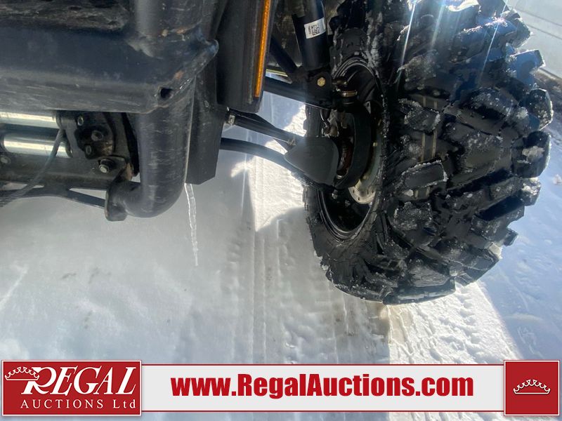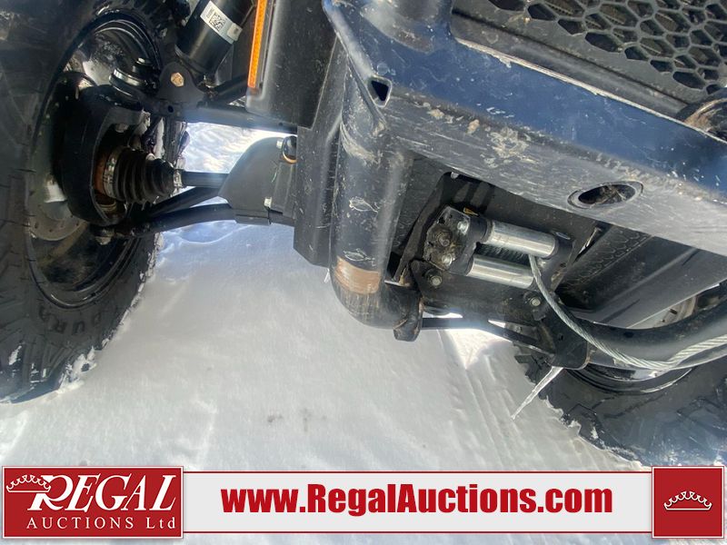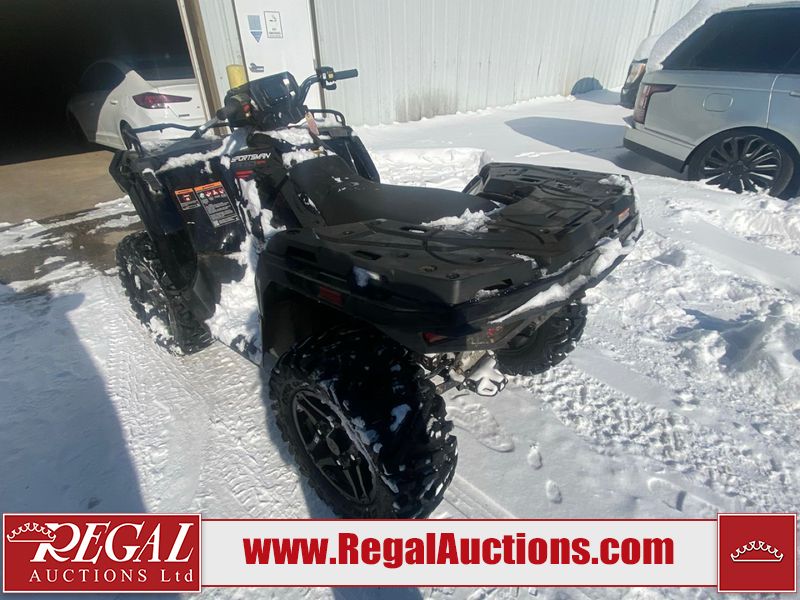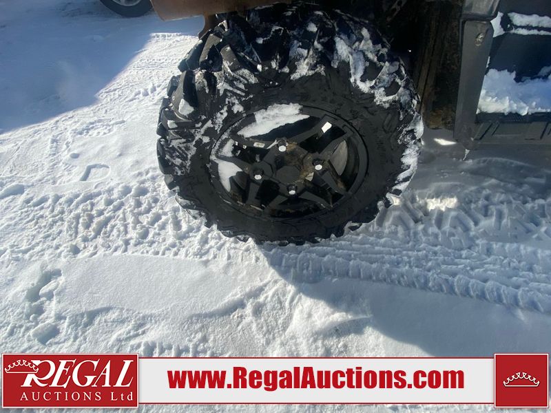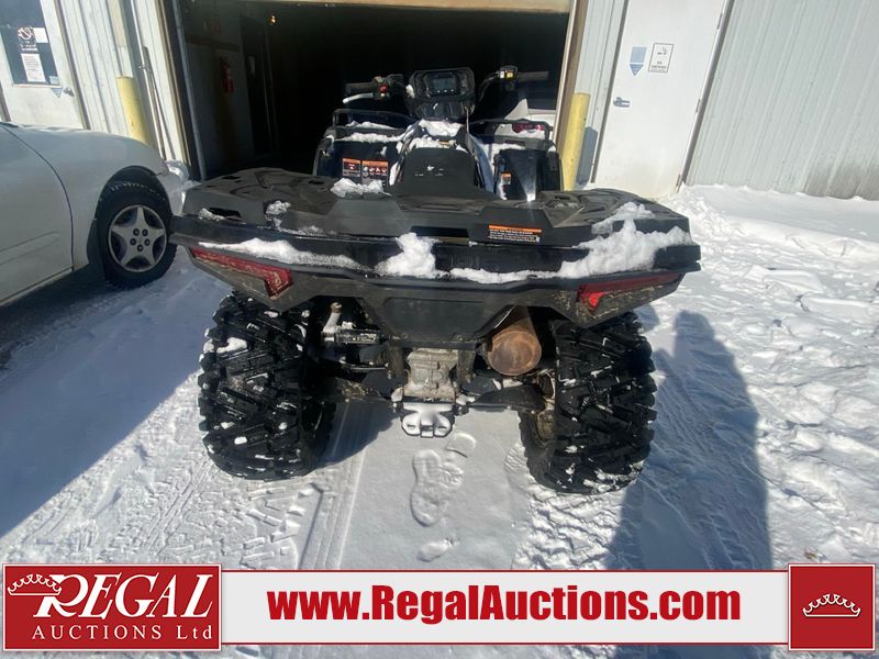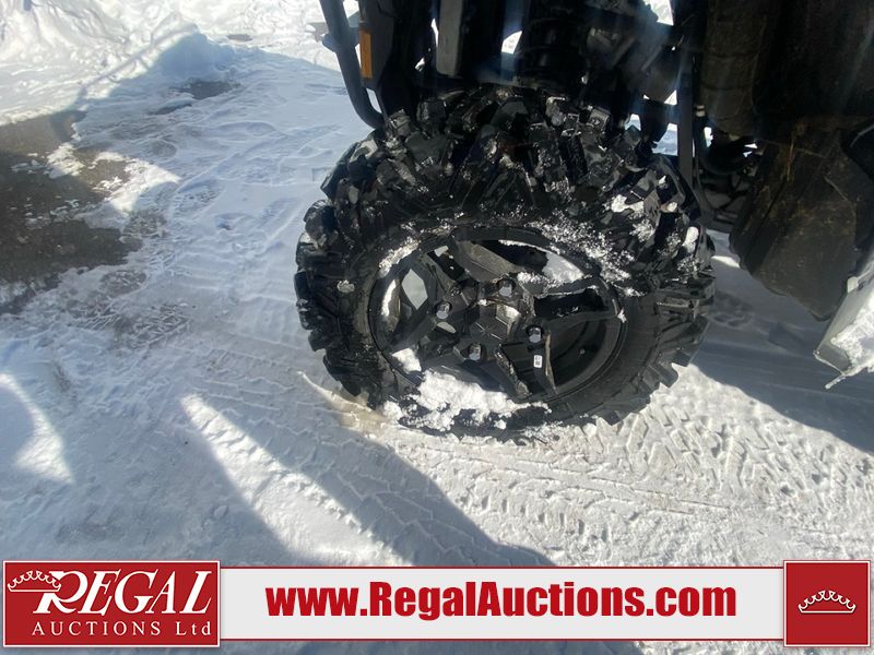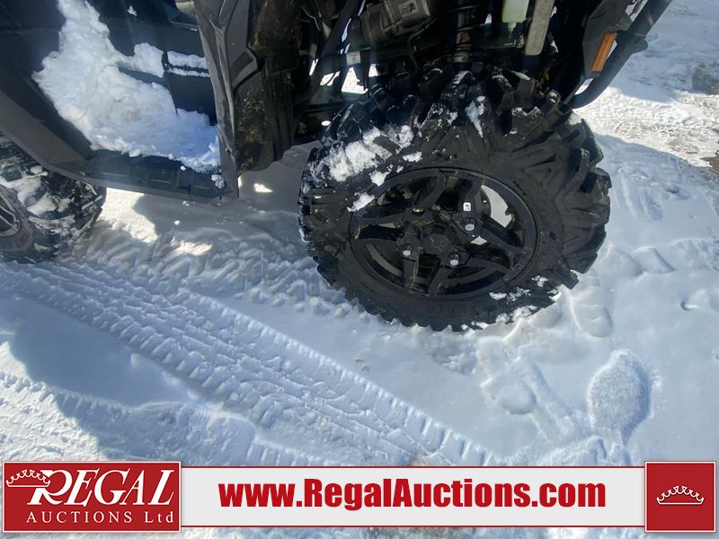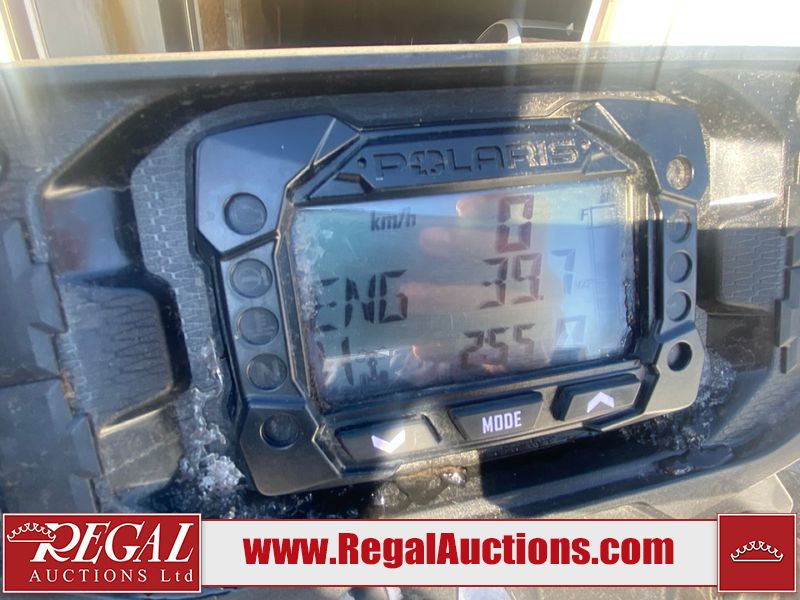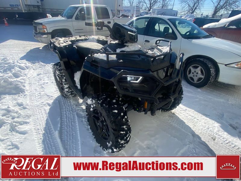 This ATV is a 2024 Polaris sportsman 570 model. The odometer shows 600 km and 39 engine hours. This unit is dirty, not all damages can be determined. Most panels are showing scratches and scuffs. The crash bar has peeling paint. The front suspension is broken. The steering is misaligned. This unit starts and runs without a boost. This unit is powered by 570cc V twin single cylinder two stroke liquid cooled engine and a continuously variable transmission with a shaft final drive. This unit is equipped with a front winch, and a 2WD/4WD selector.