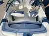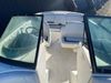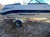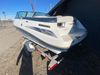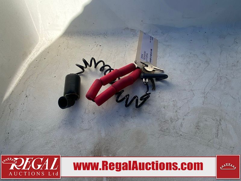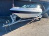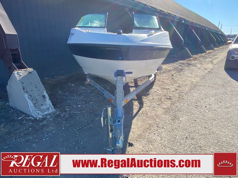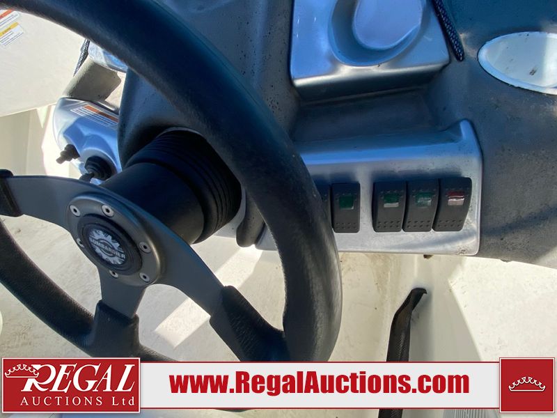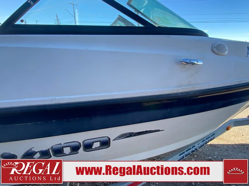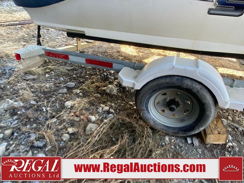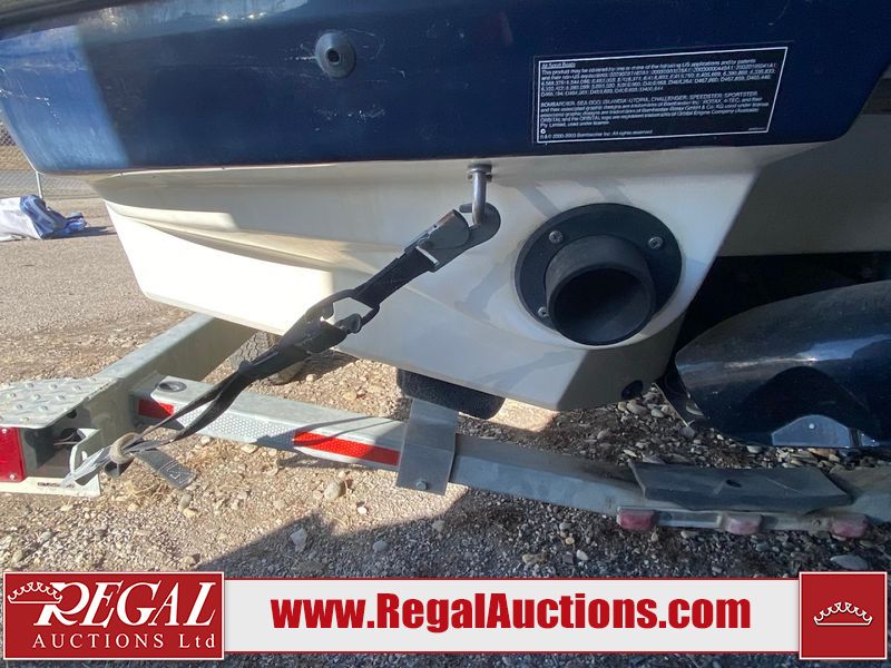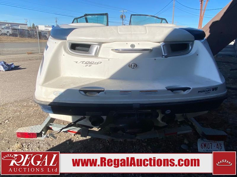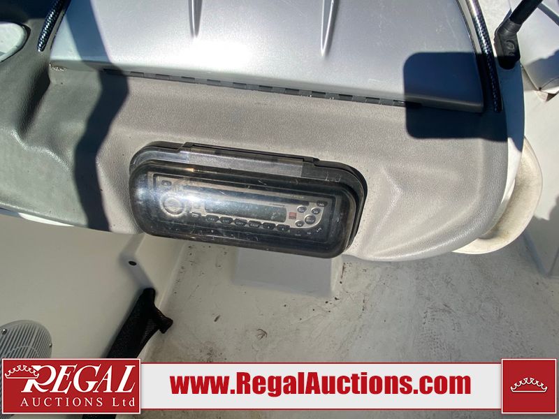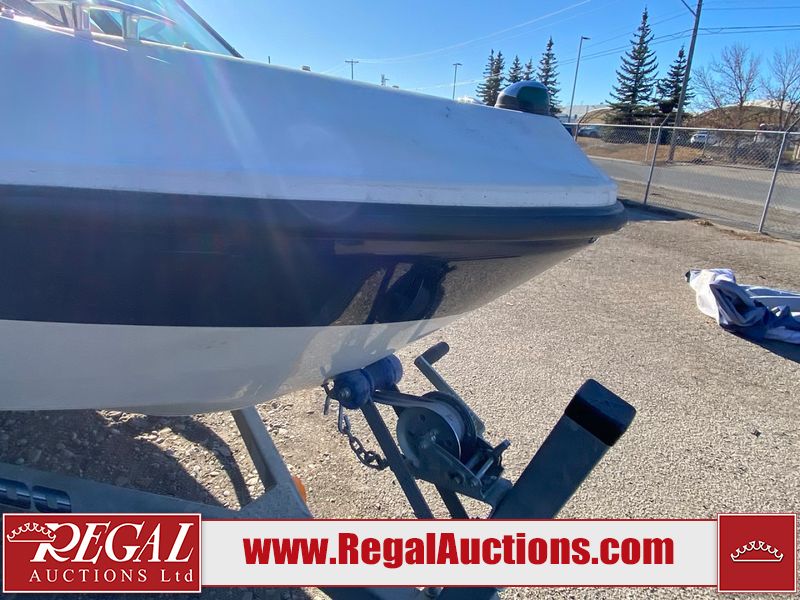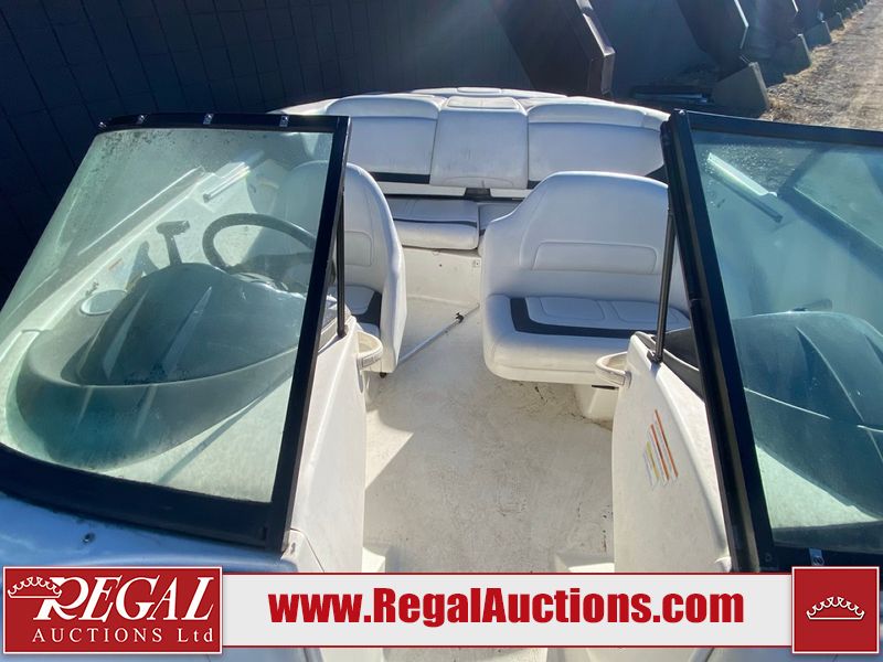 This watercraft is a 18.5' 2004 Sea-Doo Utopia 185 bowrider model with a fibreglass V- Type hull. This unit has a maximum capacity of 8 persons or 1,320 pounds. This unit is not equipped with an hour metre. The interior is in fair overall condition for its year. The seats are showing some signs of wear. The hull has scratches, scrapes, and some fading. The bow has several large chips. Some decals are peeling. The boat comes with a single axle trailer. The tires have been mounted to steel rims and appeared to be in good enough condition for use. The has not been tested. This unit is powered by a 2 stroke 200 HP 2.5L Mercury OptiMax 200 V6 engine with a mercury jet drive. The inlet and Jet unit appear to be in good enough condition for use. This unit is equipped with a stereo system and a Bimini top.