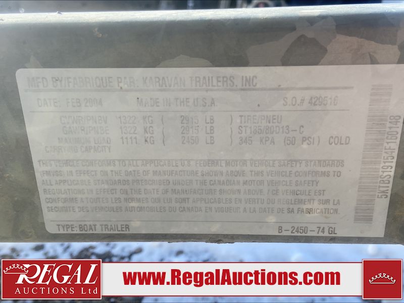 * 2004 MERCURY OPTIMAX 200 JET DRIVE * 2004 KARAVAN TRAILER: 6KTBS19154F160148 *