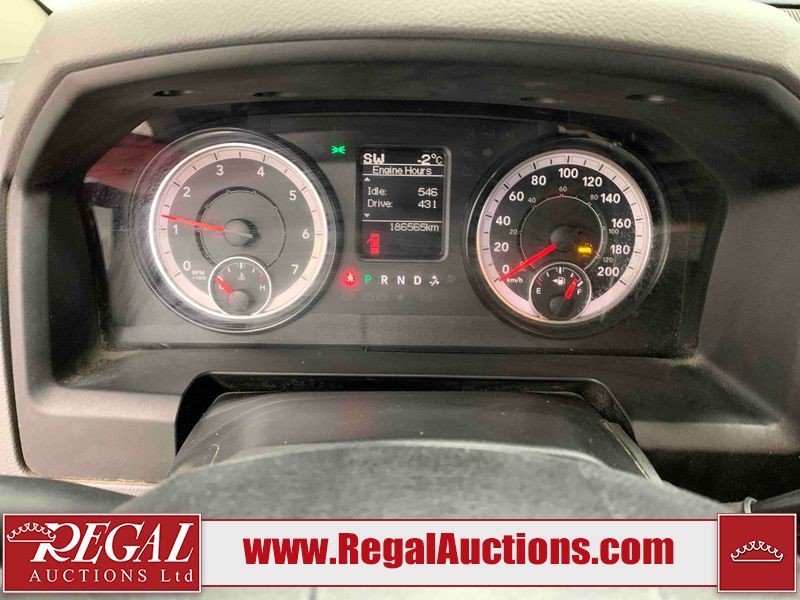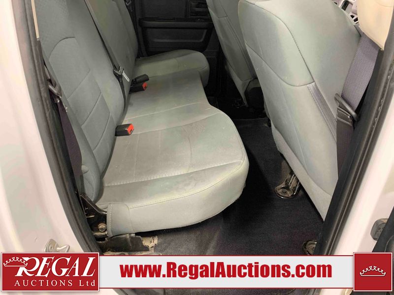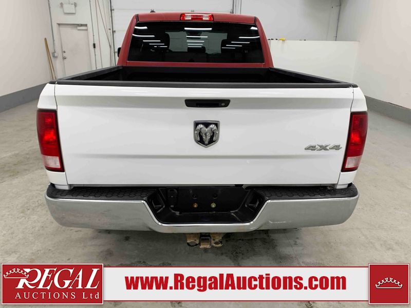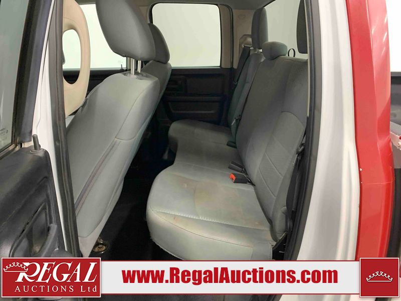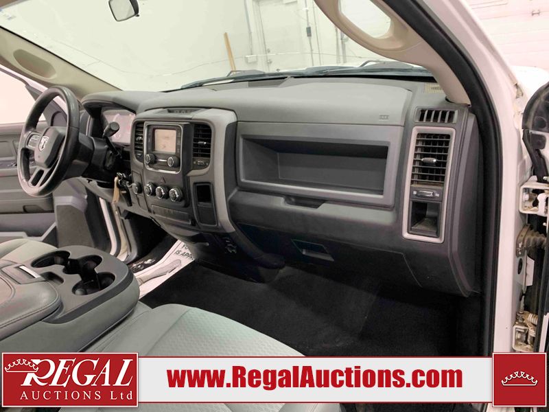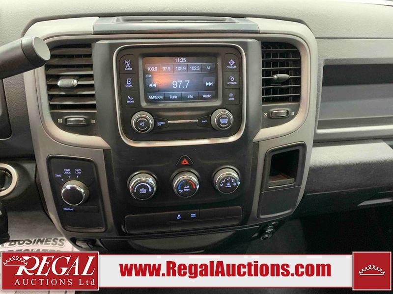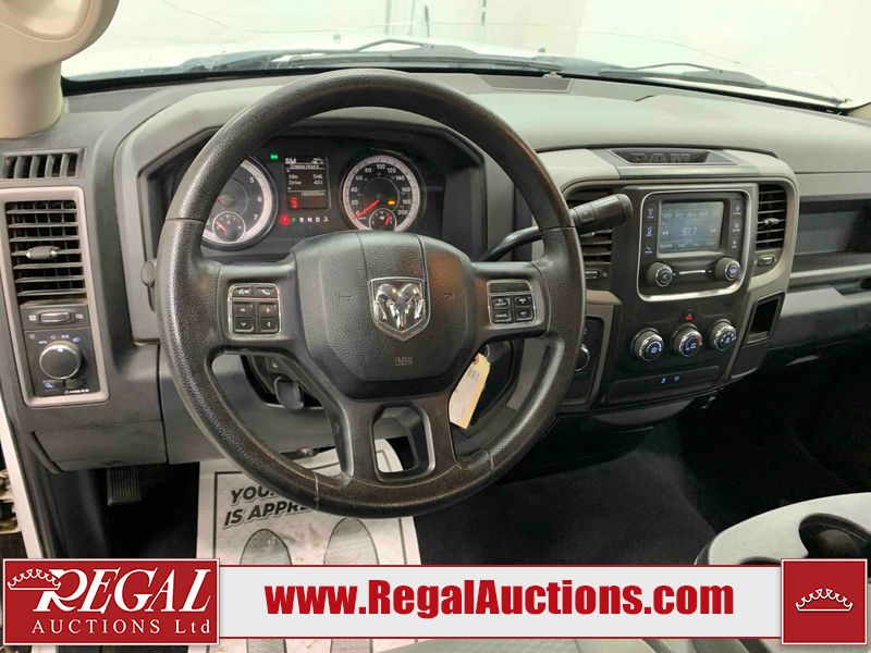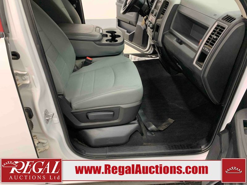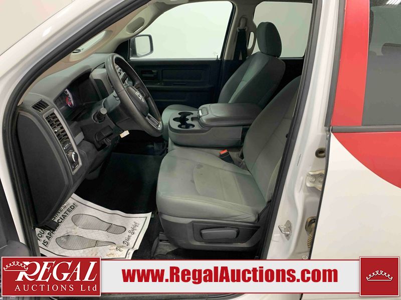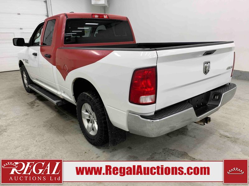 This 2017 RAM 1500 QUAD CAB 4WD is powered by a 5.7L V8 gasoline engine and an automatic transmission. It is equipped with four-wheel drive. The truck has seats for 6 people. The mileage is average considering the truck's age. The body looks to be in fair condition overall. There are chips on the front bumper, hood, left front fender, left rear fender, and right rear fender. There is incidental rust on the front bumper, left rear fender, and tailgate. There is minor dent damage on the front bumper and hood. There is paint peeling on the hood. There are scratches on the left rear fender, rear bumper, tailgate, and right rear fender. There are very minor chips in many areas around the body. There are very minor scratches in some areas around the body. There is very minor dent damage on the left rear fender. The interior looks to be in good condition overall. The driver's seat is worn. The driver's seat and rear seats are stained. The windshield is cracked. All of the tires have lots of tread remaining. This truck is being sold by the fleet department of a corporation or government body. The vehicle will be sold with the following declarations: Fleet Vehicle (See Footnote 1). Footnotes: 1) This vehicle is a commercially owned work vehicle. Regal Auctions Ltd. makes no guarantee or warranty, either express or implied, with respect to the data provided in this report. The information has been provided from the consignor and from sources generally believed to be reliable, however the accuracy of this information cannot be guaranteed by Regal Auctions.