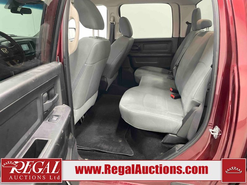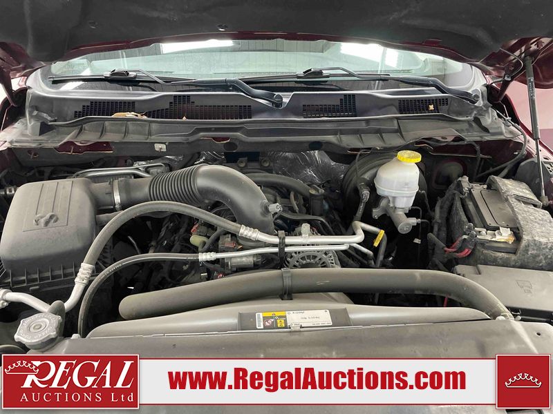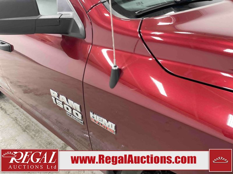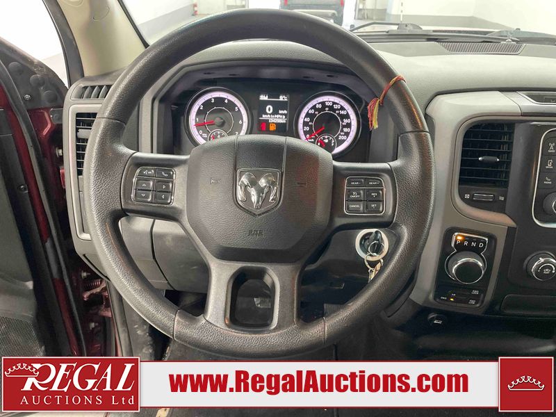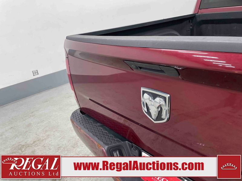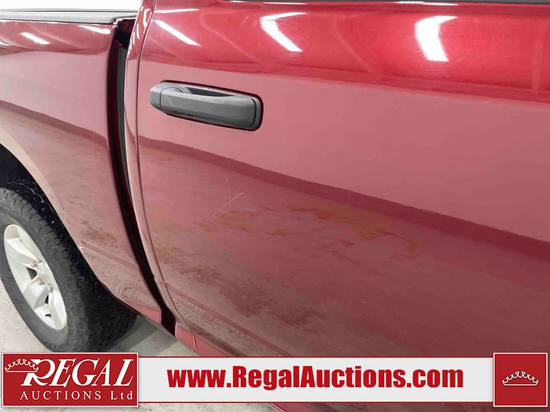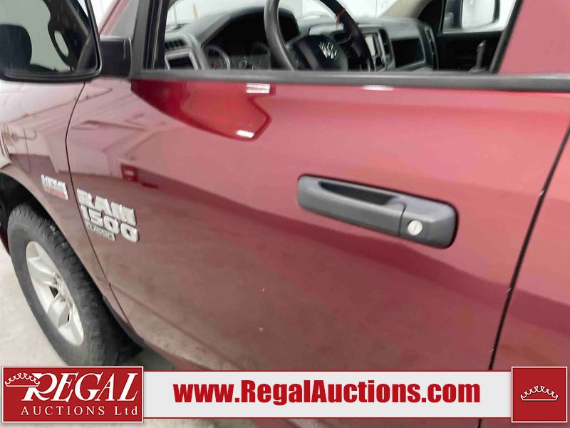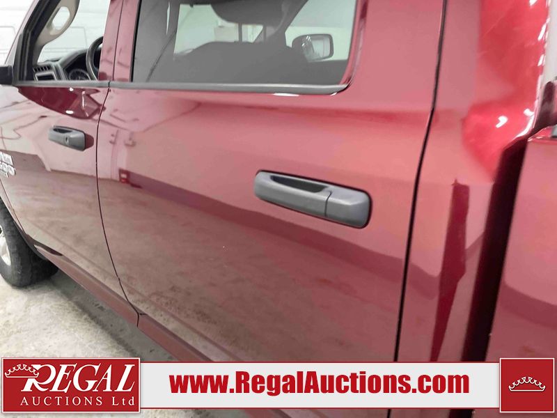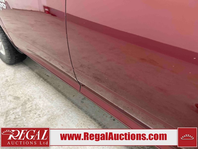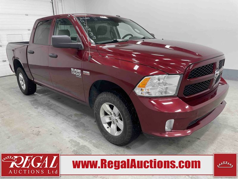 This 2020 RAM 1500 CLASSIC EXPRESS CREW CAB SWB 4WD 5.7L is powered by a 8 cylinder gasoline engine and an automatic transmission. It is equipped with four wheel drive. The truck has seats for 6 people. The truck has high mileage for its age. The vehicle has high value options including a backup camera. The body looks to be in rough condition overall. The front bumper is cracked. The front bumper has been repainted poorly. There is extensive paint peeling on the rear bumper. There are minor chips on the front bumper, grille, hood, roof, left front fender, left front door, left rear door, left rear fender, rear bumper, right rear fender, right rear door, right front door, and right front fender. There are scratches on the hood, left front door, left rear fender, rear bumper, tail gate, right rear fender, right rear door, and right front door. There are very minor scratches in some areas around the body. There are very minor chips on the tail gate. The interior looks to be in fair condition overall. The rear seats are stained. The doors are dirty. The carpet is dirty. There is carpet torn damage to the interior. The windshield is chipped. The front tires are both worn. The rear tires both have lots of tread remaining. The Rims have been replaced with older style ram rims, the factory alloys are missing.