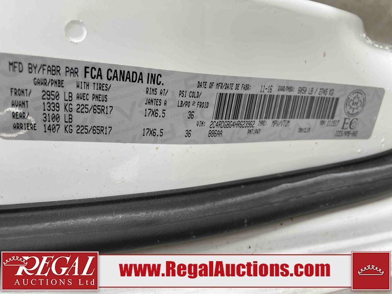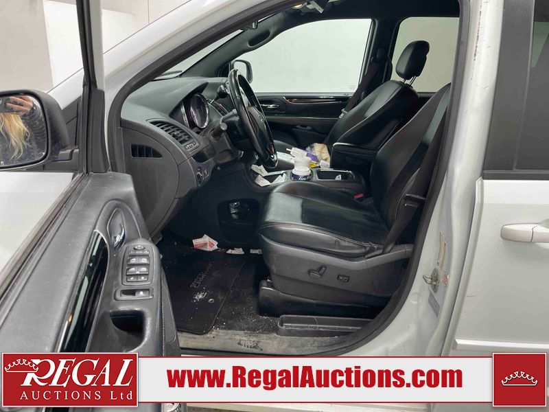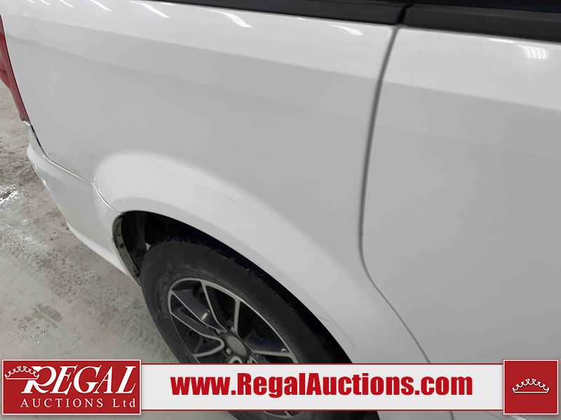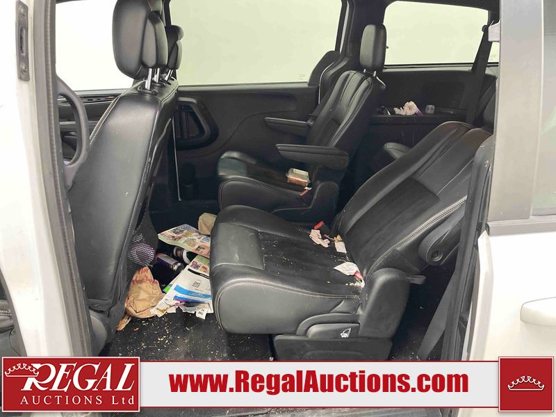 This 2017 DODGE GRAND CARAVAN SXT PREMIUM PLUS 4D VAN FWD 3.6L is powered by a 6 cylinder gasoline engine and an automatic transmission. The van has seats for 7 people. The van has low mileage for its age. The vehicle has high value options including leather upholstery, power seats, a DVD Player, and a backup camera. The Check Engine and Tire Pressure lights are on. The alternator is making a grinding/clunking. The body looks to be in rough condition overall. There is misaligned damage to the front bumper. The rear bumper is cracked. There is misaligned damage to the rear bumper. There is noteworthy paint overspray on the front bumper, left front fender, left front door, rear bumper, and right front door. There is conspicuous paint peeling on the hood and left front door. There are minor chips on the front bumper, grille, and left front door. There are minor scratches on the front bumper, hood, left front fender, left front door, left rear door, rear bumper, right rear fender, and right front door. There is rust on the roof and right front door. There is dent damage on the left front fender and left front door. There is minimal paint peeling on the left front fender. There are very minor chips in many areas around the body. There are very minor scratches in many areas around the body. There is very minor dent damage on the right front fender. The left front window trim is broken. The interior looks to be in fair condition overall. The driver's seat, passenger seat, and rear seats are stained. The doors are worn. The carpet is dirty. The windshield is cracked. All of the tires have lots of tread remaining.