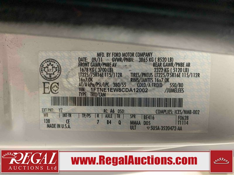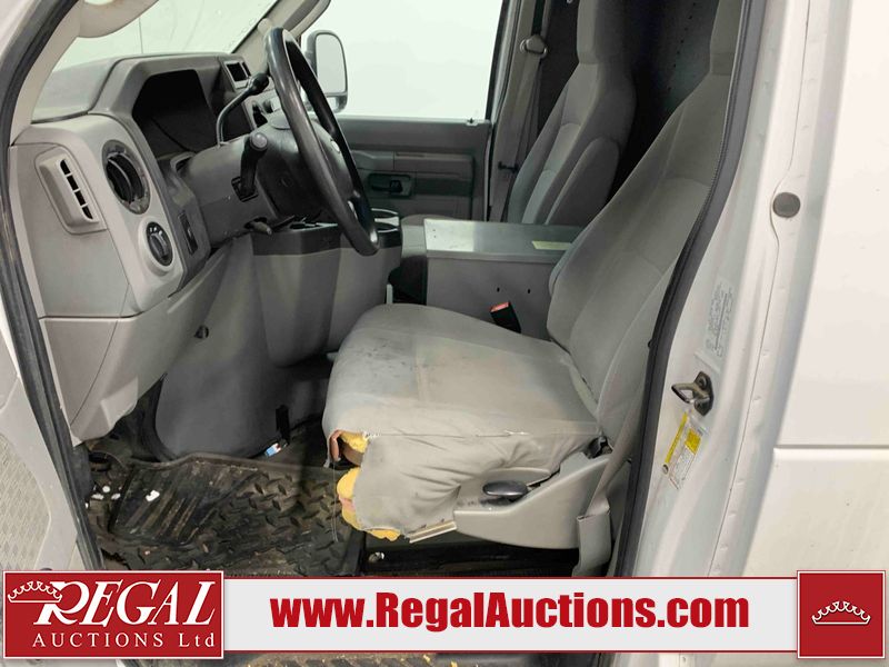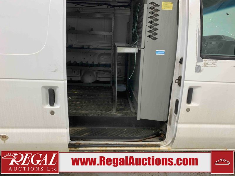 This 2012 FORD E-SERIES VAN CARGO VAN is powered by a 4.6L V8 gasoline engine and an automatic transmission. The van has seats for 2 people. The van has high mileage for its age. The vehicle does not have power windows or power locks. The body looks to be in rough condition overall. There is extensive rust on the roof and right rear fender. There is considerable dent damage on the rear bumper. There are a fair amount of chips on the front bumper. There is a fair amount of dent damage on the left front fender and left front door. There is conspicuous rust on the left front door, left rear fender, rear bumper, right rear door, and right front door. There are scratches on the front bumper, left front fender, left rear fender, rear door, right rear fender, right rear door, and right front door. There is rust on the front bumper, hood, and rear door. There are chips on the hood and left front fender. There is slight paint peeling on the right rear door. There are very minor scratches on the hood. There is very minor dent damage on the rear door. The headlights are broken. The interior looks to be in fair condition overall. The driver's seat is torn. There are cigarette burns on the drivers seat. The passenger seat is stained. The windshield is cracked. The passenger side rear tire is worn. All of the other tires have lots of tread remaining. This van is being sold by an automotive broker. Regal Auctions Ltd. makes no guarantee or warranty, either express or implied, with respect to the data provided in this report. The information has been provided from the consignor and from sources generally believed to be reliable, however the accuracy of this information cannot be guaranteed by Regal Auctions.