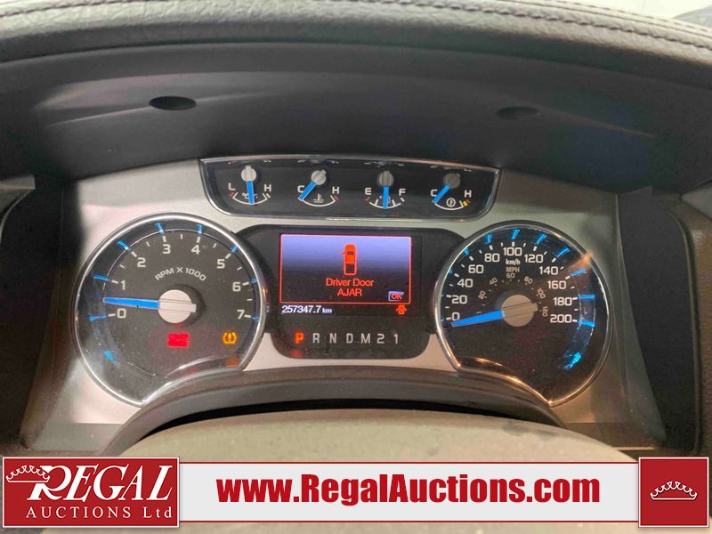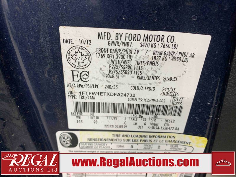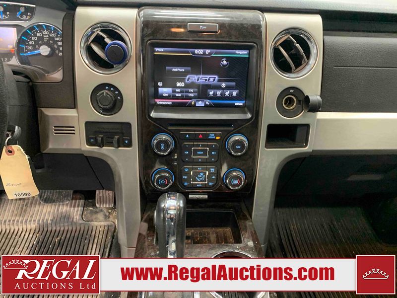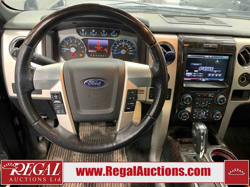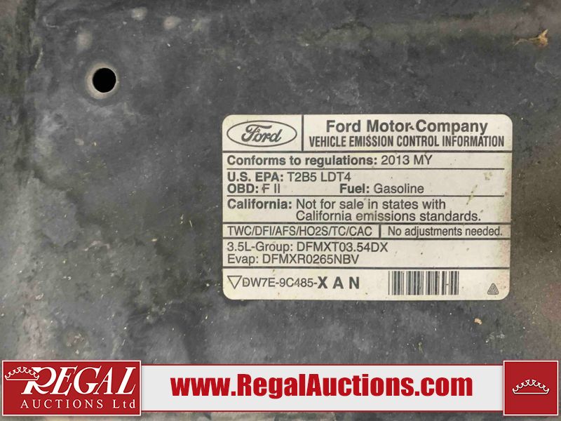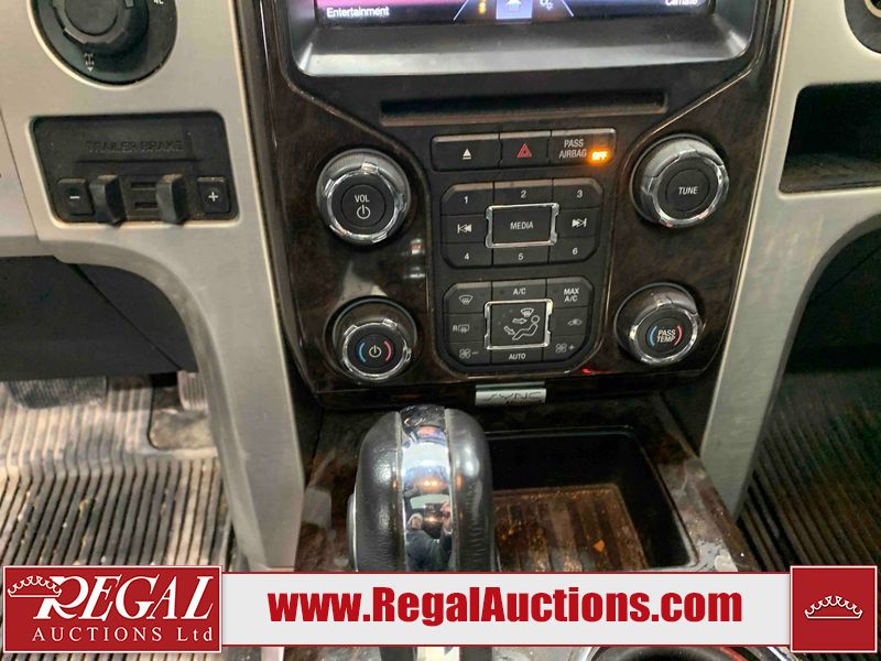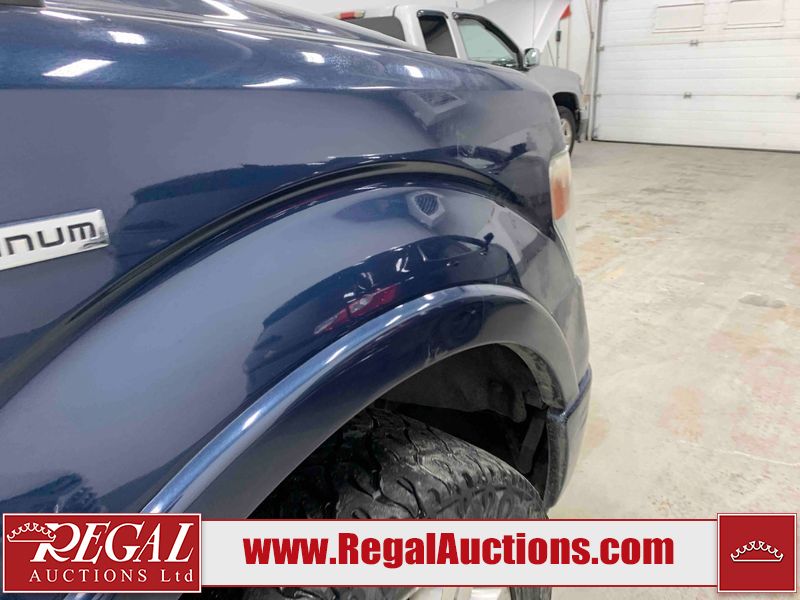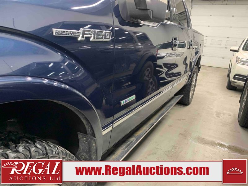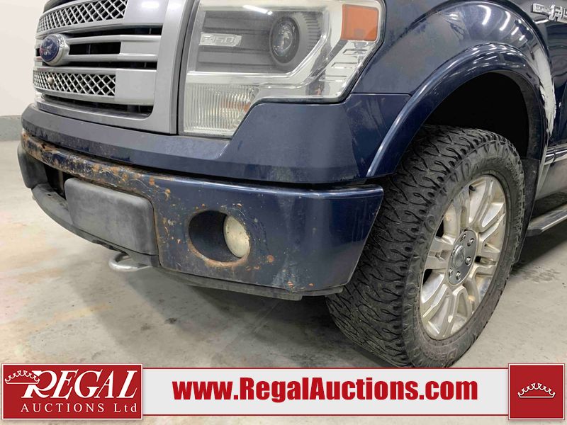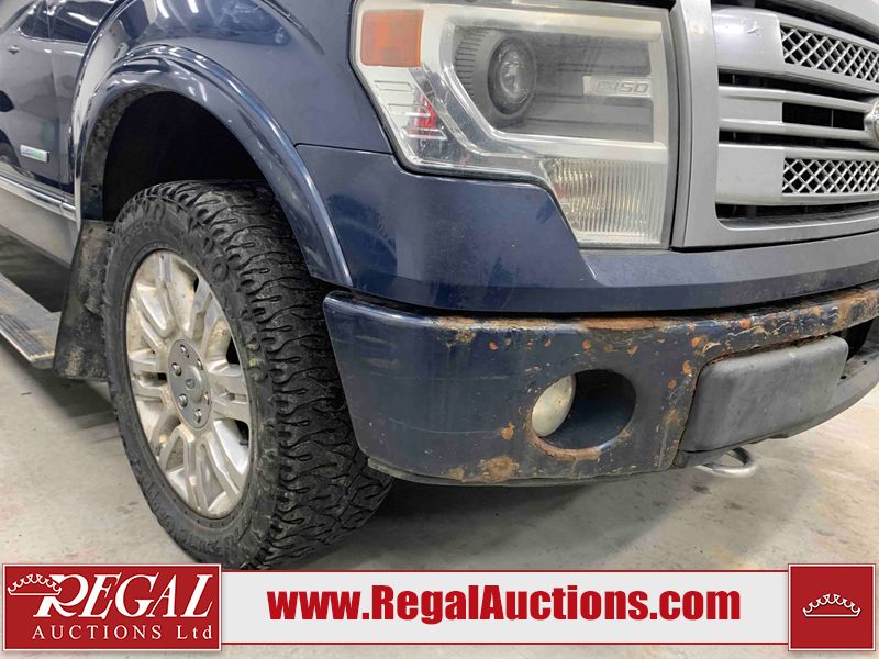 This 2013 FORD F150 PLATINUM SUPERCREW SWB 4WD 3.5L is powered by a 6 cylinder gasoline engine and an automatic transmission. It is equipped with four wheel drive. The truck has seats for 5 people. The truck has high mileage for its age. PLATINUM is a very popular trim level. The vehicle has high value options including leather upholstery, power seats, heated seats, navigation, and a backup camera. The Brake System light is on. The body looks to be in rough condition overall. There is considerable paint peeling on the front bumper. There is some rust on the front bumper. There is conspicuous paint peeling on the roof and rear bumper. There is adhesive on the hood, left front fender, and right front fender. There are chips on the grille, hood, roof, left front fender, left rear door, left rear fender, and tail gate. There is minimal paint peeling on the grille. There are incidental scratches on the hood, left rear door, left rear fender, and right rear fender. There are very minor scratches in many areas around the body. There are very minor chips in many areas around the body. There is very minor dent damage in a few areas around the body. The interior looks to be in fair condition overall. The dashboard is worn. The dashboard and doors are dirty. The carpet is dirty. The windshield is cracked. The driver's side front tire is nearly bald and should be replaced. The other tires are worn.