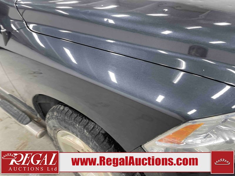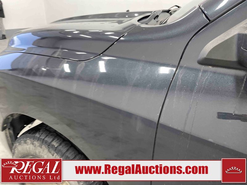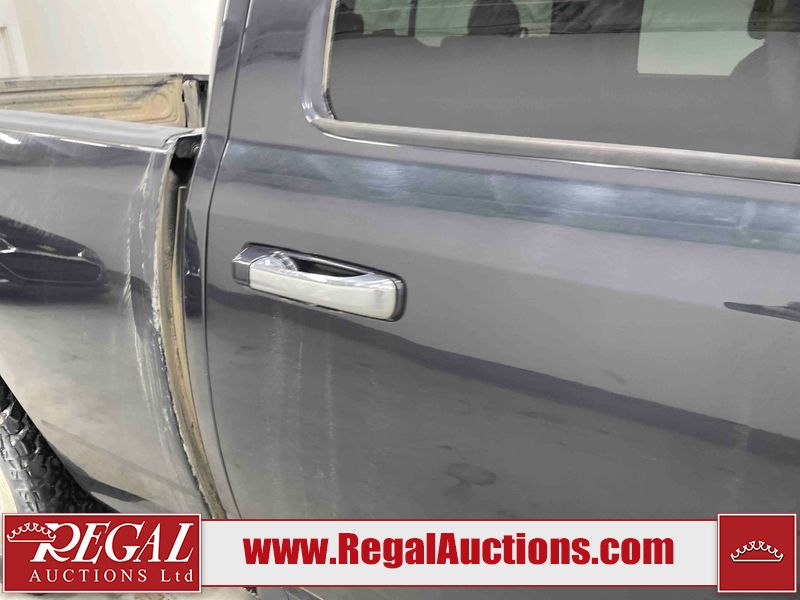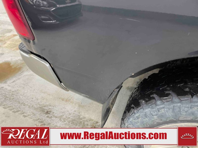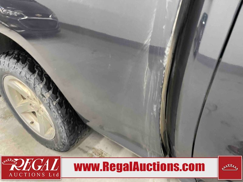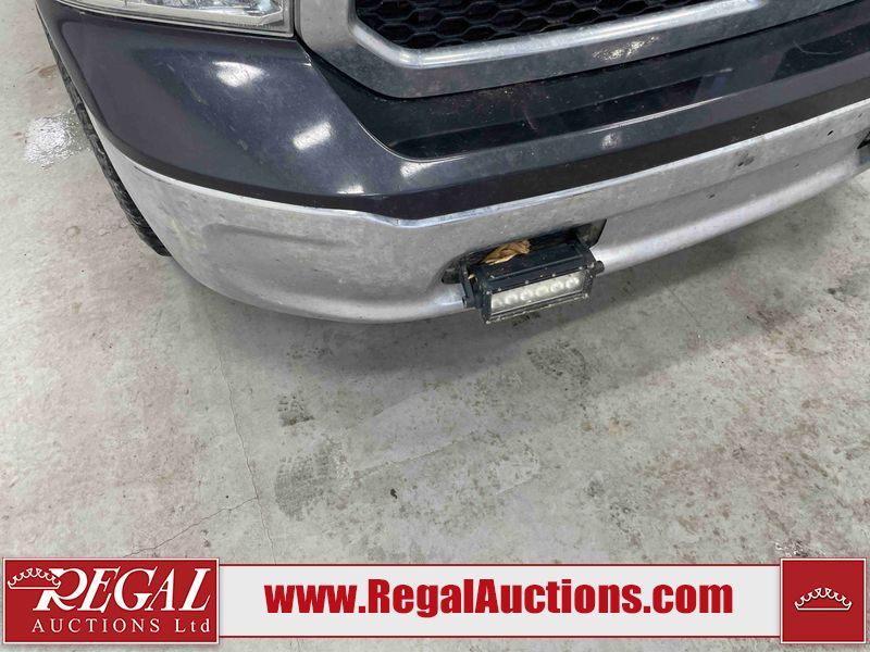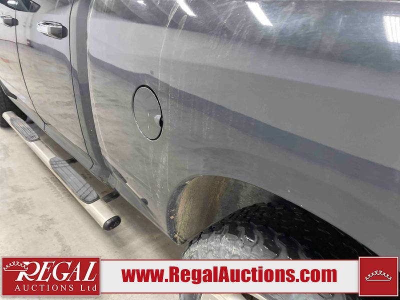 This 2016 RAM 1500 SLT QUAD CAB SWB 4WD 5.7L is powered by a 8 cylinder gasoline engine and an automatic transmission. It is equipped with four wheel drive. The truck has seats for 6 people. The truck has low mileage for its age. The Check Engine, Service 4wd, and Tire Pressure lights are on. The vehicle has some mechanical problems. The engine has a top end tick. The body looks to be in rough condition overall. There is very bad hail on the hood and roof. There is very bad dent damage on the rear bumper. There are minor chips on the front bumper, grille, hood, left rear fender, and rear bumper. There are slight scratches on the front bumper, hood, left front fender, left front door, left rear door, left rear fender, rear bumper, tail gate, right rear fender, right rear door, right front door, and right front fender. There is minimal dent damage on the front bumper, left front door, left rear fender, tail gate, and right rear fender. There is slight paint peeling on the hood. There is rust on the roof, left front fender, and right front fender. There are very minor chips in many areas around the body. There are very minor scratches on the roof. The interior looks to be in fair condition overall. The driver's seat is stained. There are noteworthy cigarette burns on the passenger seat and rear seats. The carpet is dirty. The roof liner is dirty. The windshield is cracked. The tires are all worn. Aftermarket lights have been bolted to the front bumper.