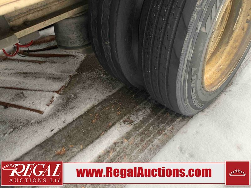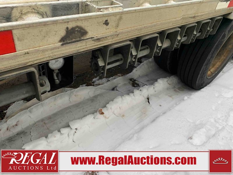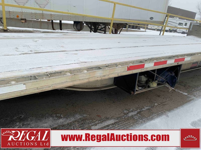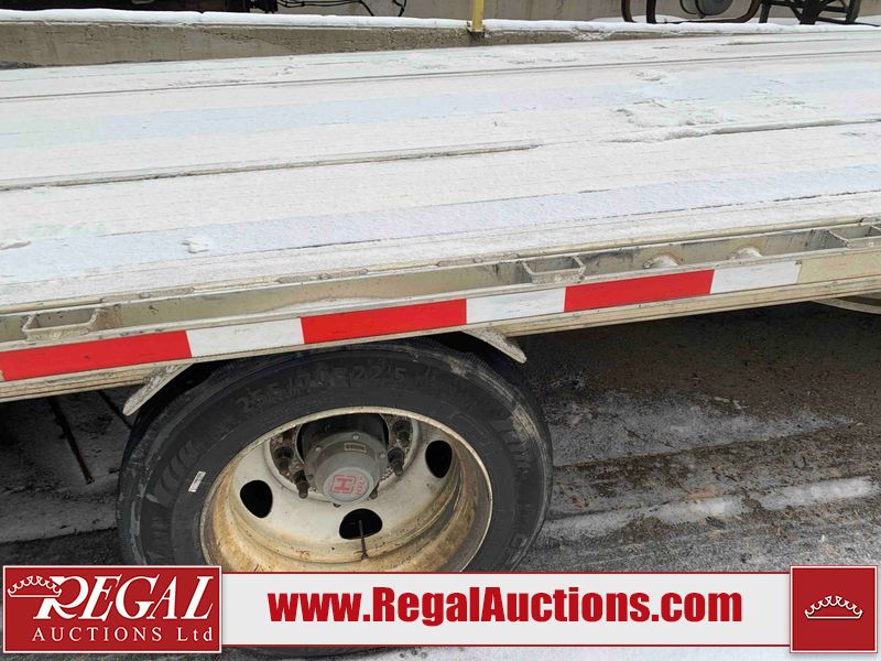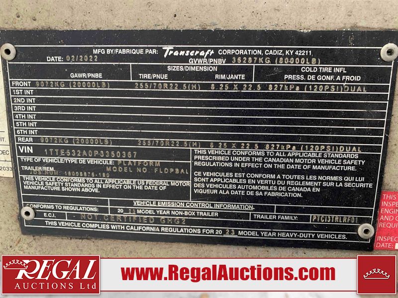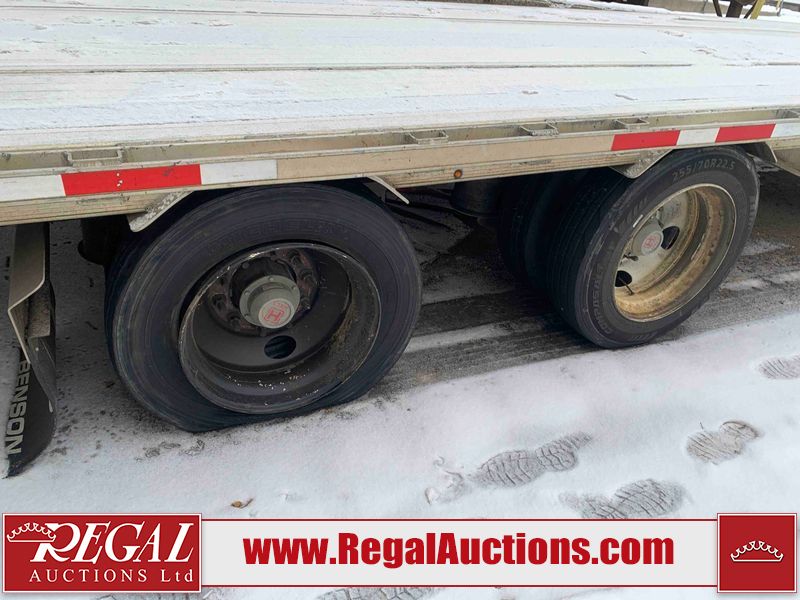 This unit is a 2023 Benson 524 FLDPBAL 53ft step deck semi trailer. It’s GVWR is 80,000 pounds. 11 ft Upper Deck, 42 ft Main Deck. This unit is dirty, no damage can be determined. All panels are showing chips, scratches, and scuffs. The left front step deck panel is Dented. This unit is a spread axle trailer. The tires are mounted to steel rims, all tires will need to be replaced as they are worn. Multiple tires are off the rims. This unit is equipped with air brakes, toolboxes and tie downs.