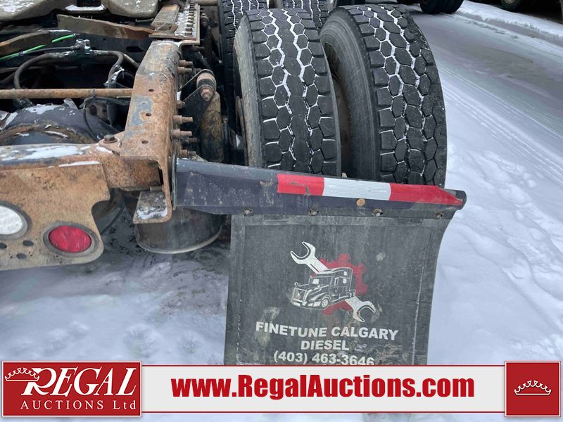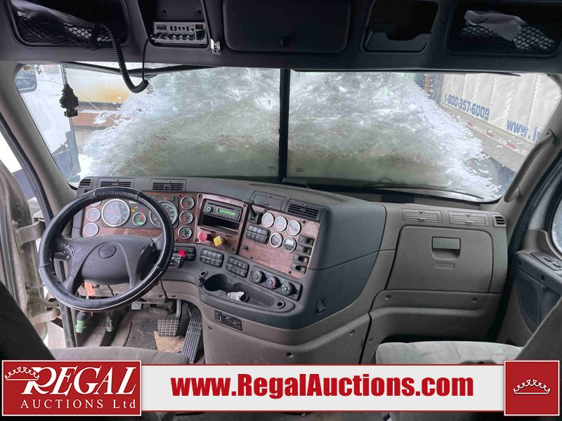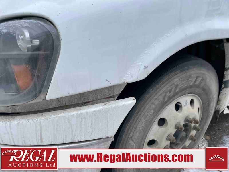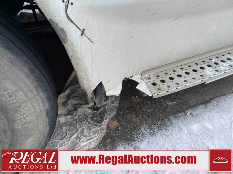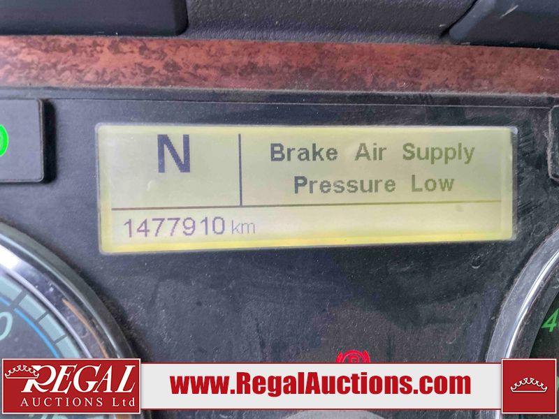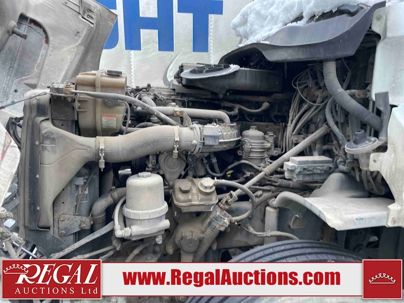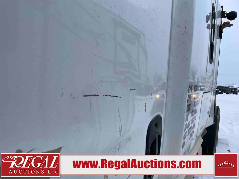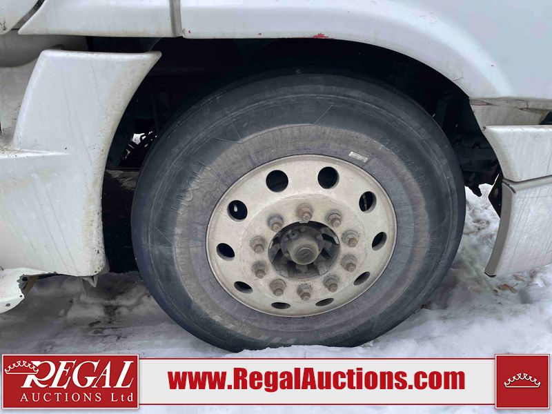This unit is a 2017 Freightliner Cascadia 125 model tandem axle sleeper highway tractor. The odometer reads kilometers 1,477,910, The engine hours are not accessible. This unit has a GVWR of 53,220 lbs. Its CVIP is 07/2024. The interior is dirty. It is equipped with a microwave, refrigerator, CB radio, and rear climate control. This unit is covered in dust and dirt, not all damages can be determined. The front bumper is gouged and misaligned. The engine cover is chipped and has peeling paint. The windshield is cracked. Both front doors and side cabs are showing scratches and scuffs. Both door mirrors are poorly reattached. The cab side air deflector are broken. The rear of the cab is showing signs of usage. This unit starts and runs with a boost. The engine runs rough and stalls. The exhaust has been removed. The unit is not building air. This engine light is on. This unit is powered by a 14.8 L in-line six cylinder turbo diesel engine and an automatic transmission. The tires are mounted to steel rims, the right rear tire will need to be replaced. There is no emissions sticker. The truck has a 13,220 pound front axle and 40,000 pound rear axles. This unit is equipped with rear locking axles, air suspension, air brakes and ABS.