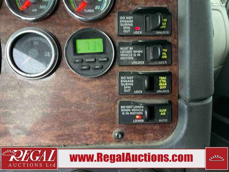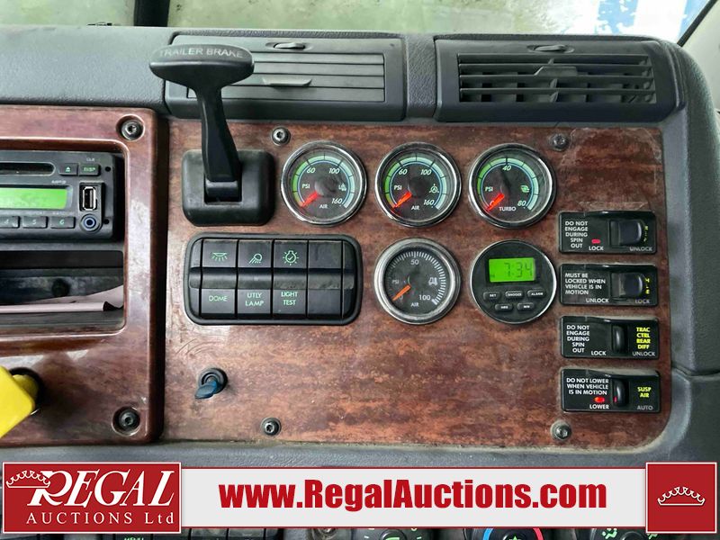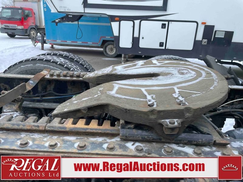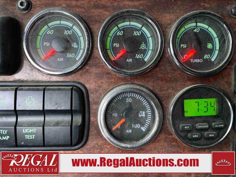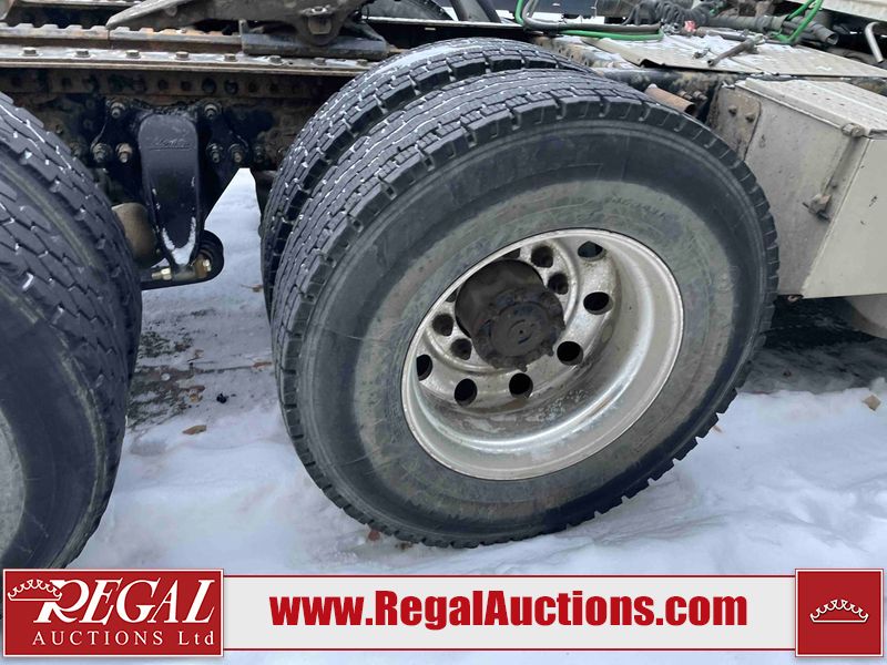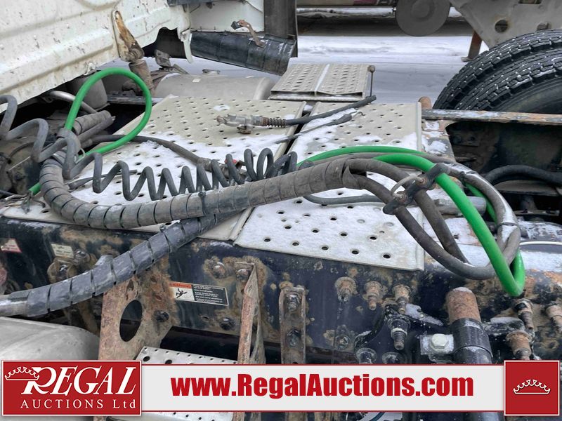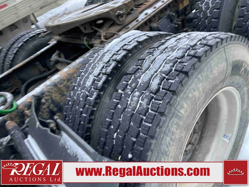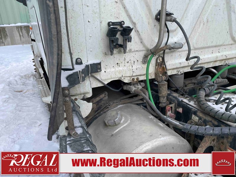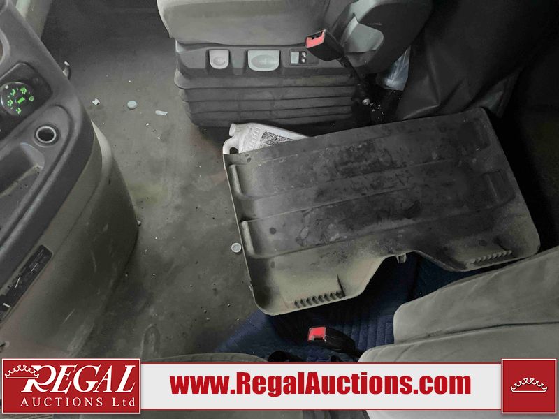 This unit is a 2017 Freightliner Cascadia 125 model tandem axle sleeper highway tractor. The odometer reads kilometers 1,477,910, The engine hours are not accessible. This unit has a GVWR of 53,220 lbs. Its CVIP is 07/2024. The interior is dirty. It is equipped with a microwave, refrigerator, CB radio, and rear climate control. This unit is covered in dust and dirt, not all damages can be determined. The front bumper is gouged and misaligned. The engine cover is chipped and has peeling paint. The windshield is cracked. Both front doors and side cabs are showing scratches and scuffs. Both door mirrors are poorly reattached. The cab side air deflector are broken. The rear of the cab is showing signs of usage. This unit starts and runs with a boost. The engine runs rough and stalls. The exhaust has been removed. The unit is not building air. This engine light is on. This unit is powered by a 14.8 L in-line six cylinder turbo diesel engine and an automatic transmission. The tires are mounted to steel rims, the right rear tire will need to be replaced. There is no emissions sticker. The truck has a 13,220 pound front axle and 40,000 pound rear axles. This unit is equipped with rear locking axles, air suspension, air brakes and ABS.