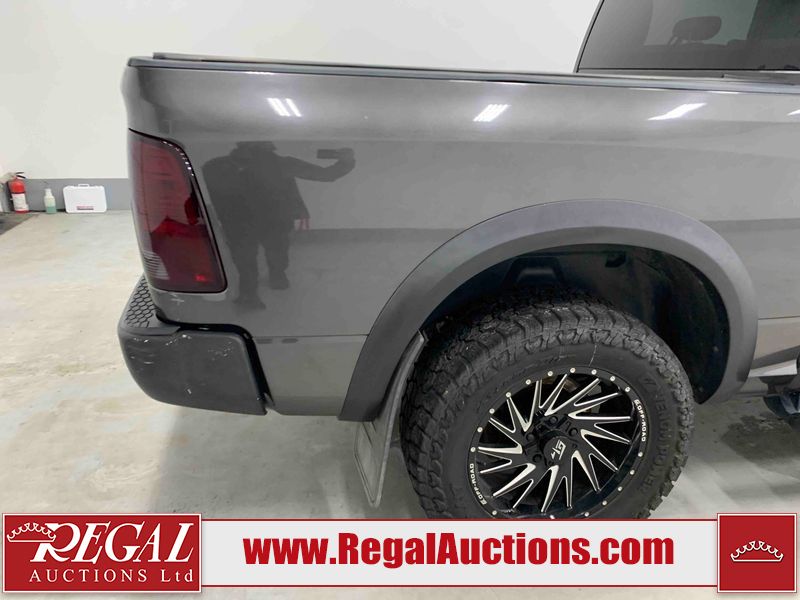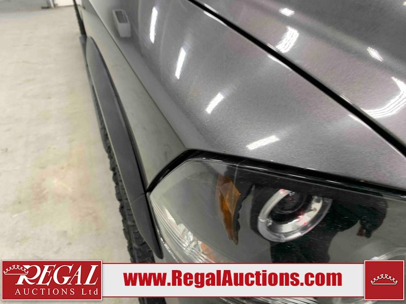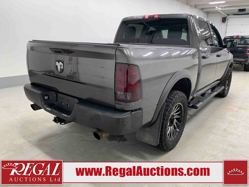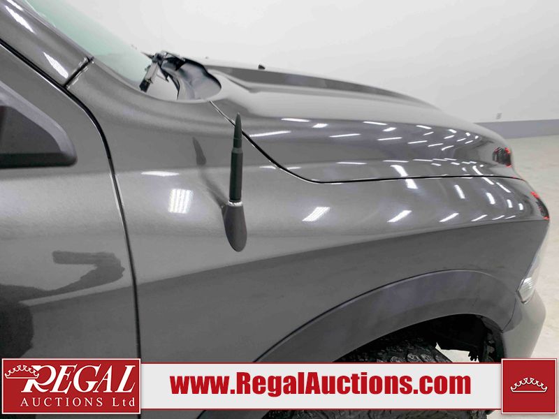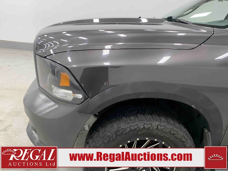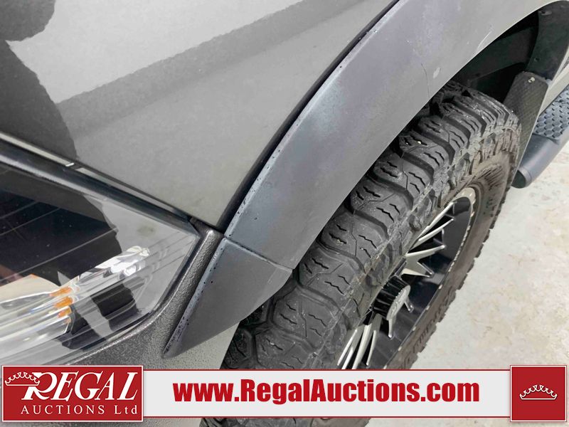 This 2017 RAM 1500 ST CREW CAB SWB 4WD 5.7L is powered by a 8 cylinder gasoline engine and an automatic transmission. It is equipped with four wheel drive. The truck has seats for 6 people. The mileage is average considering the truck's age. The vehicle has high value options including navigation. The Check Engine light is on. The vehicle has some mechanical problems. The engine has a top end tick. The exhaust is noisy. Aftermarket air intake has been installed. The body looks to be in rough condition overall. The front bumper and rear bumper have been repainted poorly. There is extensive paint peeling on the front bumper. The front bumper is cracked. There is pronounced paint peeling on the rear bumper. There are chips on the hood, roof, left front fender, left front door, left rear door, left rear fender, rear bumper, tail gate, right rear fender, right rear door, right front door, and right front fender. There is paint peeling on the hood and roof. There are minimal scratches on the left rear fender and right rear fender. There is dent damage on the rear bumper. There are very minor chips on the grille. There are very minor scratches in many areas around the body. There is very minor dent damage in a few areas around the body. The interior looks to be in fair condition overall. The driver's seat is stained. The carpet is dirty. Aftermarket infotainment system, and stereo system have been installed. There is after markets light switches damage to the dashboard. The windshield is chipped. All of the tires have lots of tread remaining. Aftermarket alloy rims with tires have been mounted, the factory alloys are missing.