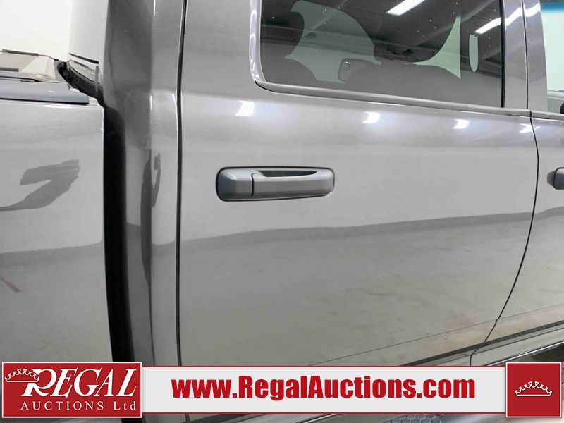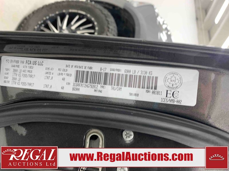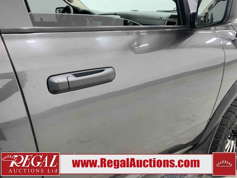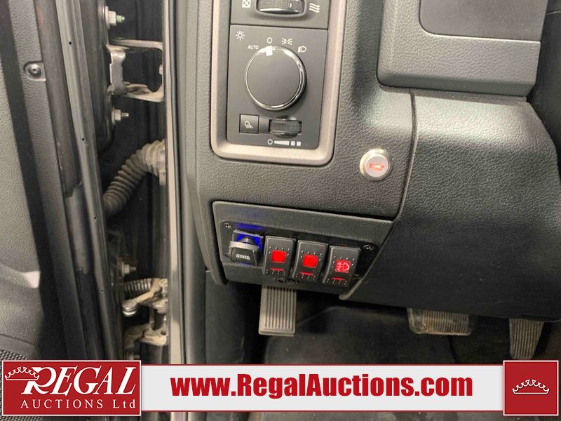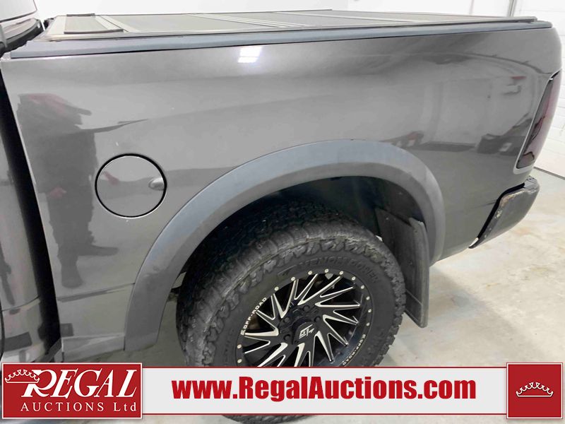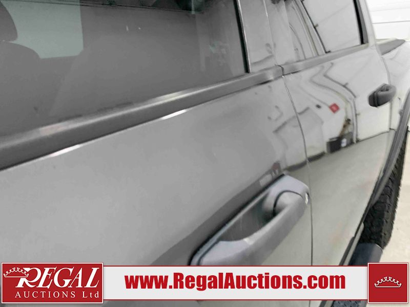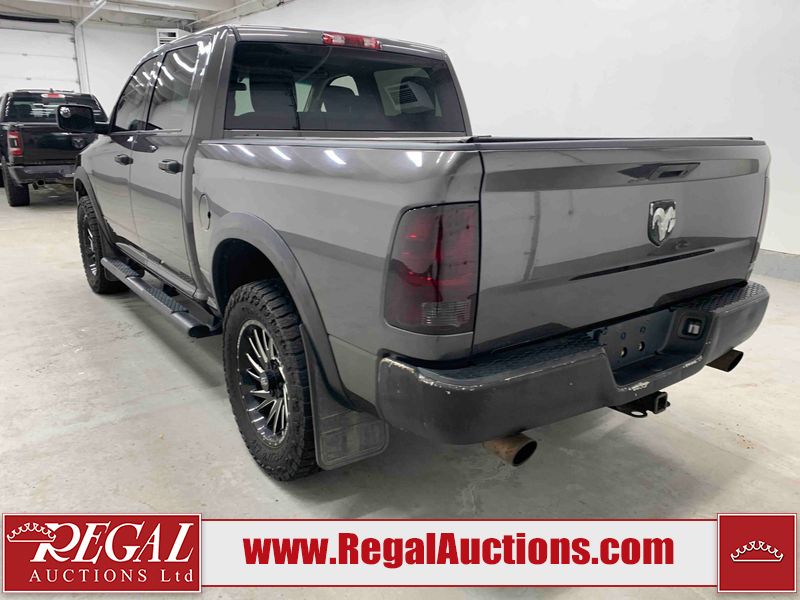 This 2017 RAM 1500 ST CREW CAB SWB 4WD 5.7L is powered by a 8 cylinder gasoline engine and an automatic transmission. It is equipped with four wheel drive. The truck has seats for 6 people. The mileage is average considering the truck's age. The vehicle has high value options including navigation. The Check Engine light is on. The vehicle has some mechanical problems. The engine has a top end tick. The exhaust is noisy. Aftermarket air intake has been installed. The body looks to be in rough condition overall. The front bumper and rear bumper have been repainted poorly. There is extensive paint peeling on the front bumper. The front bumper is cracked. There is pronounced paint peeling on the rear bumper. There are chips on the hood, roof, left front fender, left front door, left rear door, left rear fender, rear bumper, tail gate, right rear fender, right rear door, right front door, and right front fender. There is paint peeling on the hood and roof. There are minimal scratches on the left rear fender and right rear fender. There is dent damage on the rear bumper. There are very minor chips on the grille. There are very minor scratches in many areas around the body. There is very minor dent damage in a few areas around the body. The interior looks to be in fair condition overall. The driver's seat is stained. The carpet is dirty. Aftermarket infotainment system, and stereo system have been installed. There is after markets light switches damage to the dashboard. The windshield is chipped. All of the tires have lots of tread remaining. Aftermarket alloy rims with tires have been mounted, the factory alloys are missing.