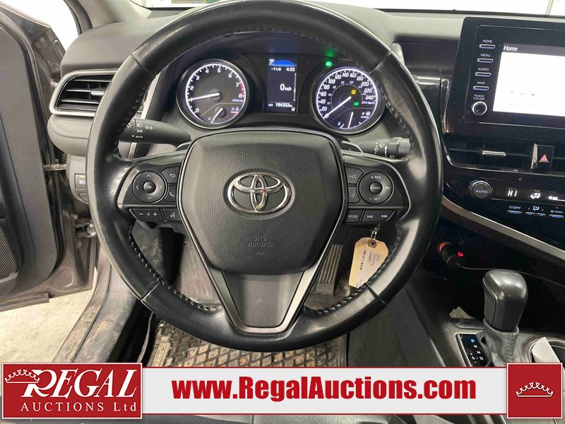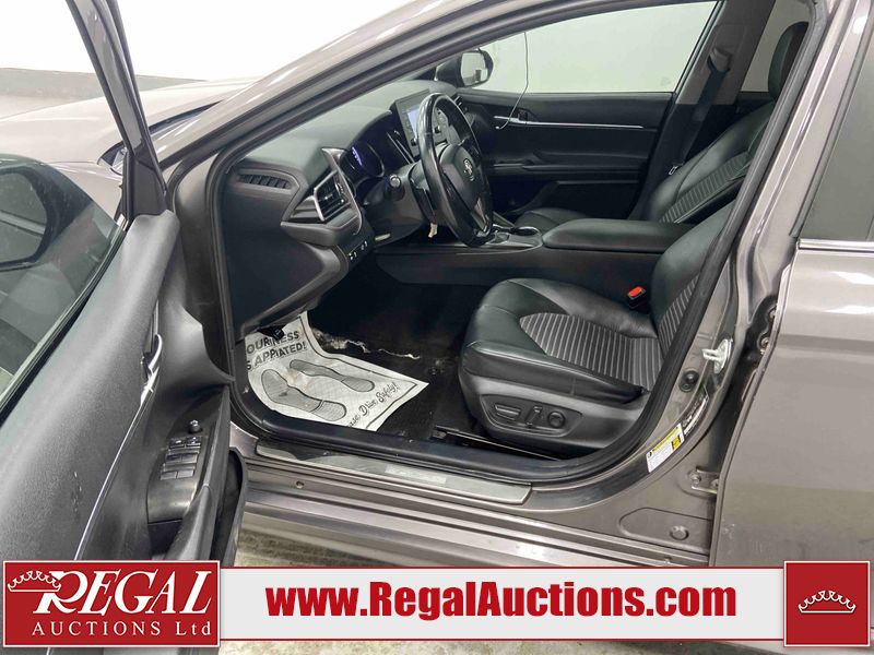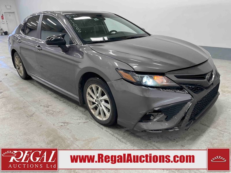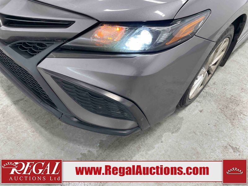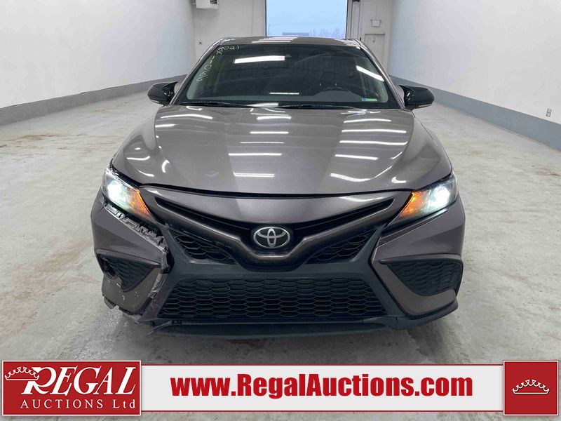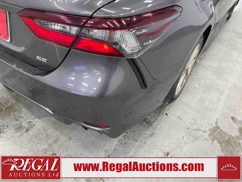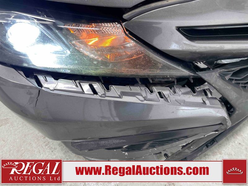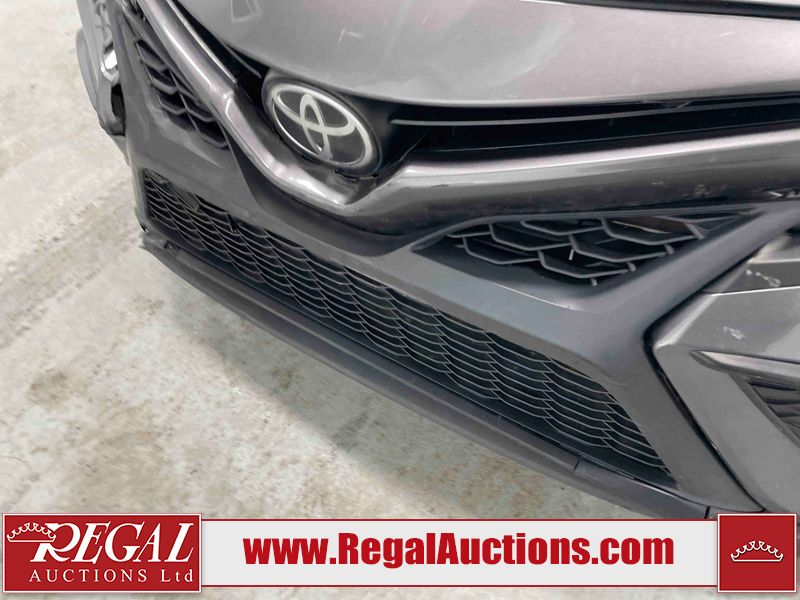 This 2021 TOYOTA CAMRY SE 4D SEDAM FWD 2.5L is powered by a 4 cylinder gasoline engine and an automatic transmission. The car has seats for 5 people. The car has high mileage for its age. The vehicle has high value options including leather upholstery, power seats, heated seats, and a backup camera. The body looks to be in rough condition overall. The front bumper is broken. The rear bumper is cracked. The grille is cracked. There are slight chips on the front bumper, hood, left front fender, left front door, left rear door, left rear fender, right rear fender, and right front door. There are scratches on the front bumper, left rear door, and left rear fender. There are very minor scratches in many areas around the body. There are very minor chips in some areas around the body. There is very minor dent damage on the left rear fender. The interior looks to be in fair condition overall. The doors are dirty. The carpet is dirty. The windshield looks to be in good condition. The front tires are nearly bald and should be replaced. The rear tires are worn.