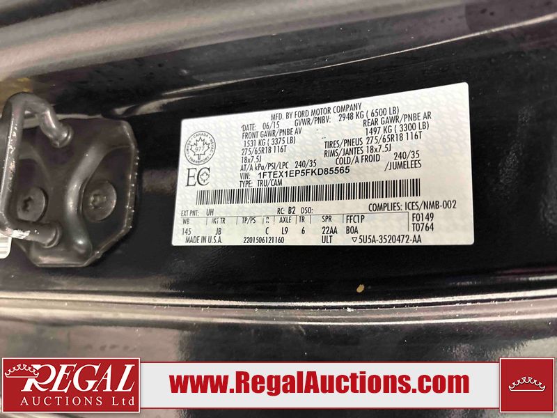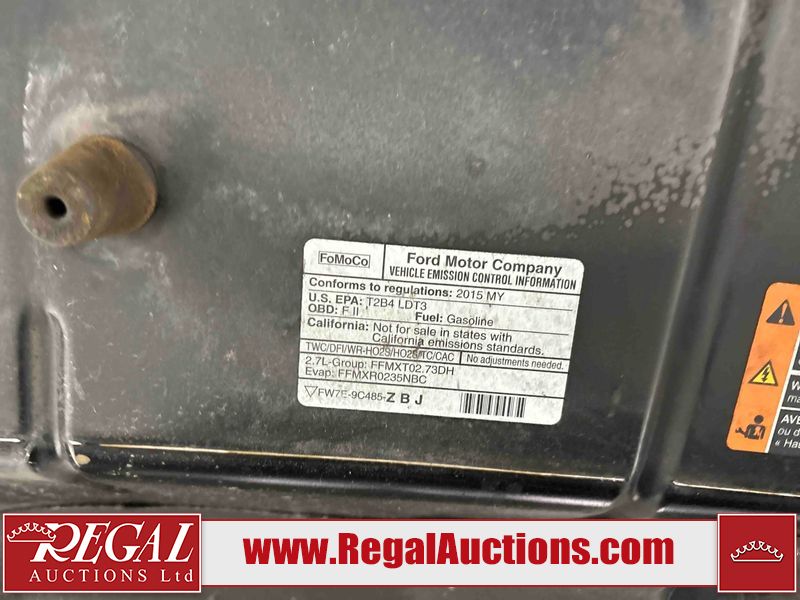 This 2015 FORD F-150 XLT SUPERCAB is powered by a 2.7L V6 gasoline engine and an automatic transmission. It is equipped with four-wheel drive. The truck has seats for 5 people. The truck has low mileage for its age. The vehicle has high-value options including leather upholstery, power seats, and a backup camera. The body looks to be in good condition overall. There are slight chips on the right rear fender. There are very minor chips in many areas around the body. There are very minor scratches in many areas around the body. There is very minor dent damage on the hood. The interior looks to be in good condition overall. The windshield is chipped. All of the tires have lots of tread remaining. This truck is being sold by an automotive broker. The vehicle will be sold with the following declarations: Out of Province - ON (See Footnote 1). Footnotes: 1) The vehicle's last registered jurisdiction is Ontario. The purchaser must have the vehicle undergo and pass an Out of Province inspection before it can be registered in Alberta. Regal Auctions Ltd. makes no guarantee or warranty, either express or implied, with respect to the data provided in this report. The information has been provided from the consignor and from sources generally believed to be reliable, however the accuracy of this information cannot be guaranteed by Regal Auctions.