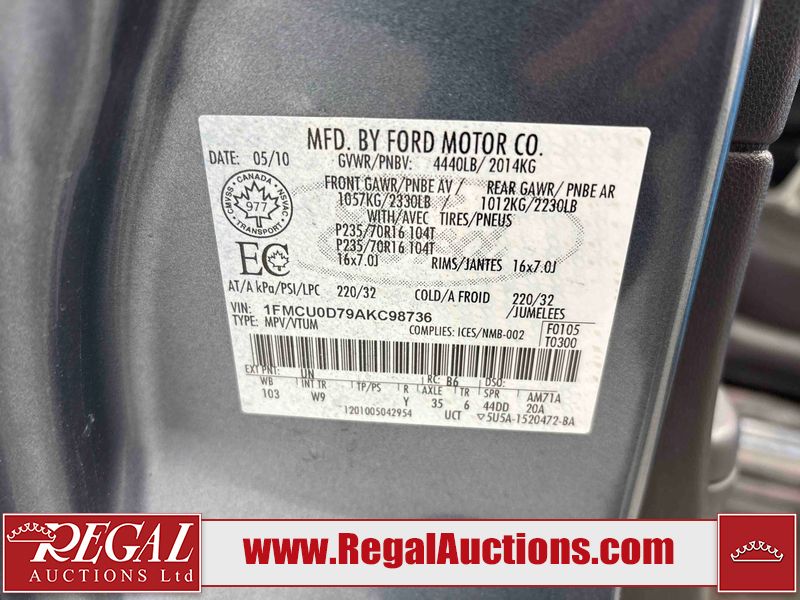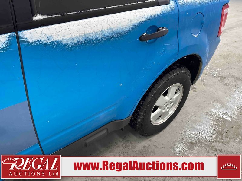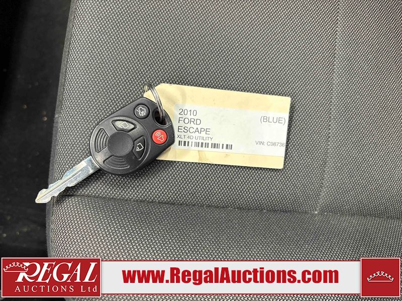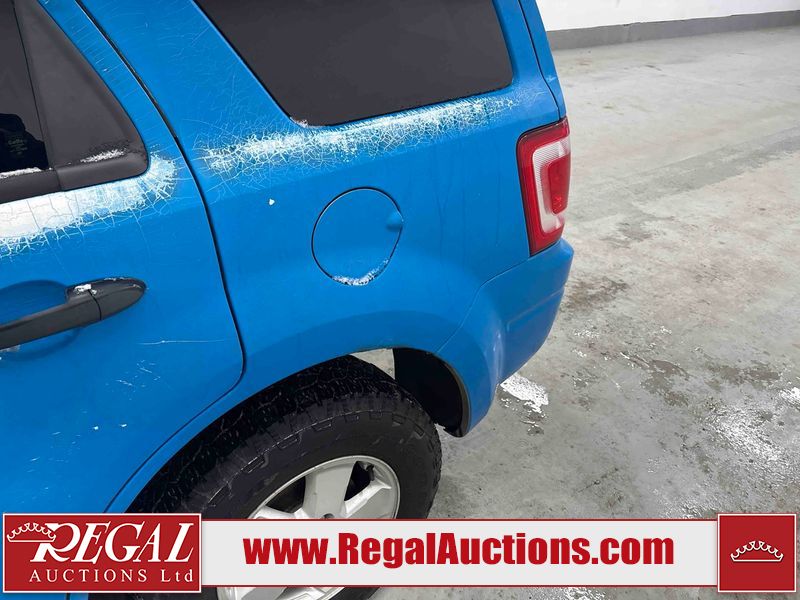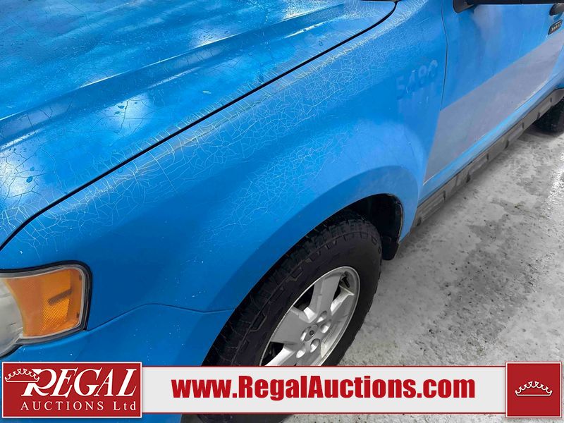 This 2010 FORD ESCAPE XLT 4D UTILITY is powered by a 2.5L 4-cylinder gasoline engine and an automatic transmission. It is a two wheel drive model. The SUV has seats for 5 people. The mileage is average considering the SUV's age. The body looks to be in fair condition overall. There is substantial rust on the right rear fender. The hood has been repainted poorly. There are minor chips on the front bumper. There is rust on the hood, left rear fender, and rear door. There are very minor chips in many areas around the body. There are very minor scratches in many areas around the body. The interior looks to be in good condition overall. The windshield looks to be in good condition. The passenger front tire is worn. The rest of the tires all have lots of tread remaining. This SUV is being sold by an automotive broker. Regal Auctions Ltd. makes no guarantee or warranty, either express or implied, with respect to the data provided in this report. The information has been provided from the consignor and from sources generally believed to be reliable, however the accuracy of this information cannot be guaranteed by Regal Auctions.