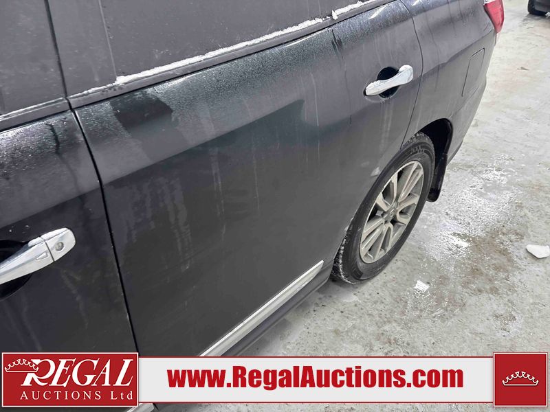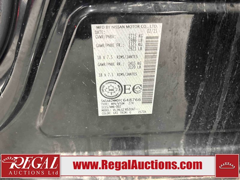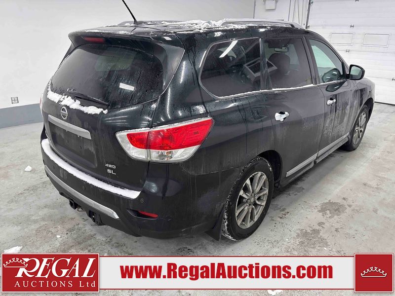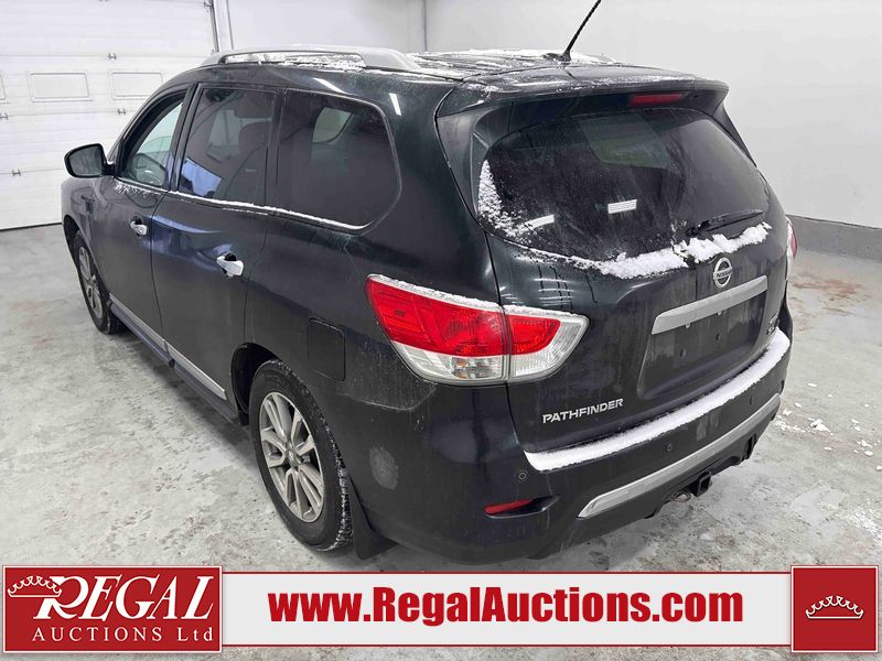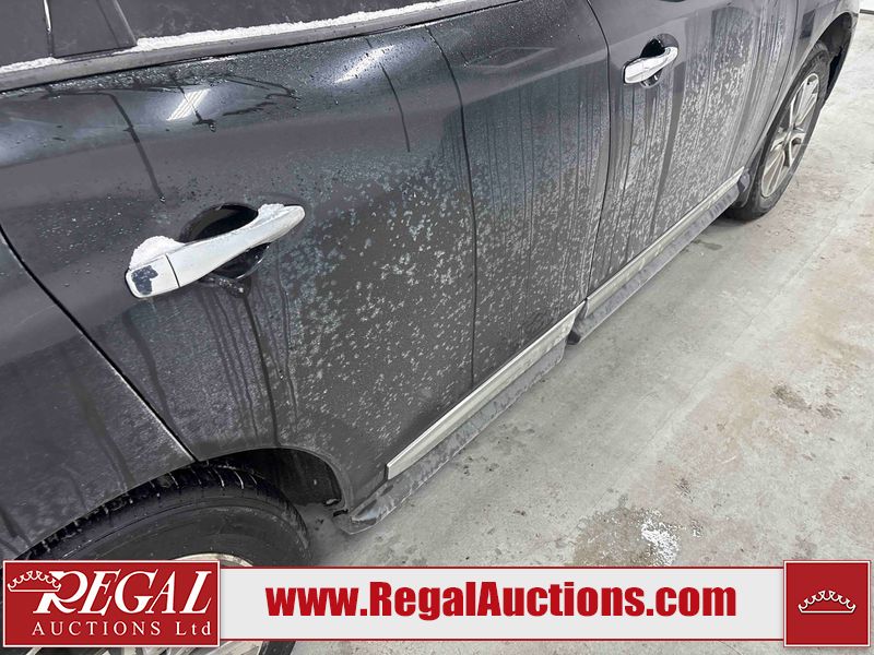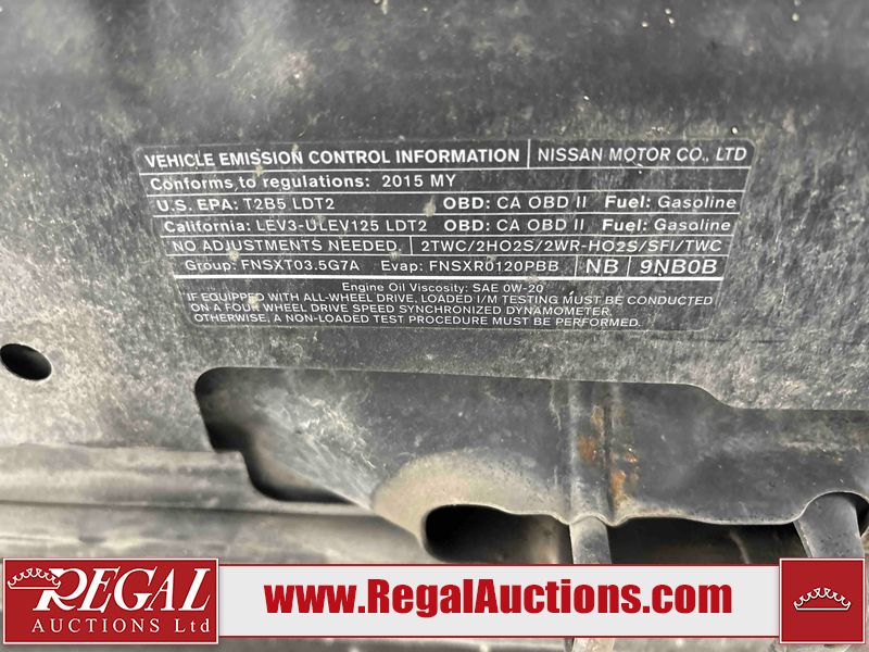 This 2015 NISSAN PATHFINDER 4D UTILITY 4WD is powered by a 3.5L V6 gasoline engine and an automatic transmission. It is equipped with four-wheel drive. The SUV has seats for 7 people. The SUV has high mileage for its age. The vehicle has high-value options including leather upholstery, power seats, heated seats, and a backup camera. The Check Engine light is on. The body looks to be in good condition overall. There is minimal rust on the roof, left front door, and left rear fender. There are very minor chips in many areas around the body. There are very minor scratches in many areas around the body. There is very minor dent damage on the rear door. The interior looks to be in good condition overall. The driver seat is worn. The windshield looks to be in good condition. The tires are all worn. This SUV is being sold by a private individual. The vehicle will be sold with the following declarations: Claims Total $5000 - $9999 (See Footnote 1). Footnotes: 1) The vehicle's total recorded insurance claims history is between $5,000 - $9,999. This is the amount of money that was paid out by an insurance company for repairs to cover claims against the vehicle's insurance policy. This information is provided by CarFax. Regal Auctions Ltd. makes no guarantee or warranty, either express or implied, with respect to the data provided in this report. The information has been provided from the consignor and from sources generally believed to be reliable, however the accuracy of this information cannot be guaranteed by Regal Auctions.