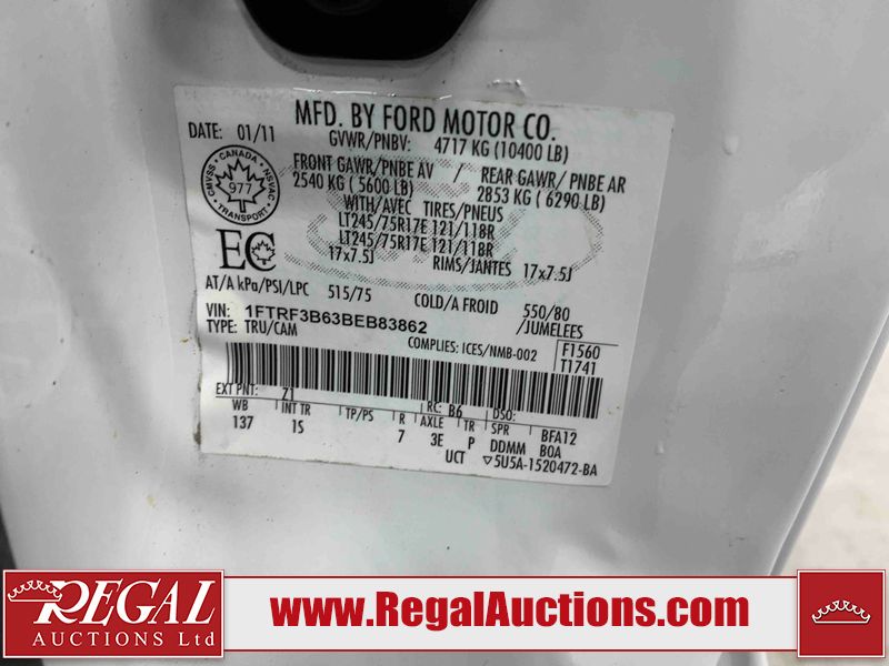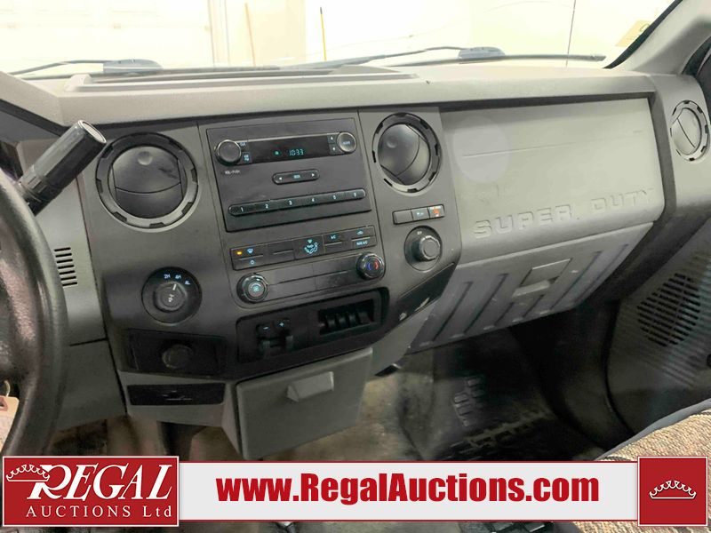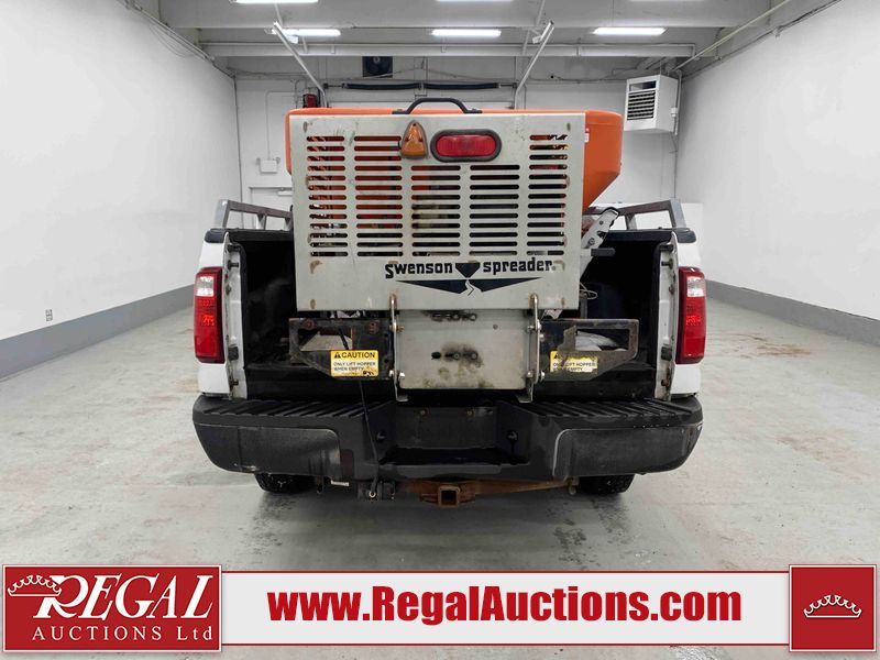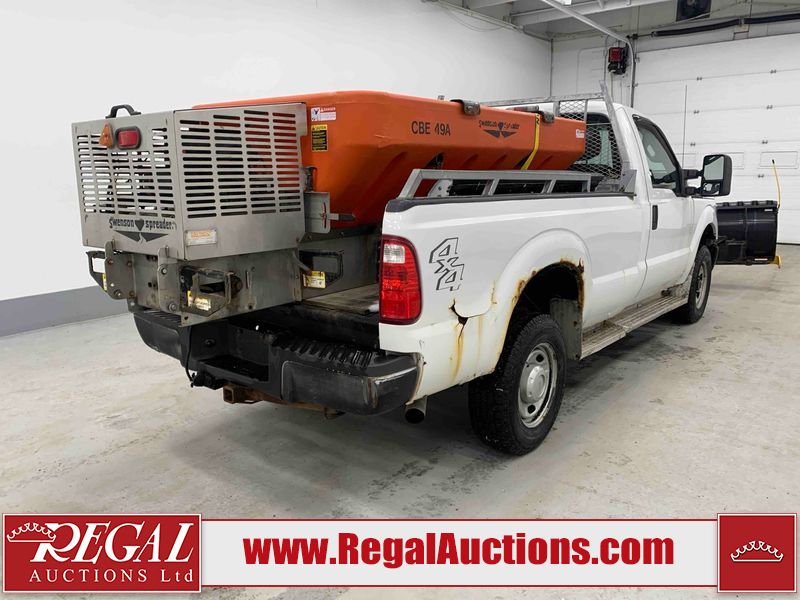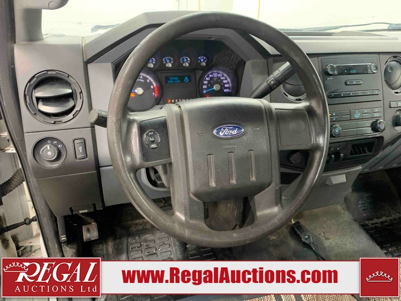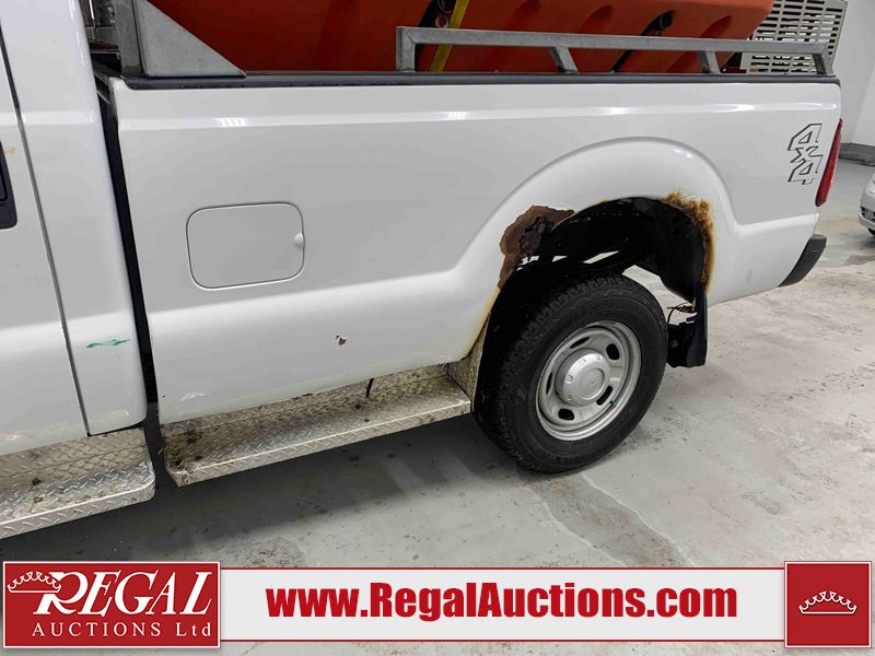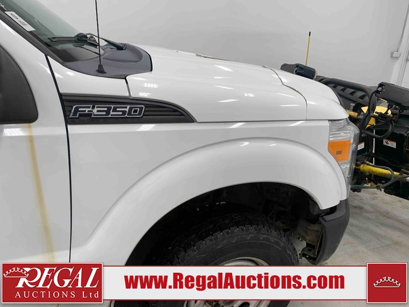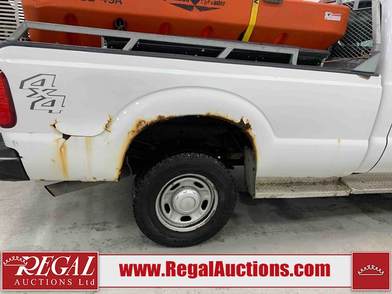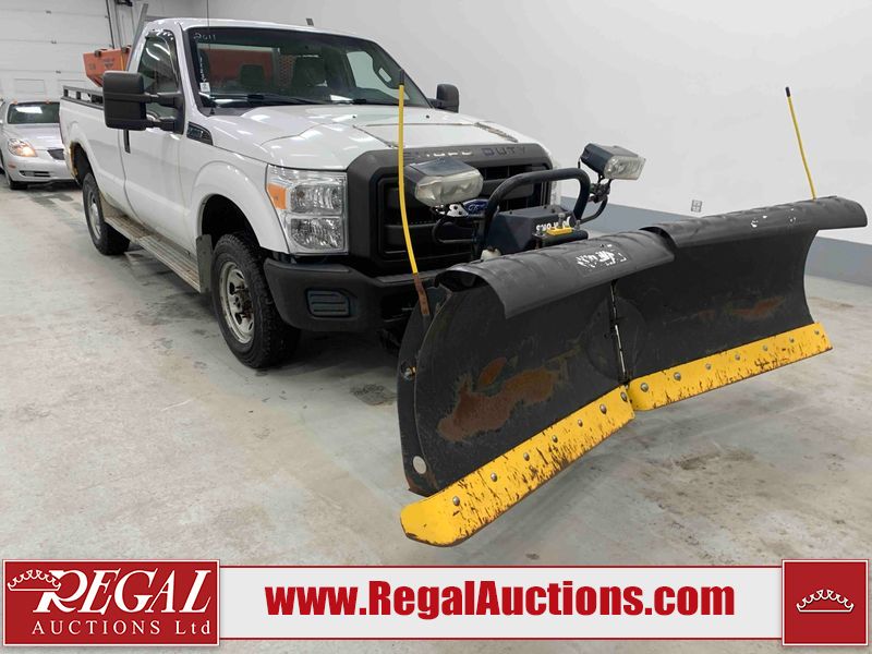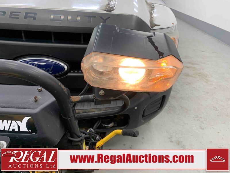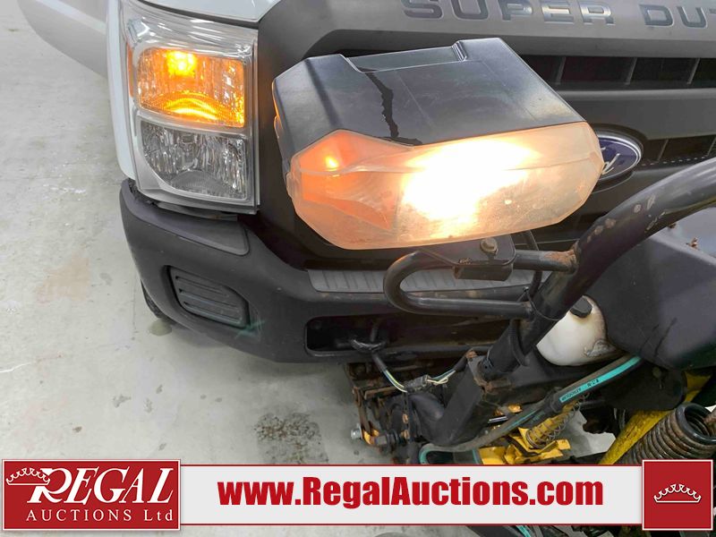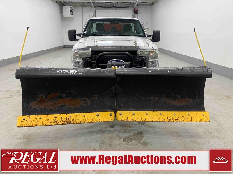 This 2011 FORD F-350 SD XL REG CAB PLOW TRUCK SRW 4WD 6.2L is powered by a 383HP 6.2L 8CYL GAS 8 cylinder gasoline engine and an automatic transmission. It is equipped with four wheel drive. The truck has seats for 3 people. The truck has low mileage for its age. The vehicle does not have power windows or power locks. The body looks to be in rough condition overall. The hood, left rear fender, rear bumper, and right rear fender have been repainted poorly. There is severe rust on the left rear fender. The right rear fender is cracked. There is a fair amount of paint peeling on the front bumper and right rear fender. There is minor dent damage on the front bumper and rear bumper. There are chips on the front bumper, grille, roof, left front door, left rear fender, rear bumper, right rear fender, and right front door. There are scratches on the front bumper and rear bumper. There is minor rust on the front bumper. There is incidental paint peeling on the right front door. There are very minor chips in a few areas around the body. There are very minor scratches in many areas around the body. There is very minor dent damage in a few areas around the body. The interior looks to be in fair condition overall. The dashboard is worn. The doors are dirty. The windshield is cracked. The tires are all worn. 4WD is operational with manual locking hubs. This truck is being sold by the fleet department of a corporation or government body. The vehicle will be sold with the following declarations: Fleet Vehicle (See Footnote 1). Footnotes: 1) This vehicle is a commercially owned work vehicle. Regal Auctions Ltd. makes no guarantee or warranty, either express or implied, with respect to the data provided in this report. The information has been provided from the consignor and from sources generally believed to be reliable, however the accuracy of this information cannot be guaranteed by Regal Auctions.