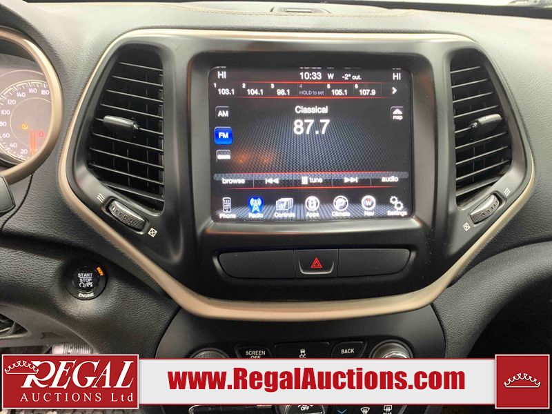 This 2016 JEEP CHEROKEE 4D UTILITY is powered by a 2.4L 4-cylinder gasoline engine and an automatic transmission. It is equipped with four-wheel drive. The SUV has seats for 5 people. The SUV has low mileage for its age. The vehicle has high-value options including leather upholstery, power seats, heated seats, navigation, a backup camera, and a power liftgate. The Tire Pressure, Parking Brake, Coolant Temperature Warning, and Battery lights are on. The body looks to be in fair condition overall. There is considerable hail on the roof. There is a fair amount of hail on the left rear fender and right rear fender. There is slight dent damage on the hood and left rear door. There are very minor chips in many areas around the body. There are very minor scratches in many areas around the body. The interior looks to be in good condition overall. There are moderate cigarette burns on the driver's seat. The windshield is chipped. All of the tires have lots of tread remaining. This SUV is being sold by an automotive broker. The vehicle will be sold with the following declarations: Out of Province (See Footnote 1), Out of Province - AB OVERRIDE (See Footnote 2), Claims Total $3000 - $4999 (See Footnote 3), and Out of Province - MB (See Footnote 4). Footnotes: 1) The vehicle's last jurisdiction of registration is not Alberta. The purchaser must have the vehicle undergo and pass an Out of Province inspection before it can be registered in Alberta. 2) Out of province inspection for registering the vehicle in Alberta has been completed. 3) The vehicle's total recorded insurance claims history is between $3,000 - $4,999. This is the amount of money that was paid out by an insurance company for repairs to cover claims against the vehicle's insurance policy. This information is provided by CarFax. 4) The vehicle's last registered jurisdiction is Manitoba. The purchaser must have the vehicle undergo and pass an Out of Province inspection before it can be registered in Alberta. Regal Auctions Ltd. makes no guarantee or warranty, either express or implied, with respect to the data provided in this report. The information has been provided from the consignor and from sources generally believed to be reliable, however the accuracy of this information cannot be guaranteed by Regal Auctions.